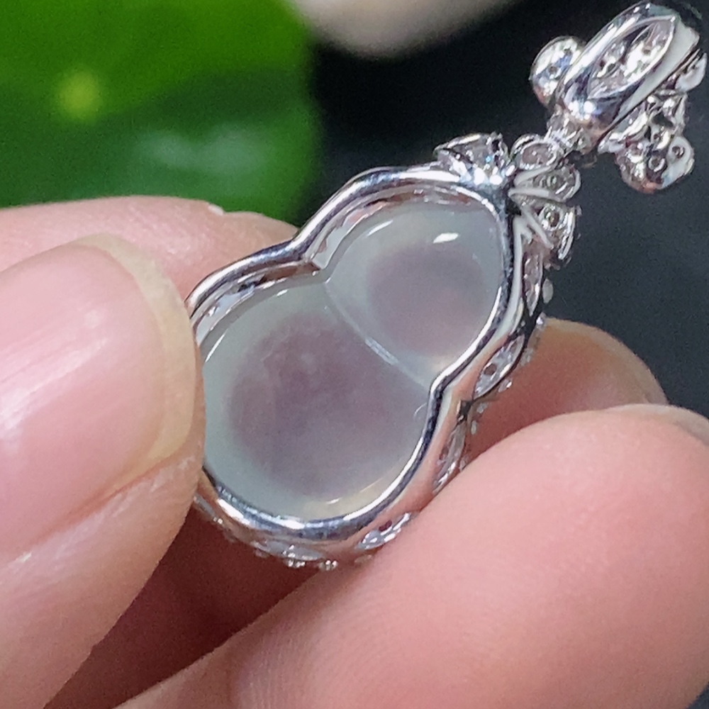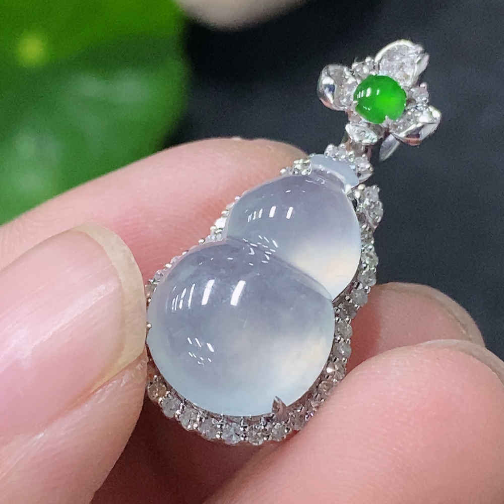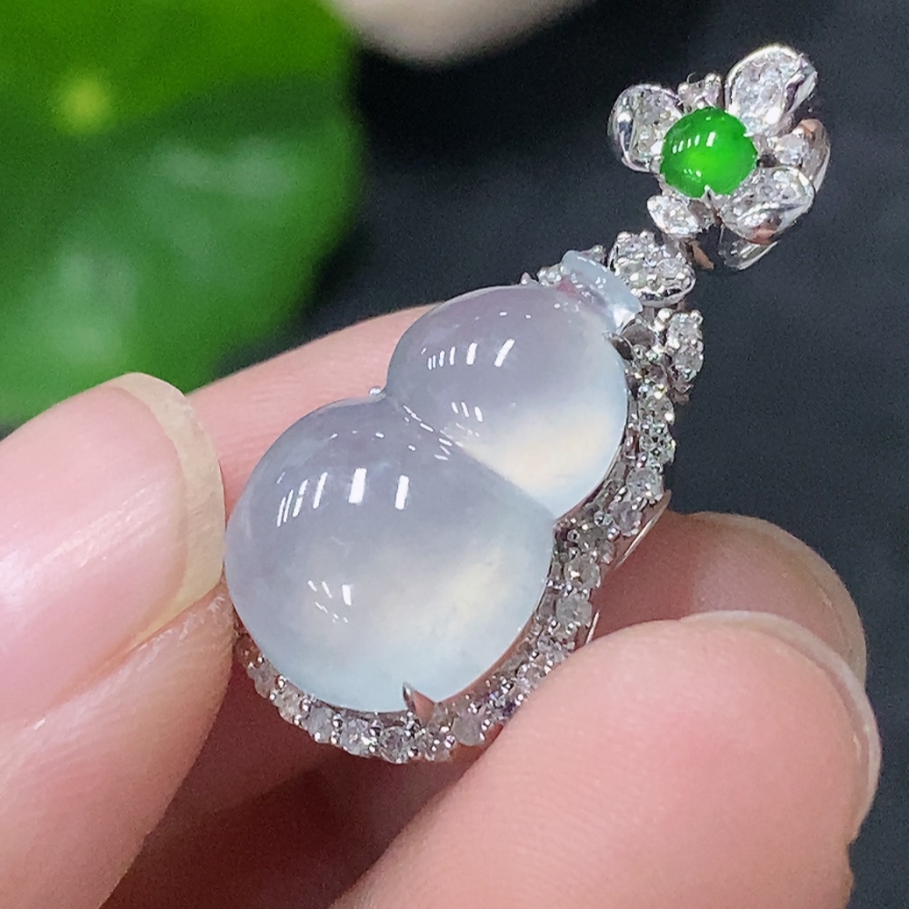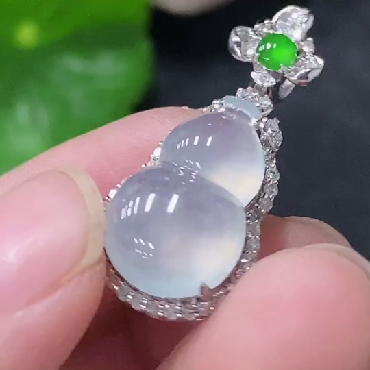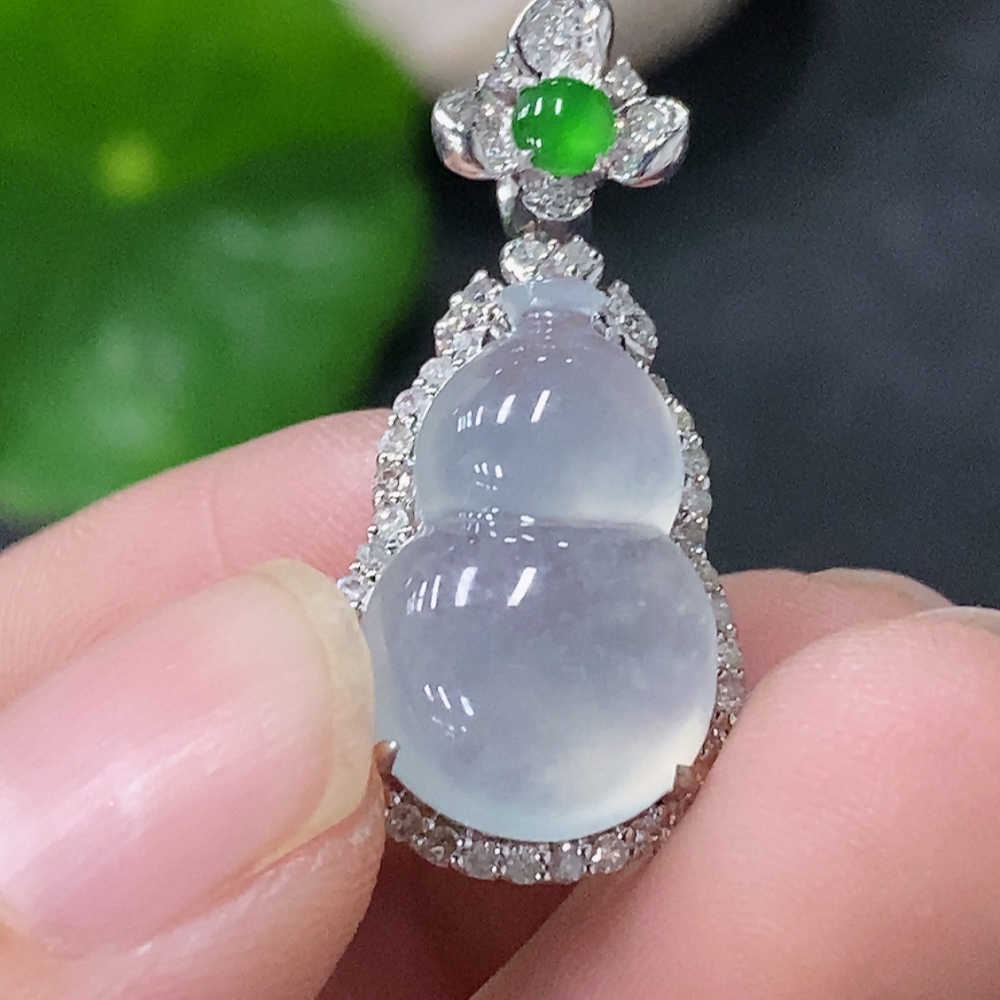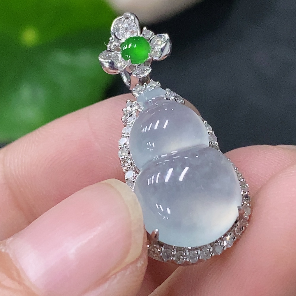 Jadeite Inlaid Gourd Pendant 18k with Diamond Accent Total Weight Approx. 3.75g