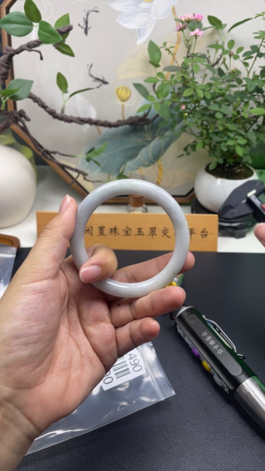 Jadeite Round Bangle, Total Weight Approx. 50.3g, Size 59.2