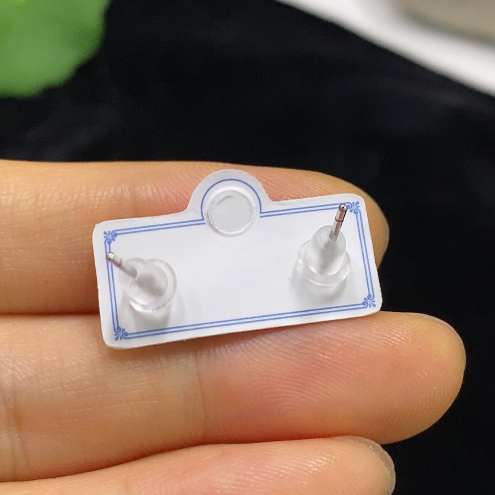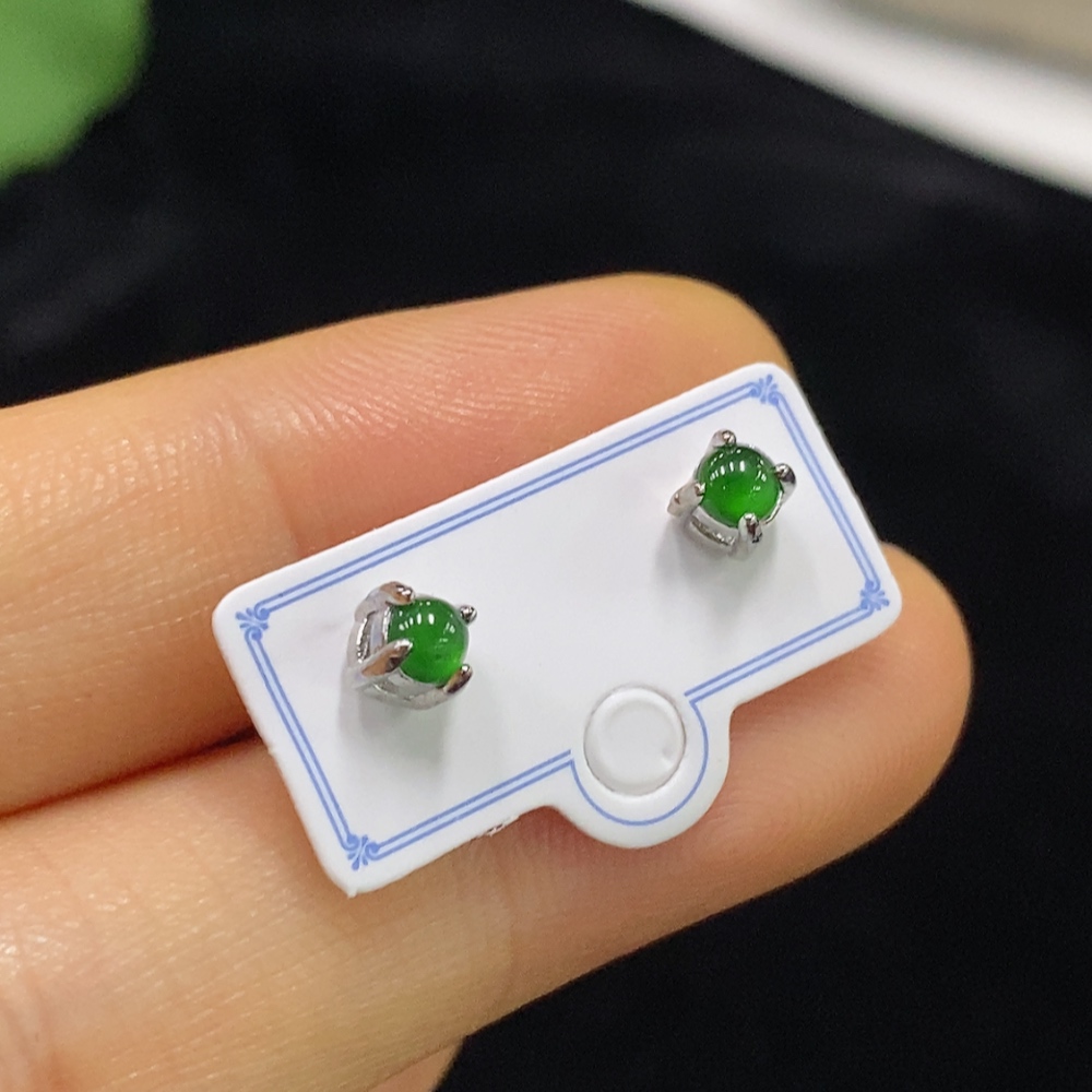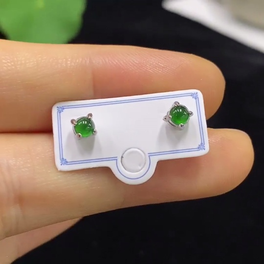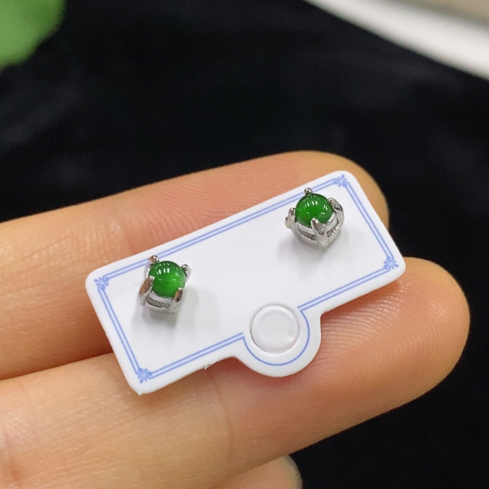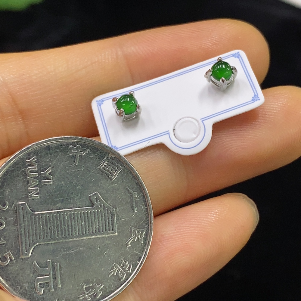 Jadeite Cabochon Stud Earrings Pair, Non-Gold Setting, Total Weight Approx. 0.64g