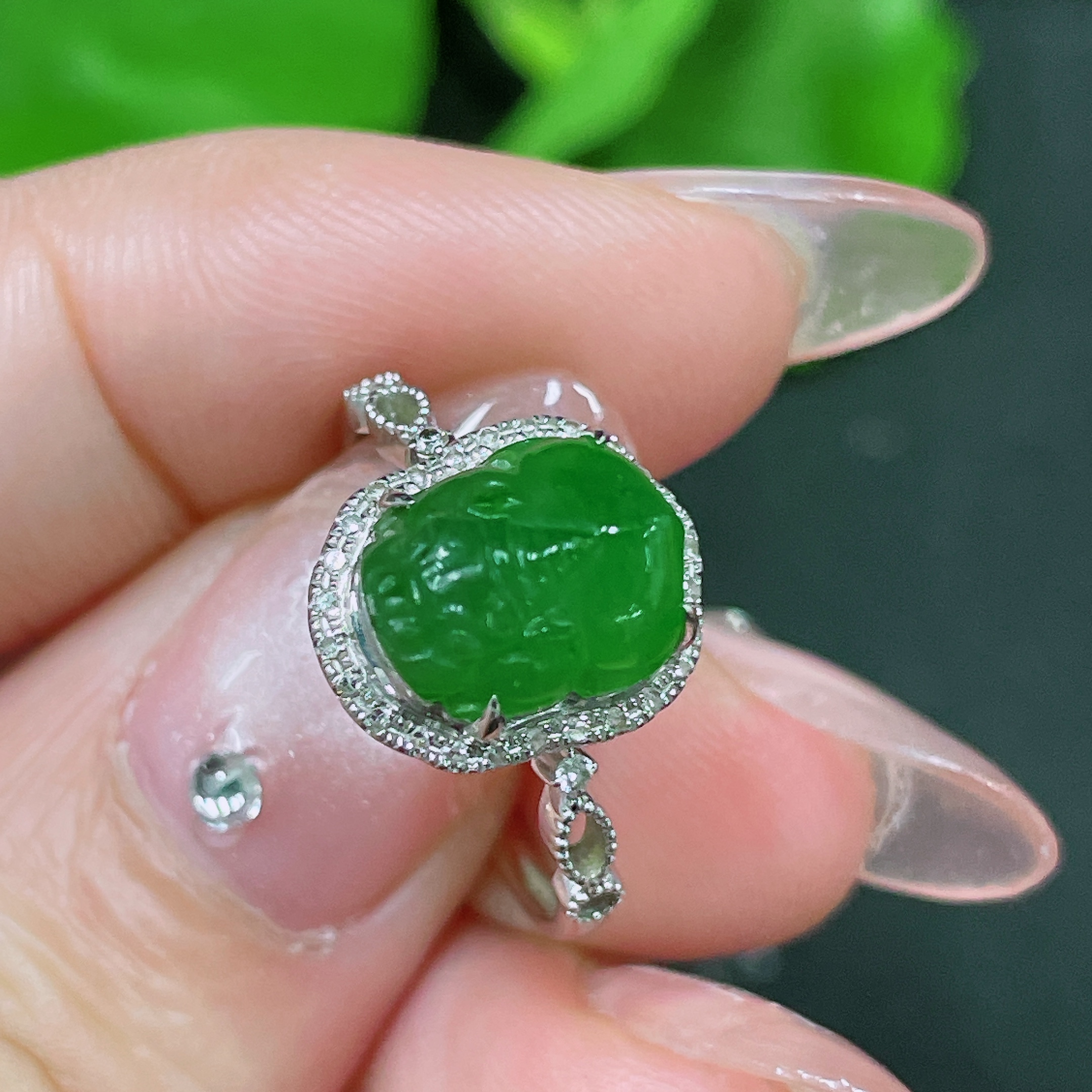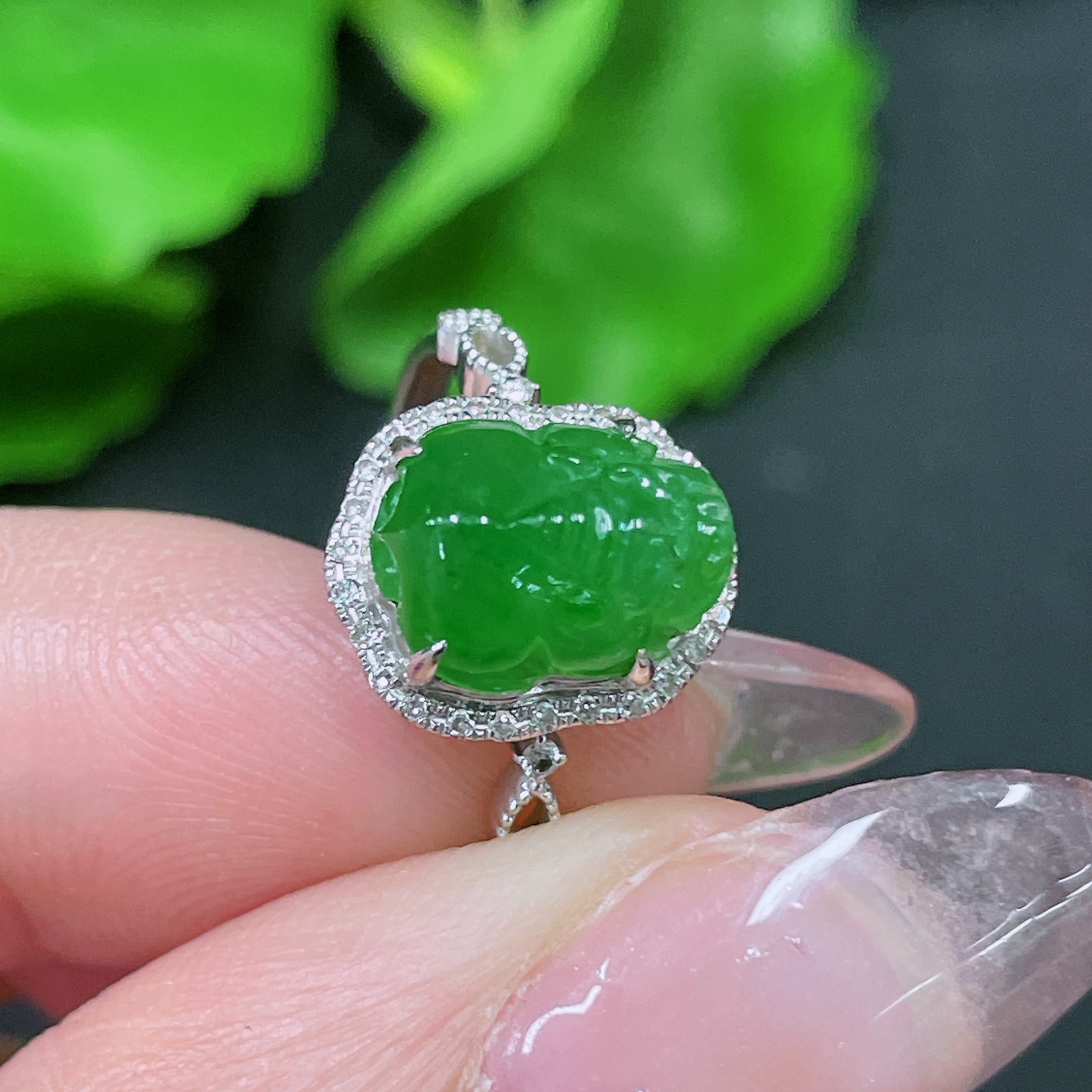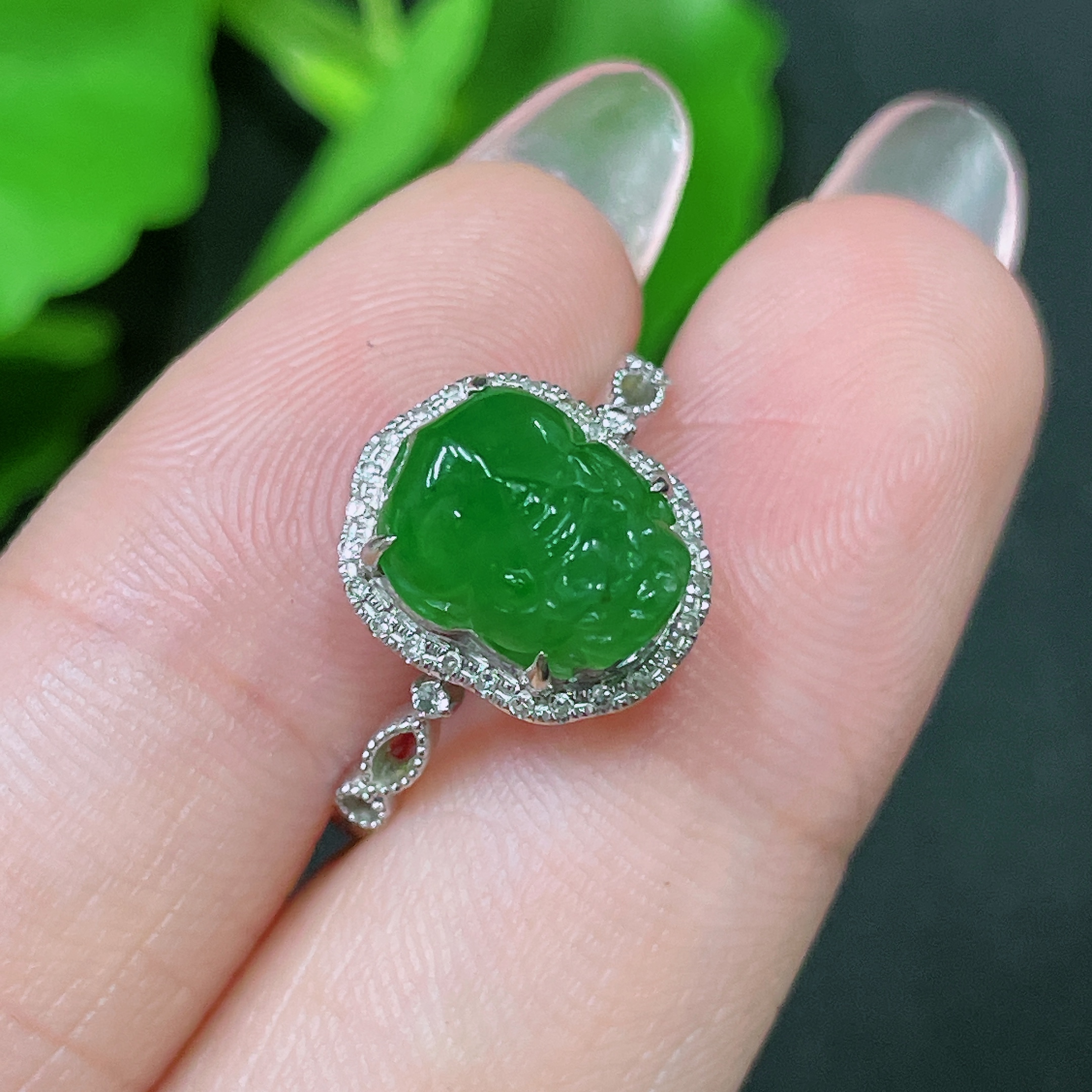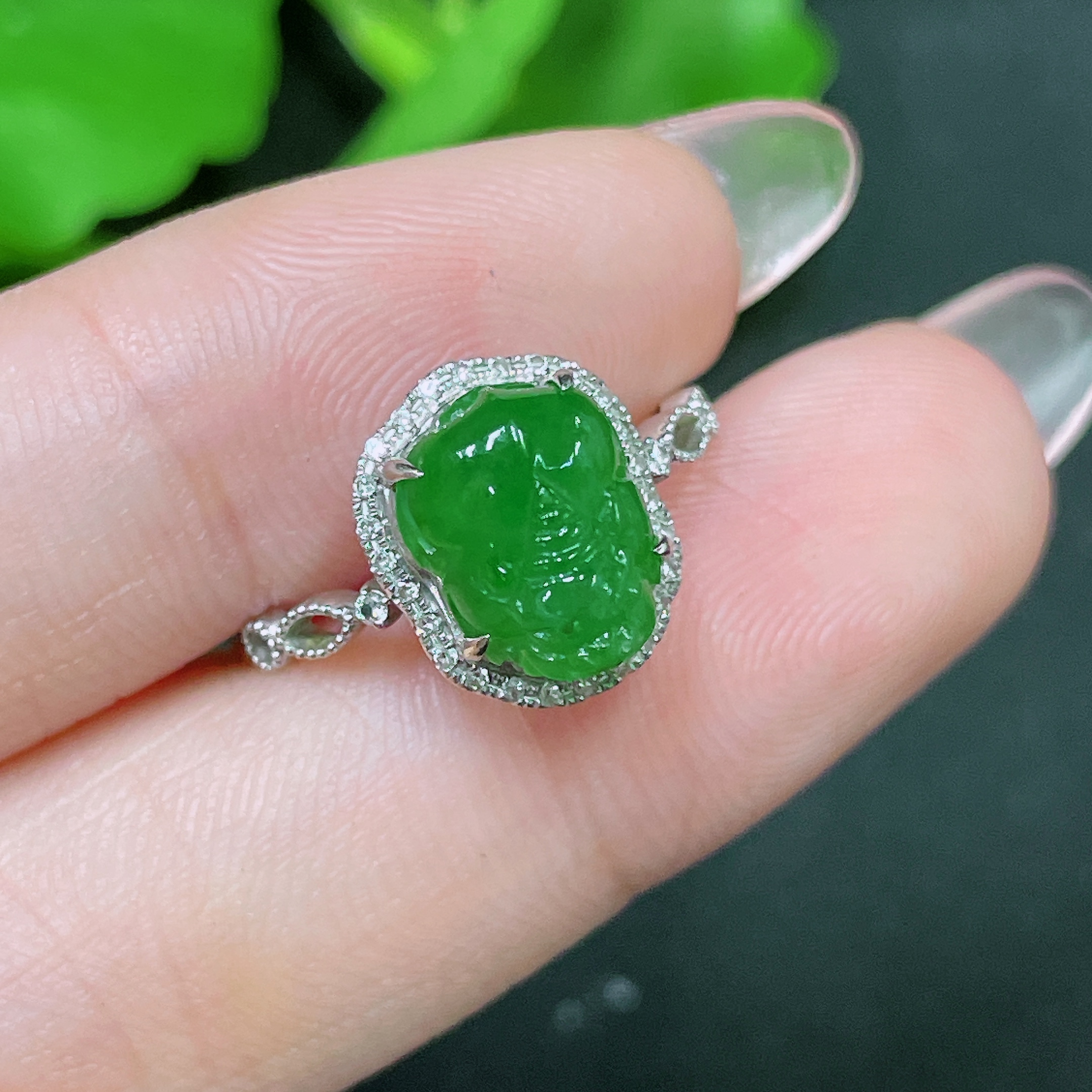 Jadeite Pixiu inlaid ring 18K gold size 13 total weight approx. 2.2g (with diamond accents)
