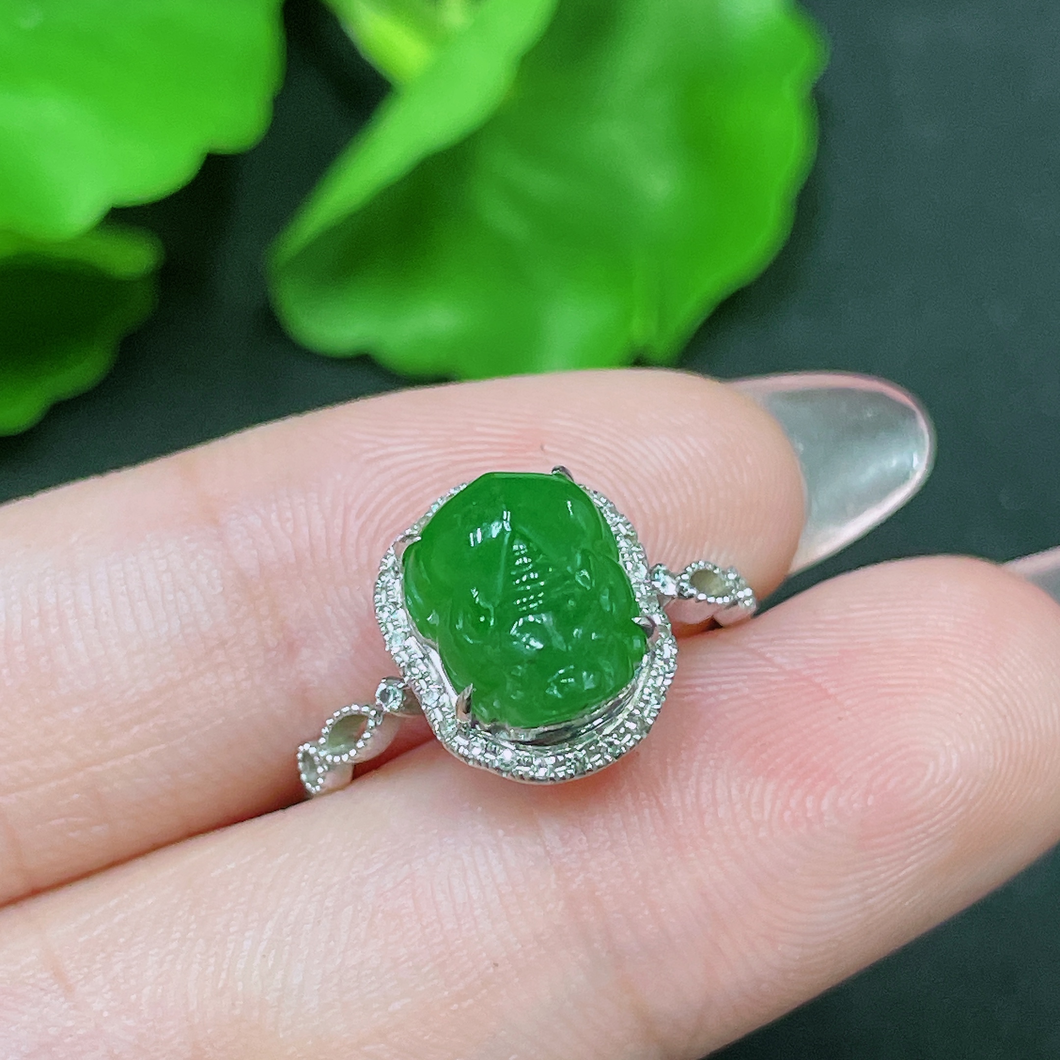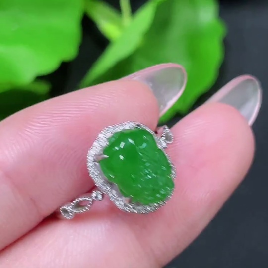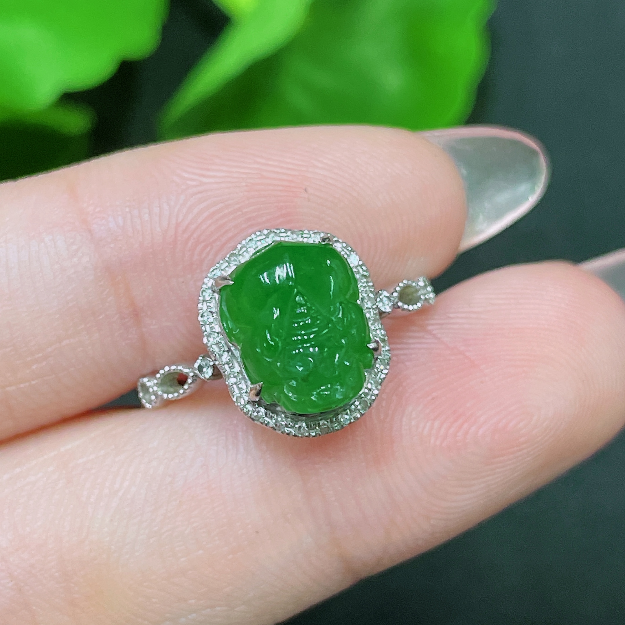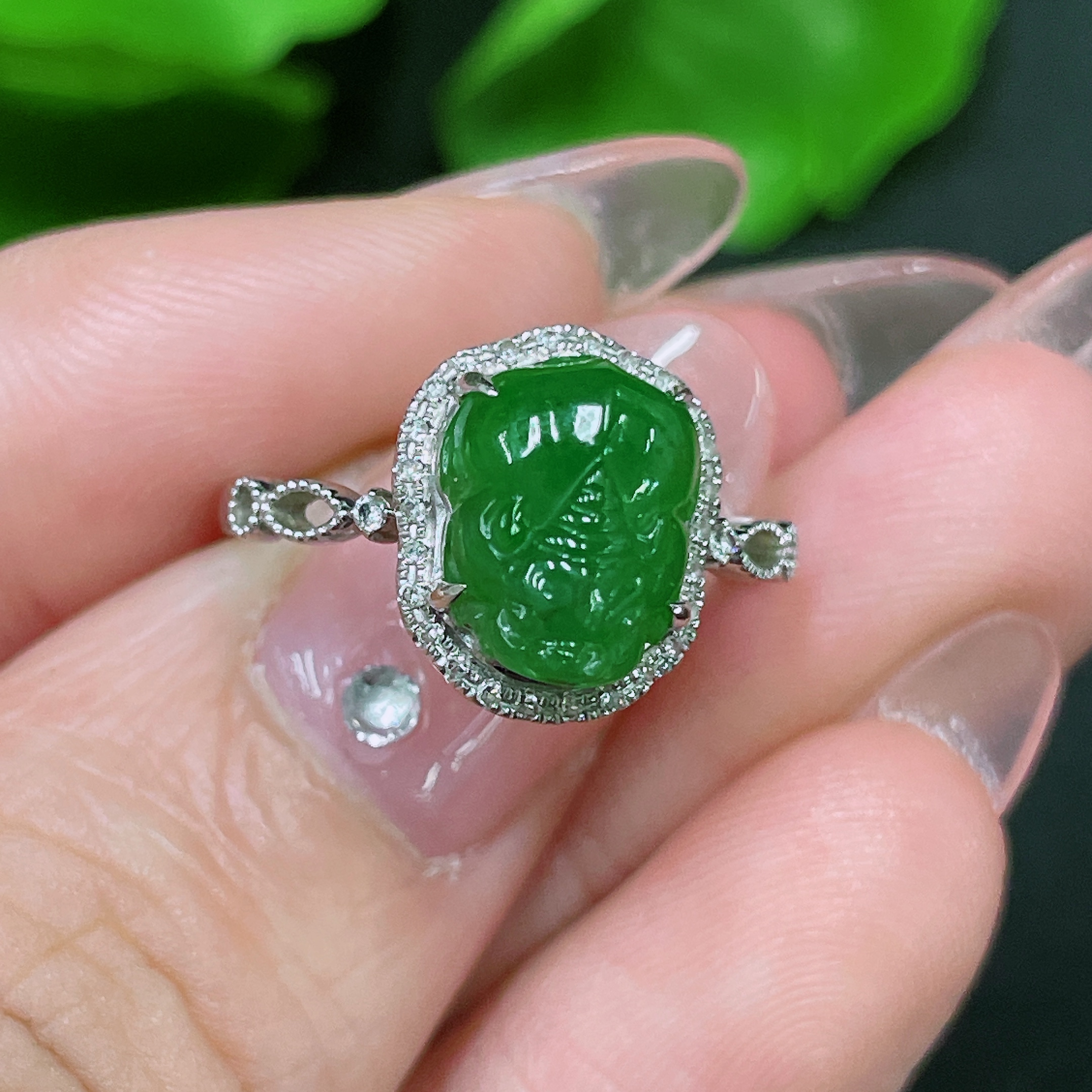 Jadeite Pixiu inlaid ring 18K gold size 13 total weight approx. 2.2g (with diamond accents)