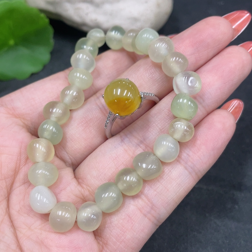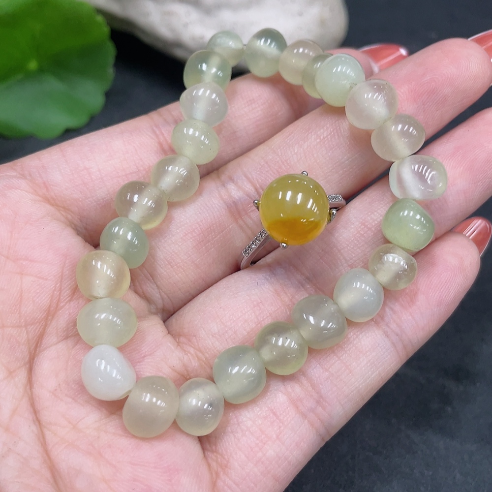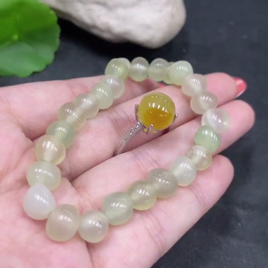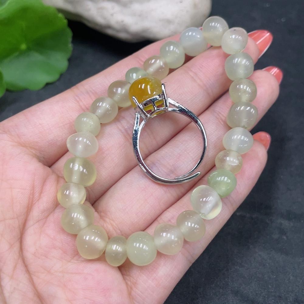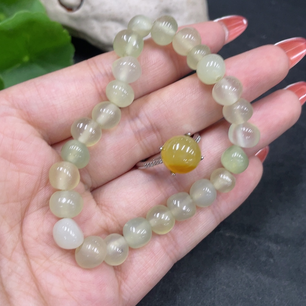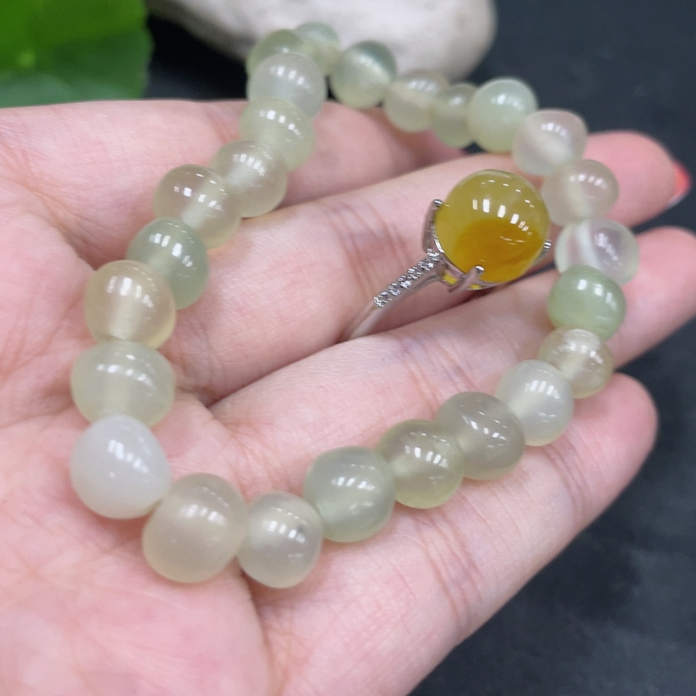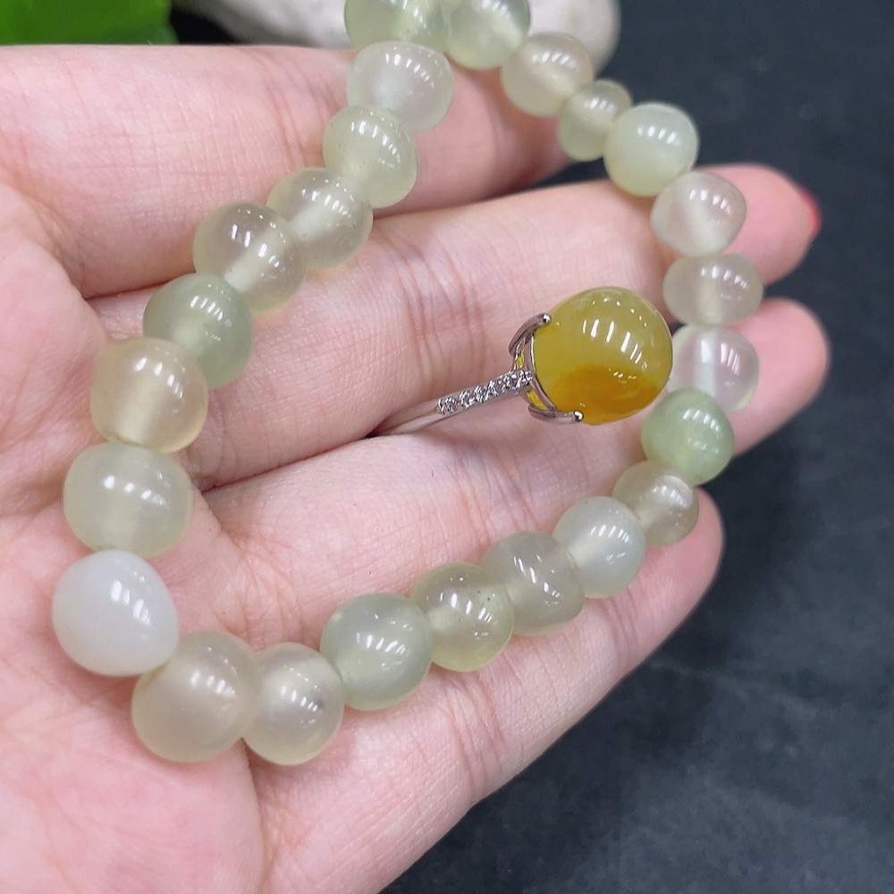 Xiuyu (Serpentine Jade) Inlaid Adjustable Ring Bracelet Non-Gold Inlaid Total Weight Approx. 18.8g