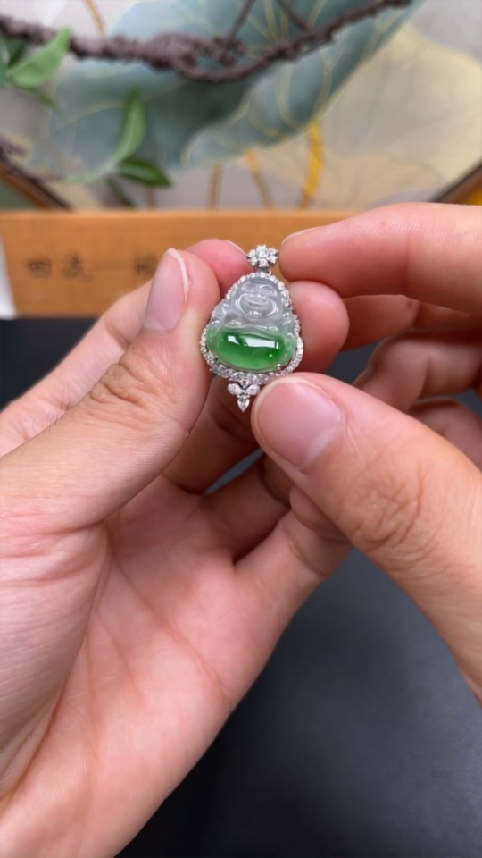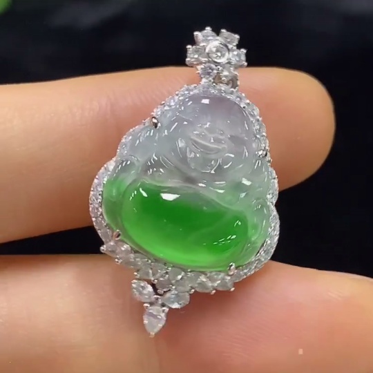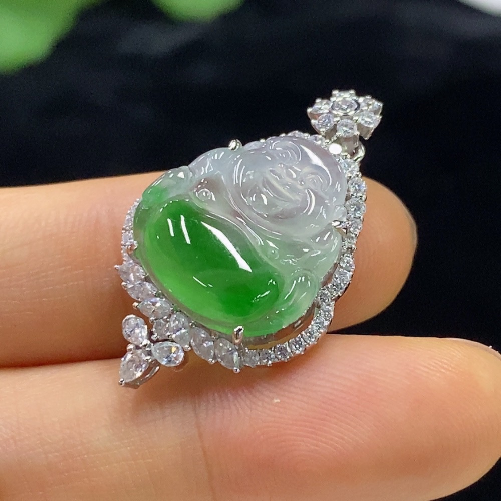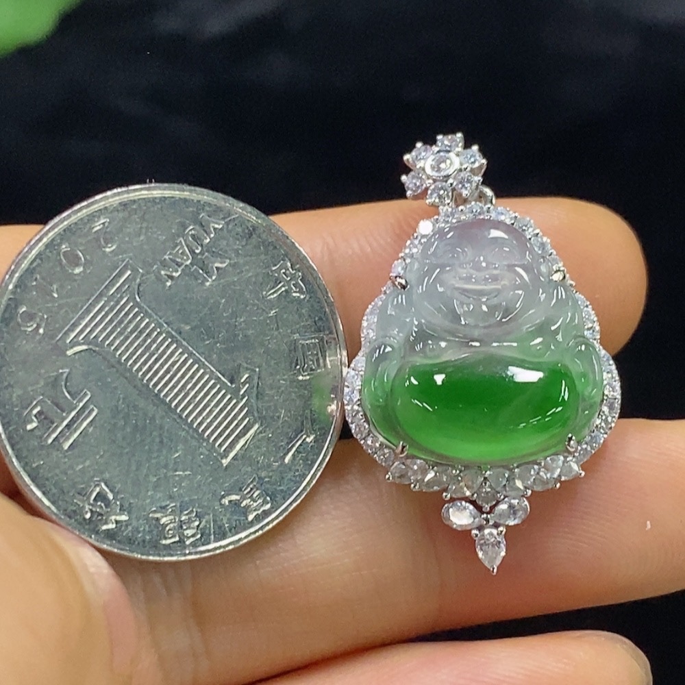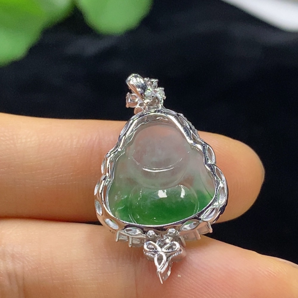 Jadeite Buddha Pendant with 18k Gold Mounting, Total Weight Approx. 4.32g