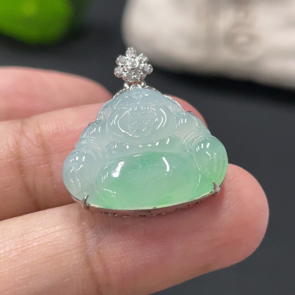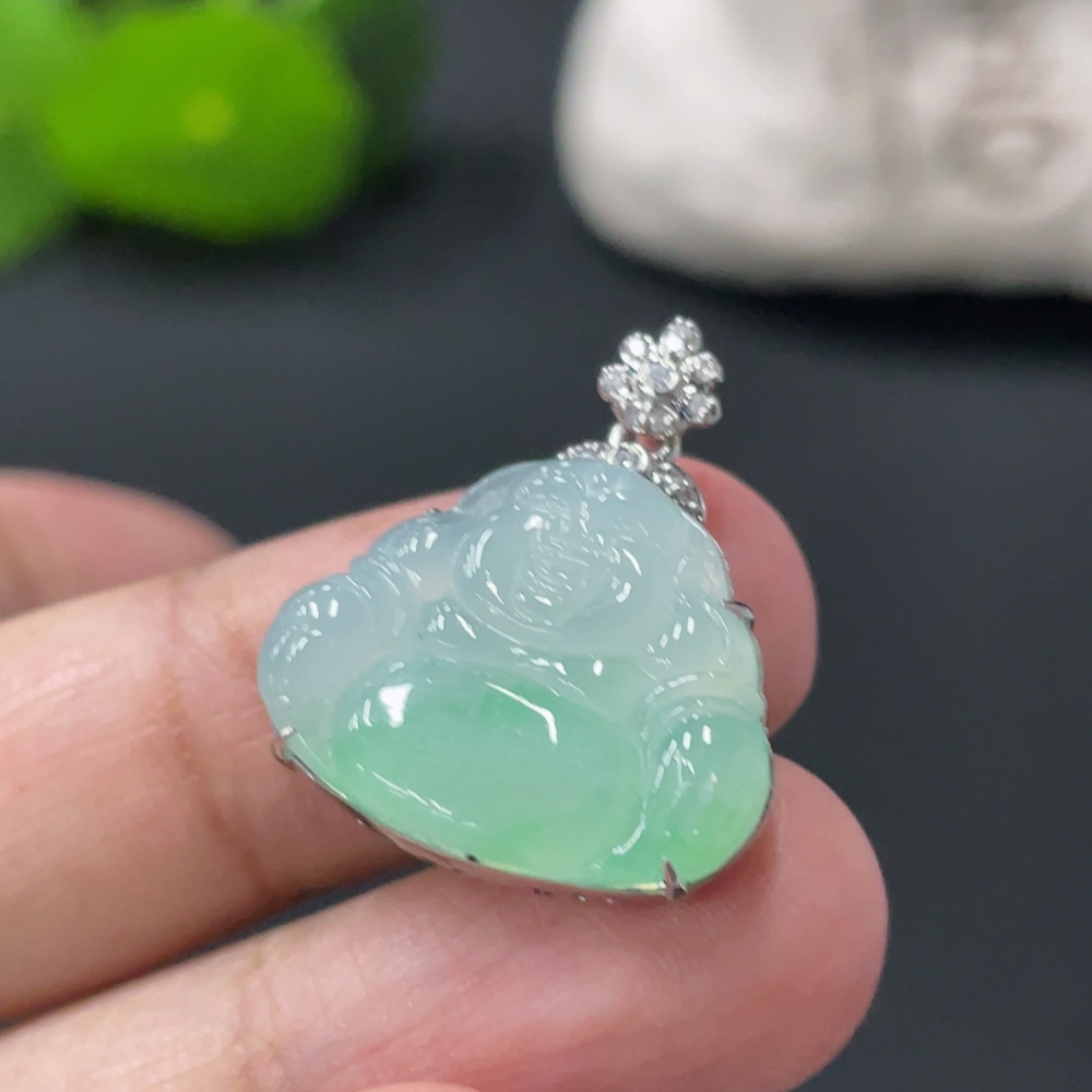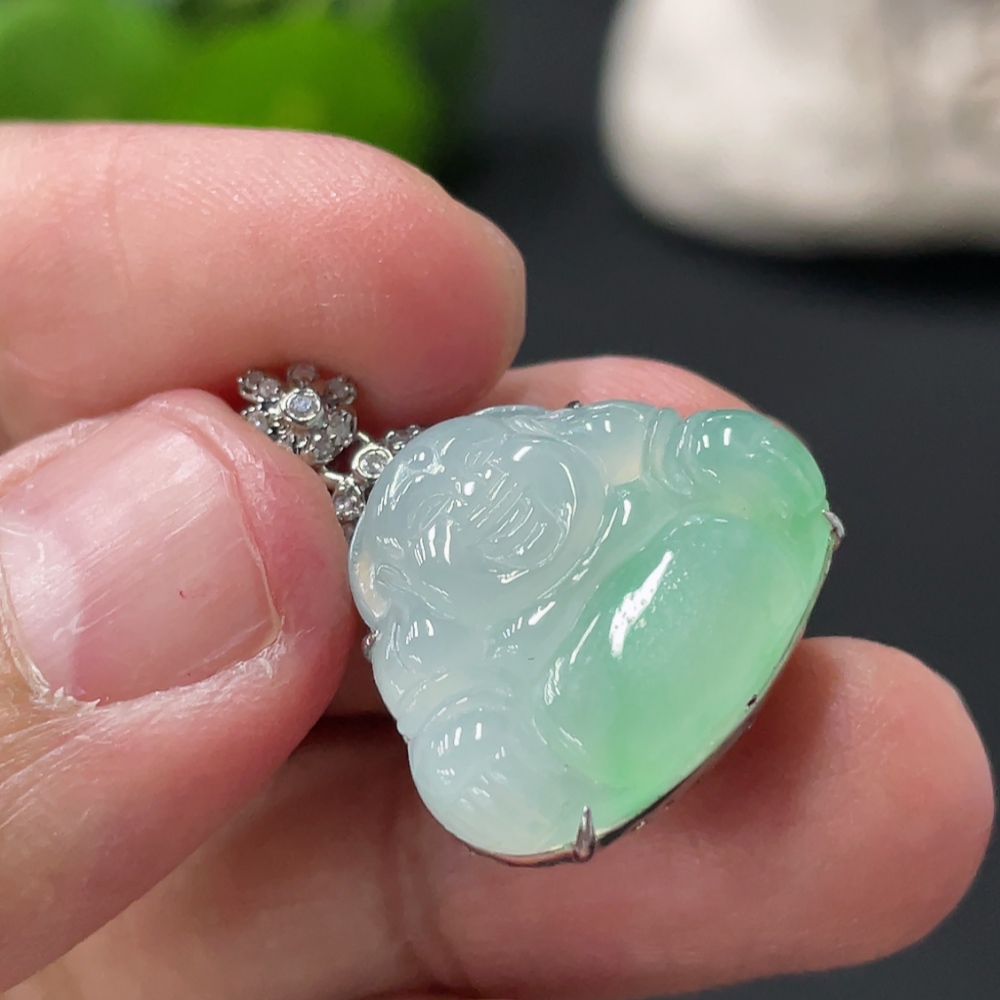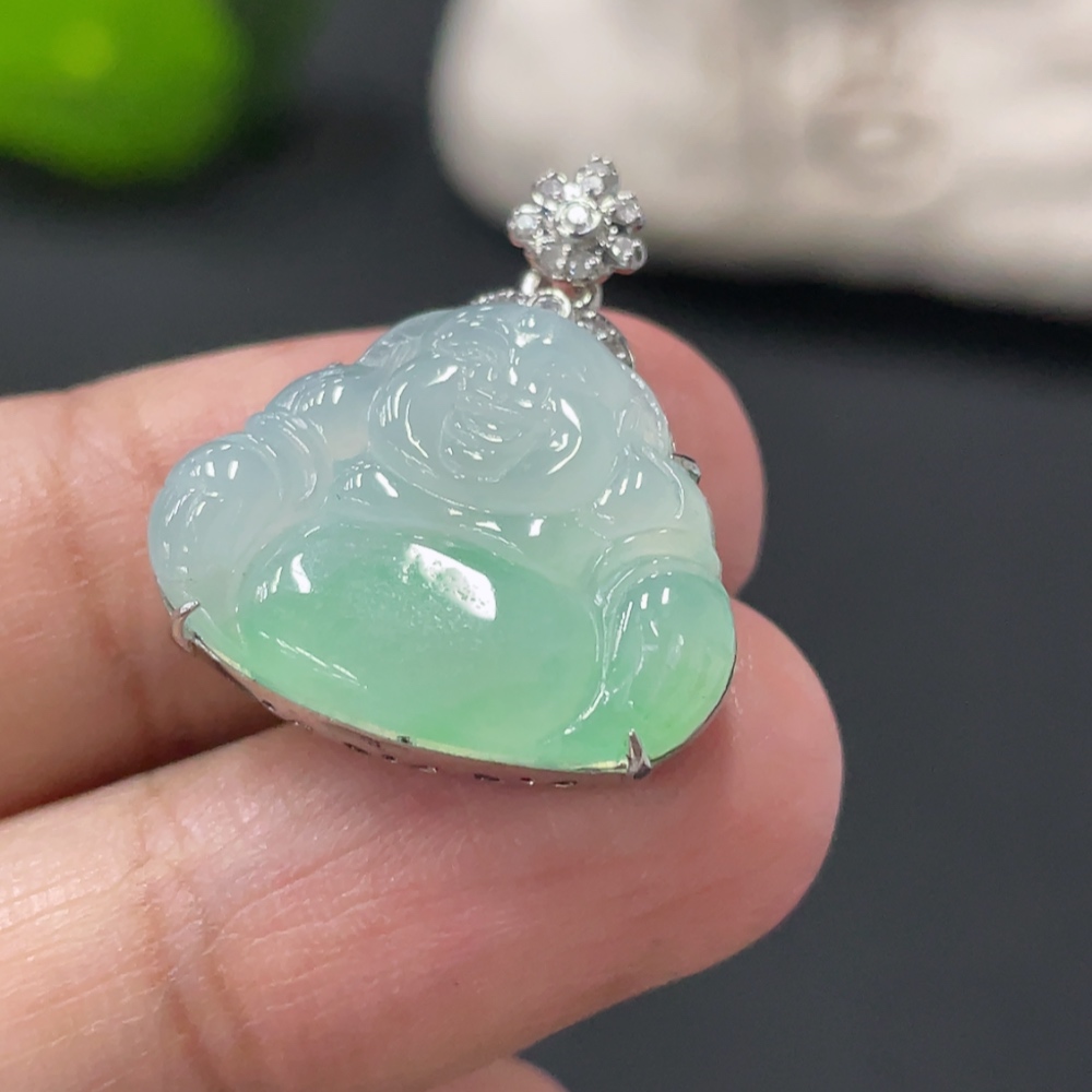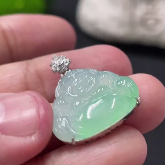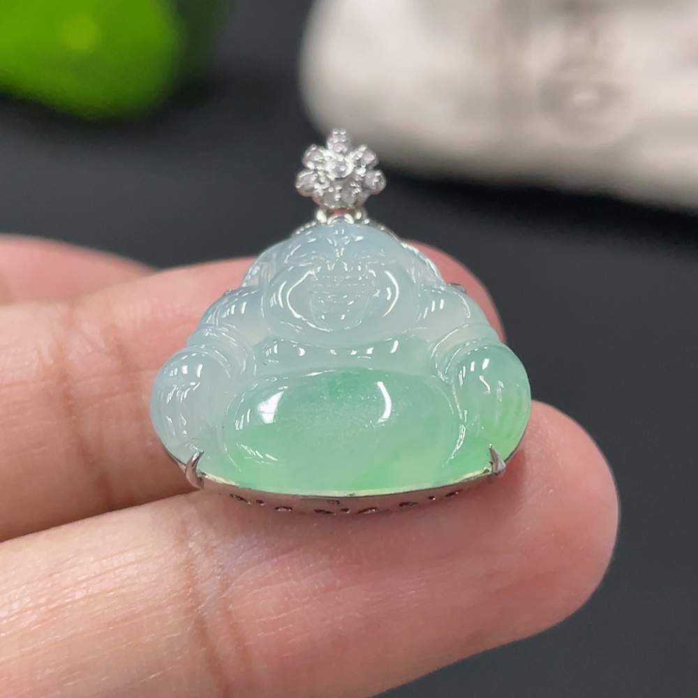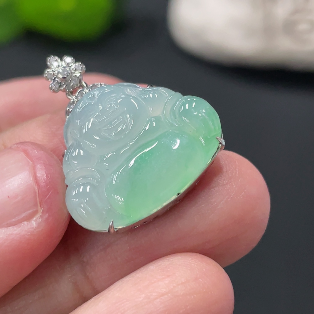 Jadeite Buddha Pendant with 18K Gold and Diamond Setting, Total Weight Approx. 3.28g