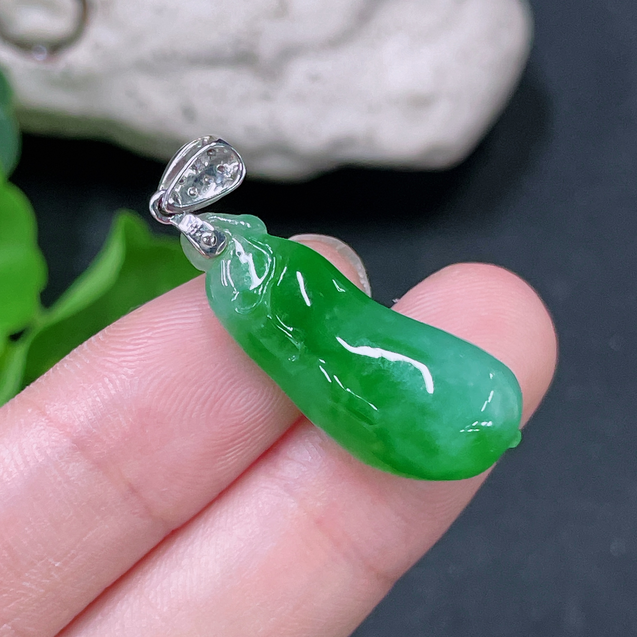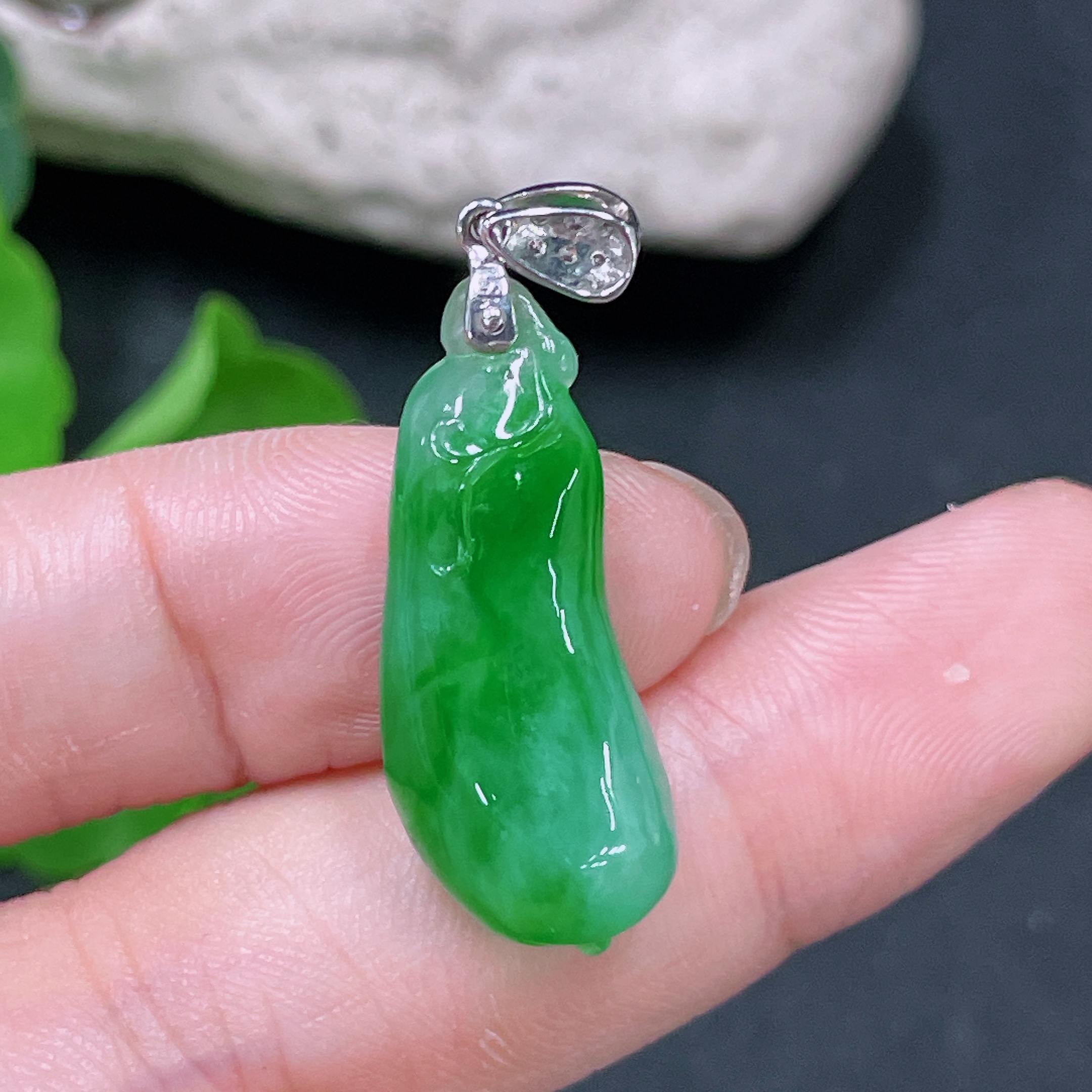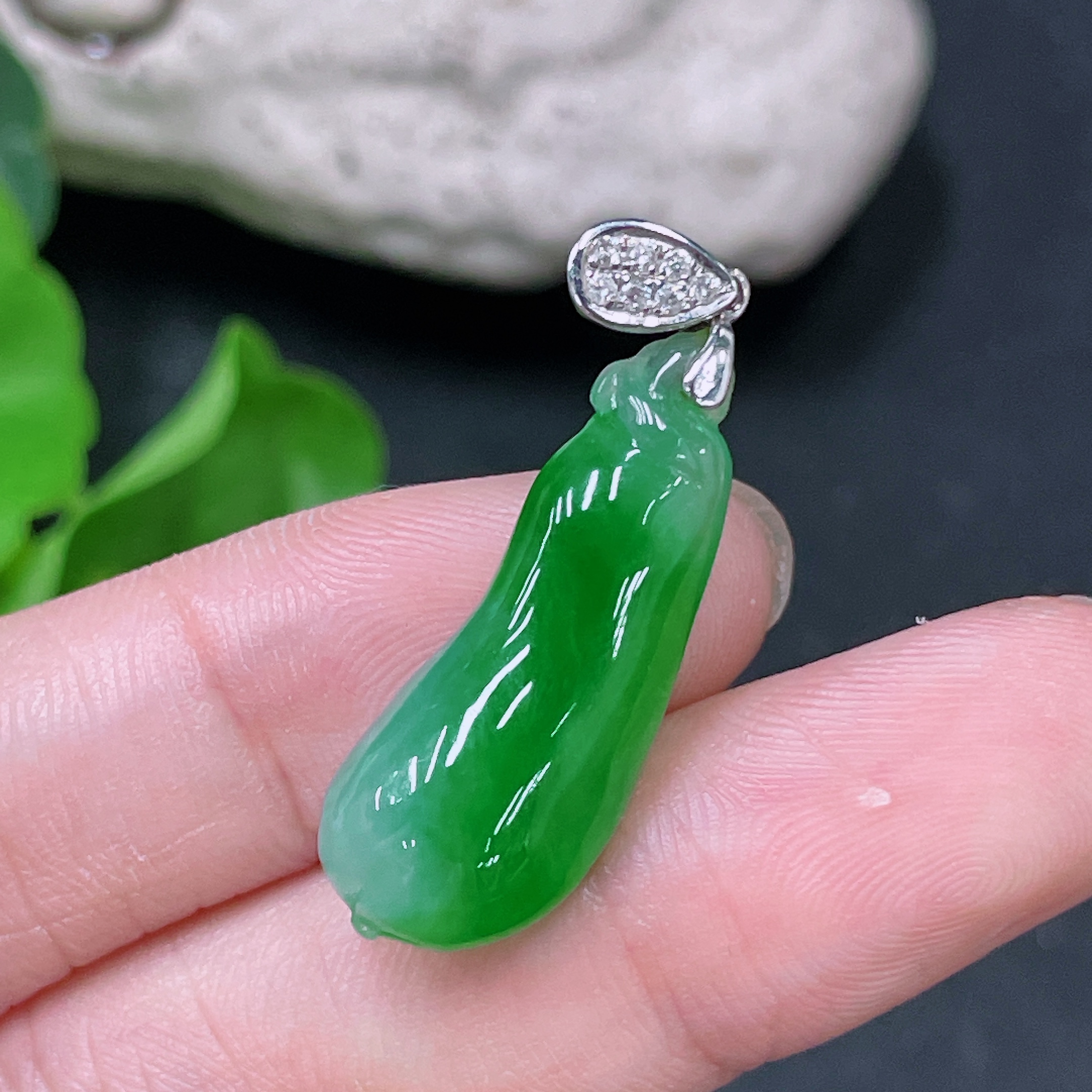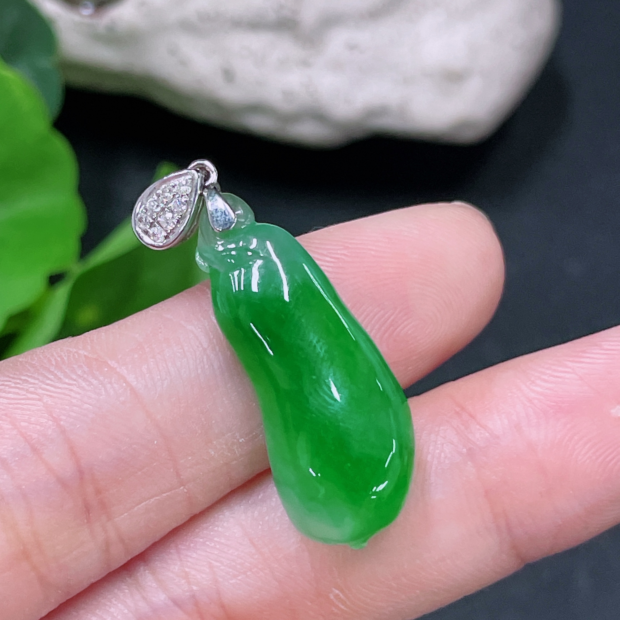 Jadeite Fu Gua Pendant with 18K Gold Clasp, Total Weight Approx. 4.43g, Set with Diamonds