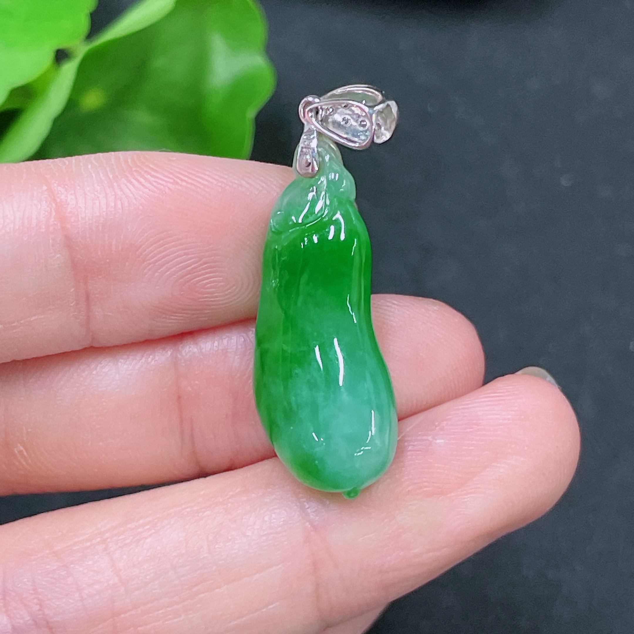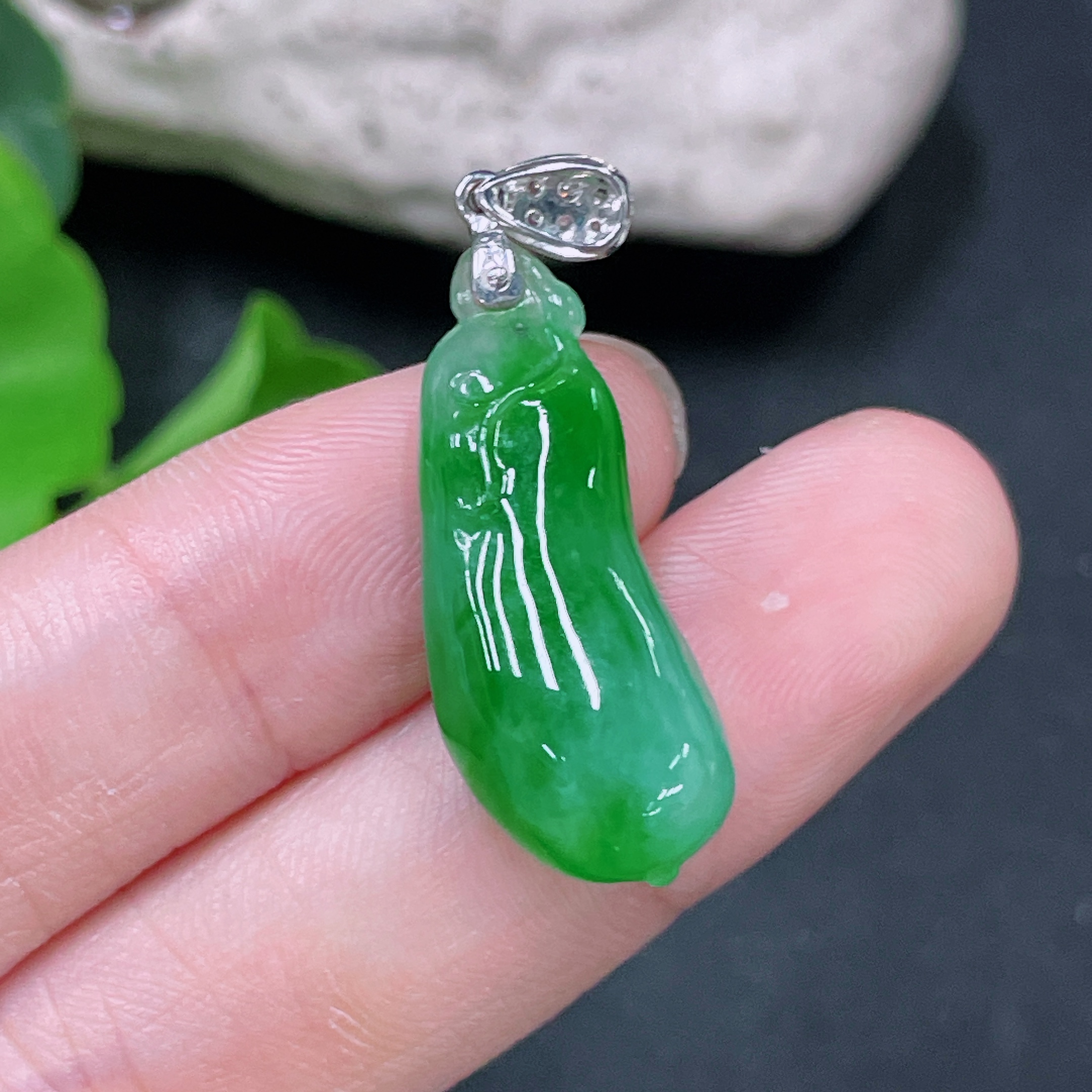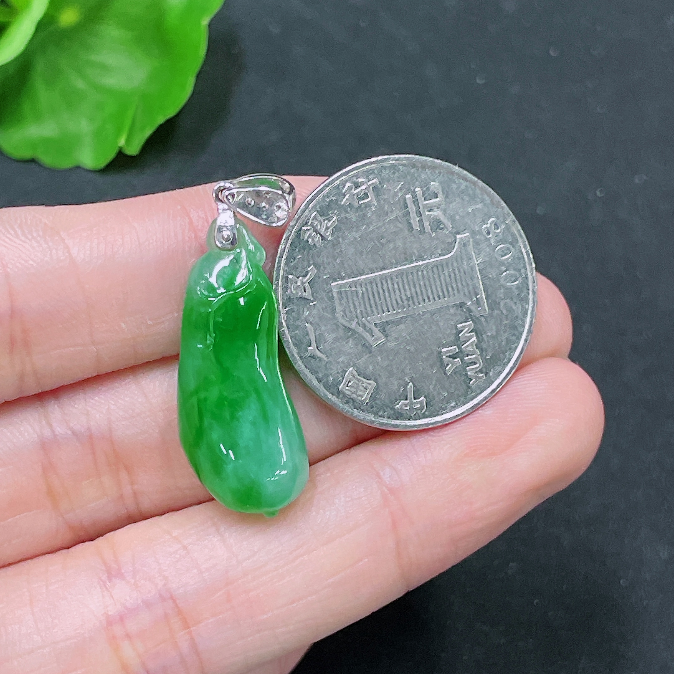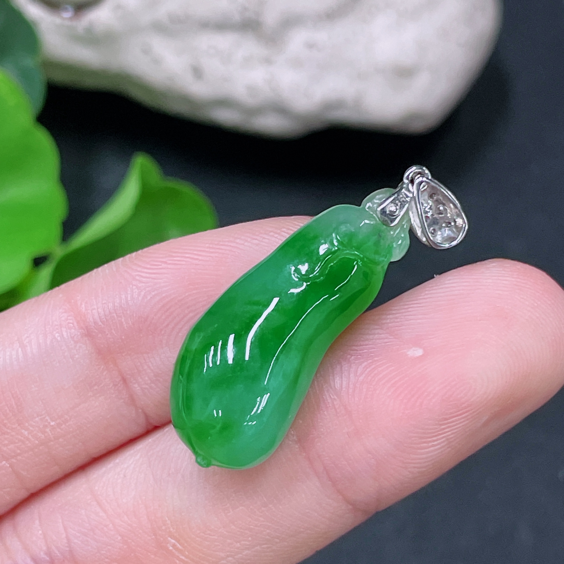 Jadeite Fu Gua Pendant with 18K Gold Clasp, Total Weight Approx. 4.43g, Set with Diamonds