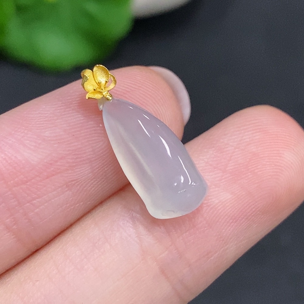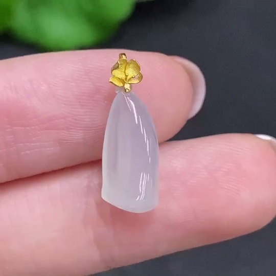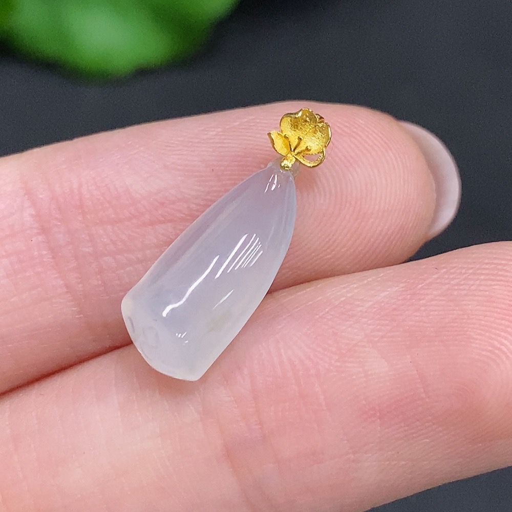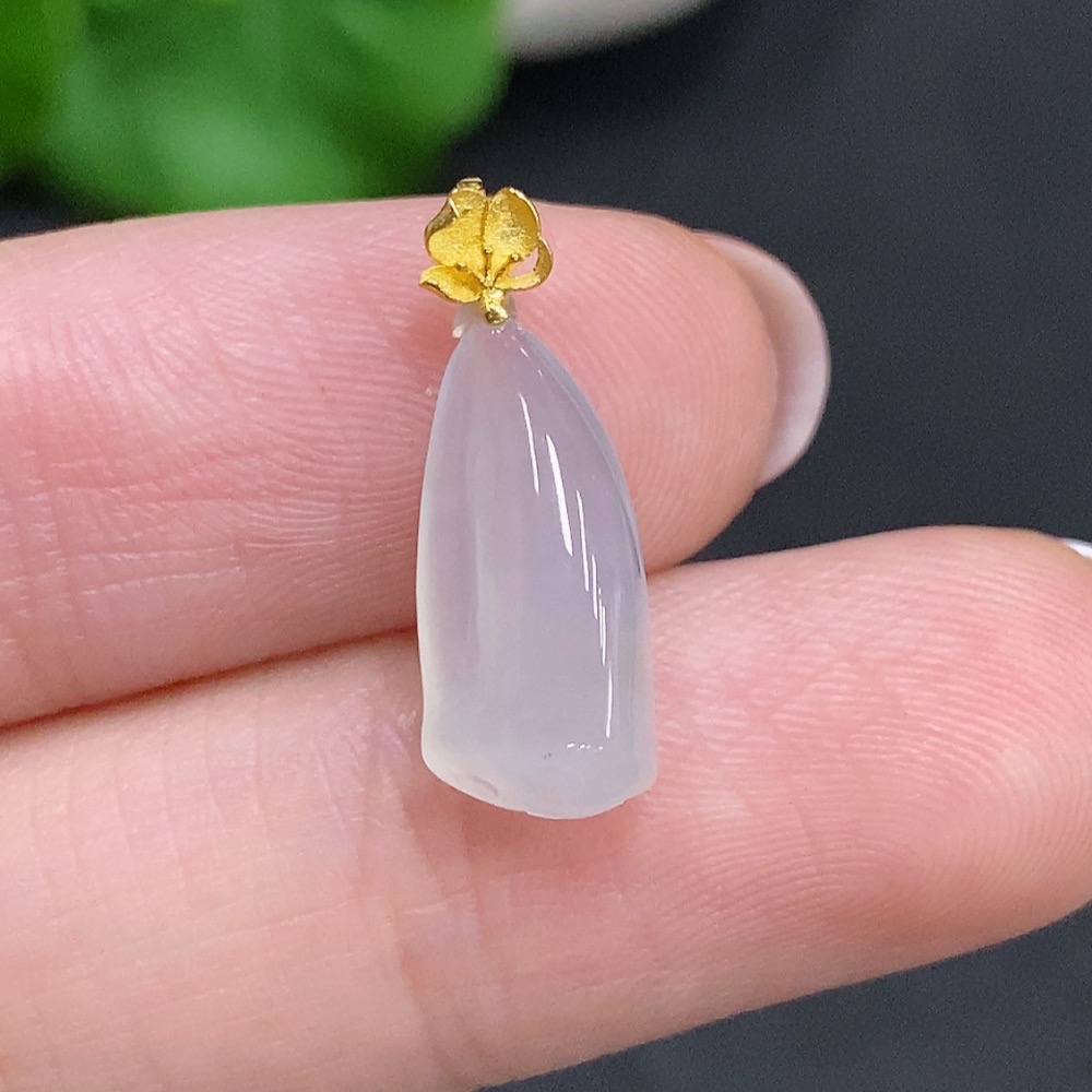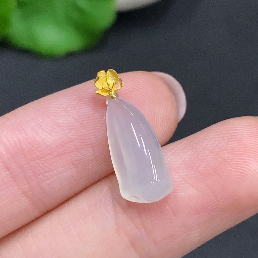 Jadeite Lotus Pod Pendant with 18k Gold Clasp, Total Weight Approximately 1.1g