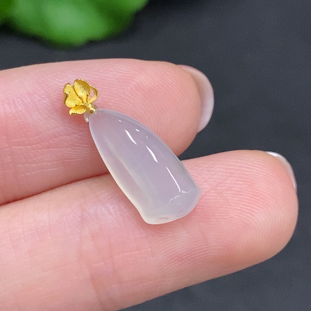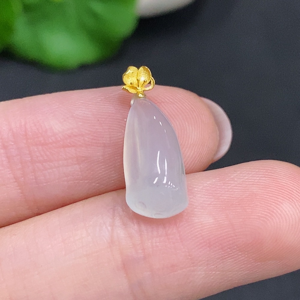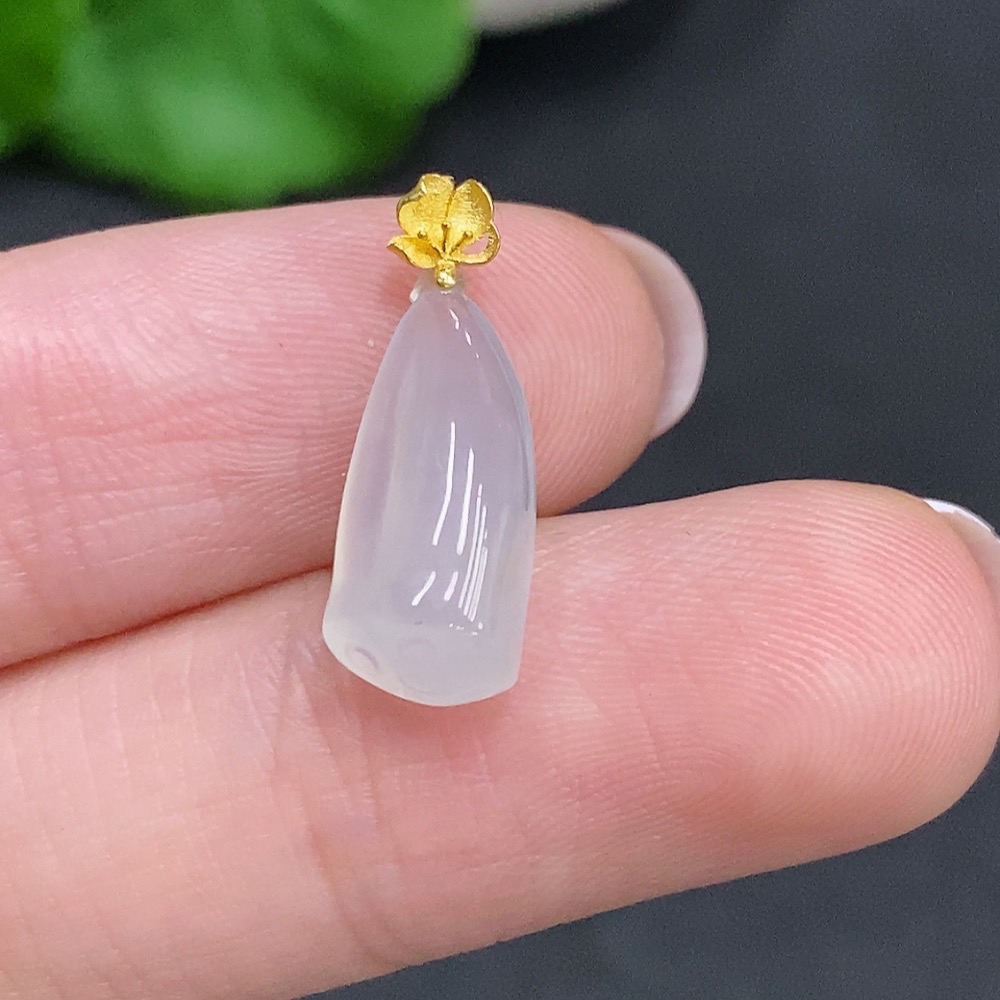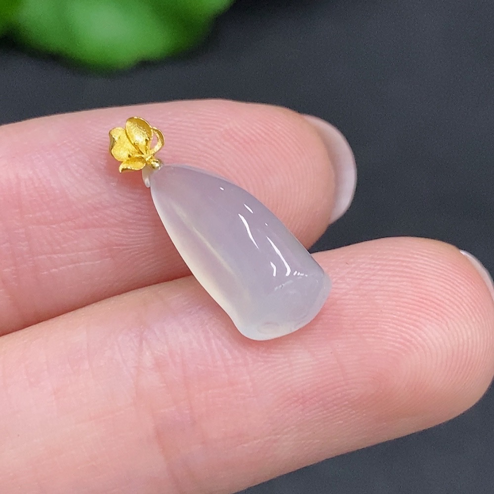 Jadeite Lotus Pod Pendant with 18k Gold Clasp, Total Weight Approximately 1.1g