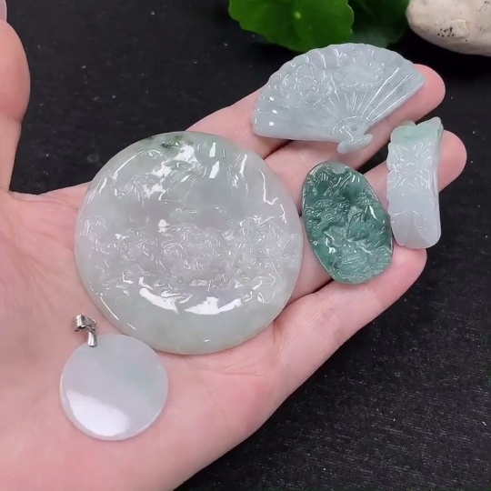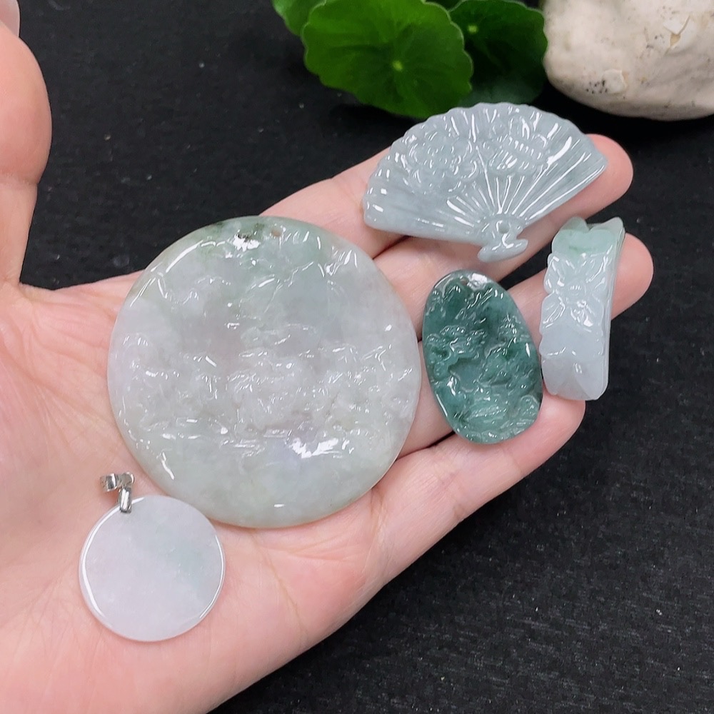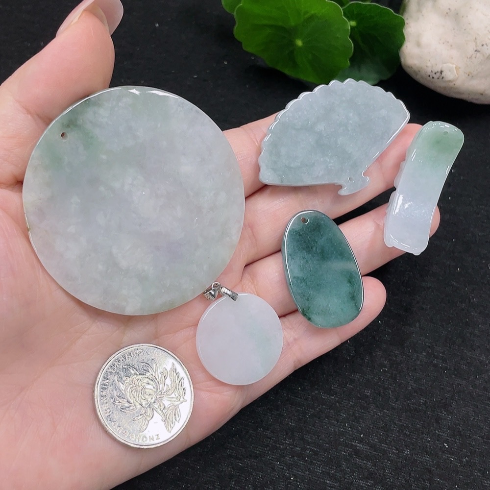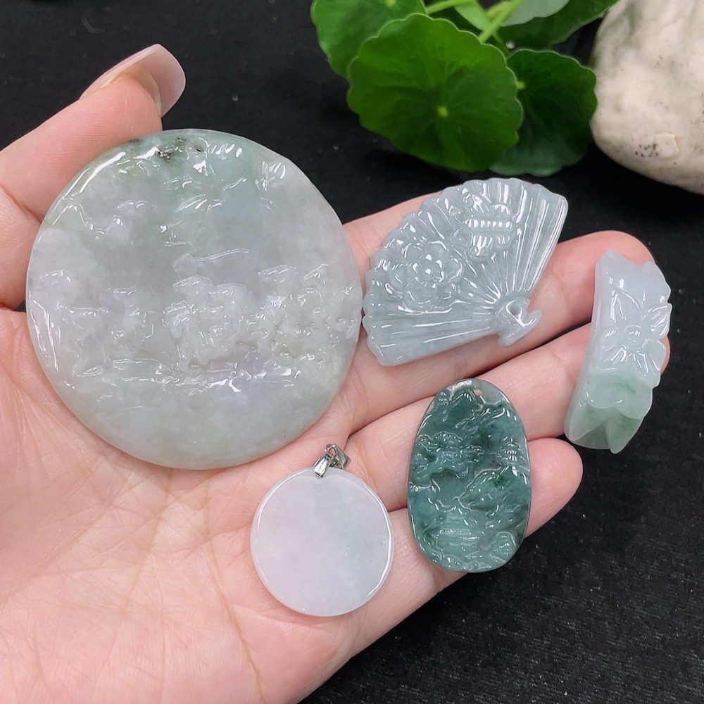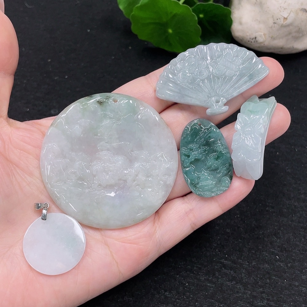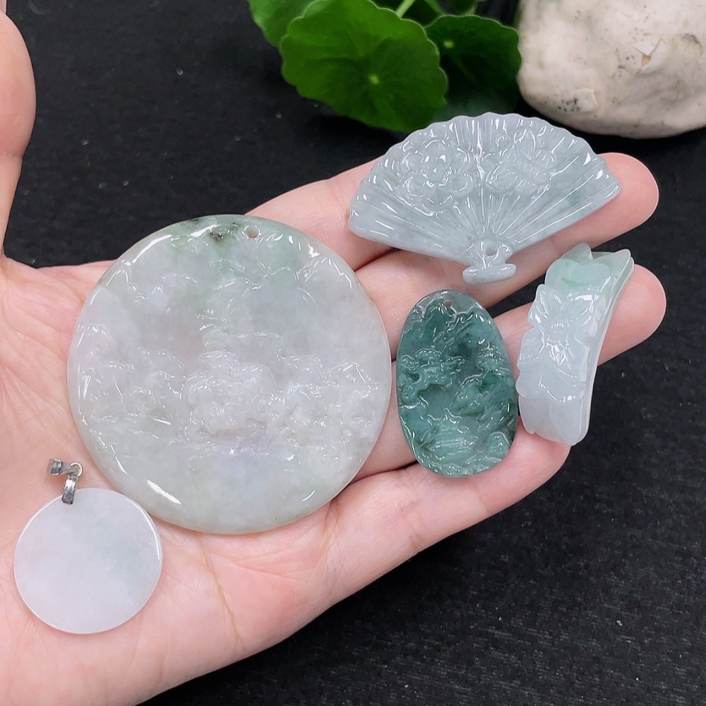 Jadeite Pendants Sell as a Lot (Non-Gold Inlaid)