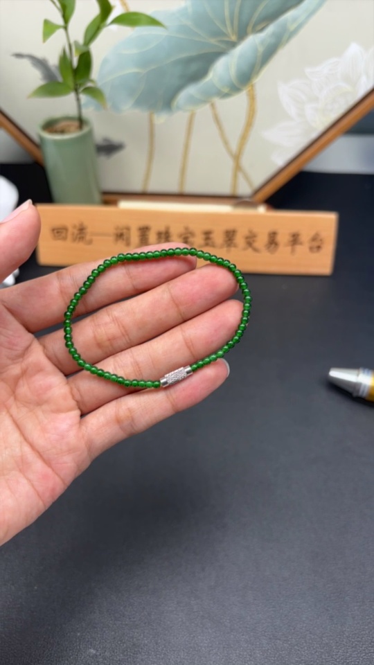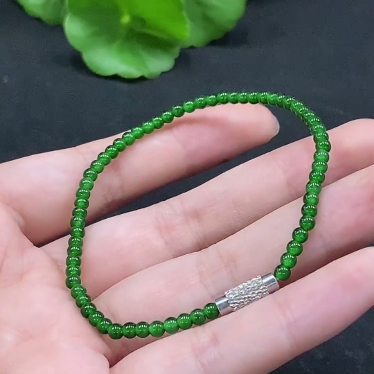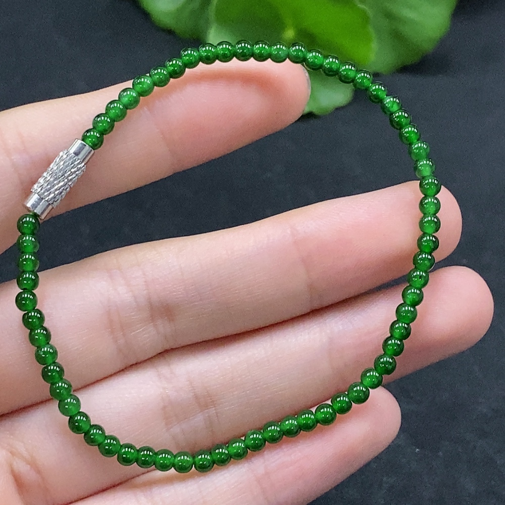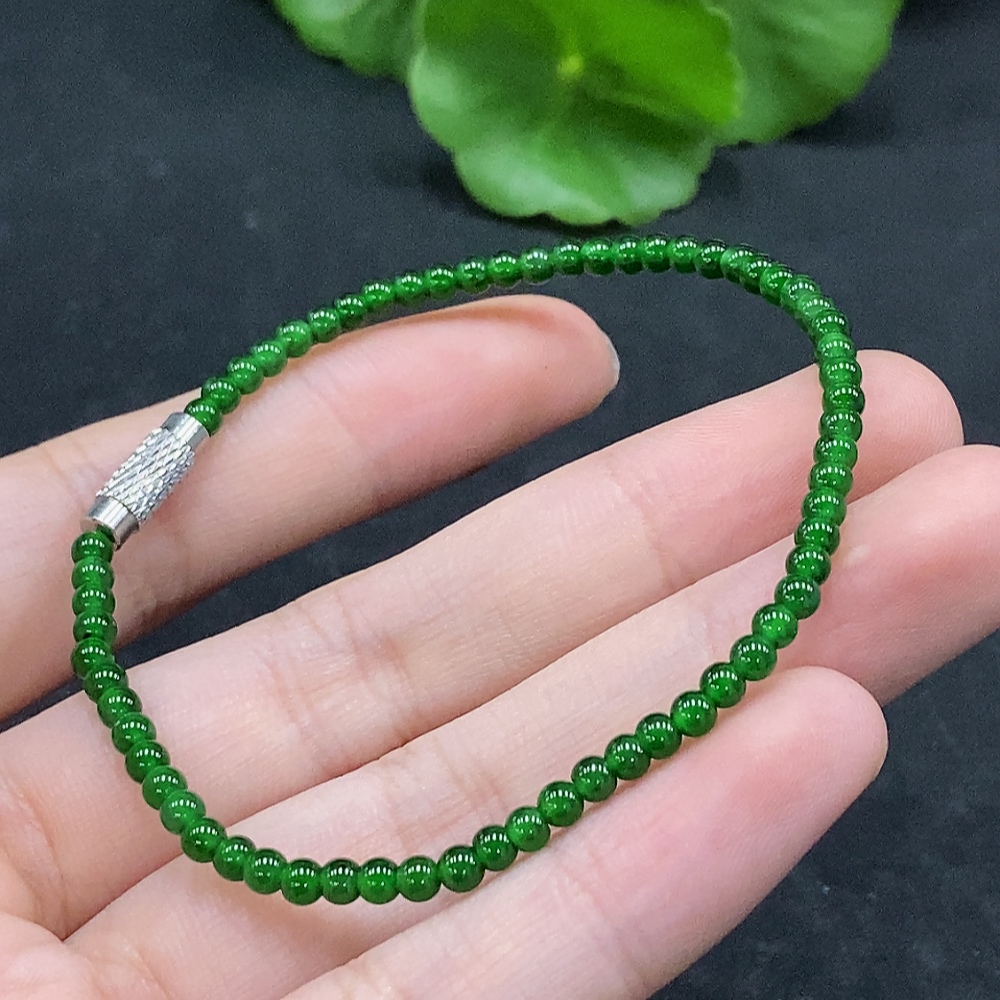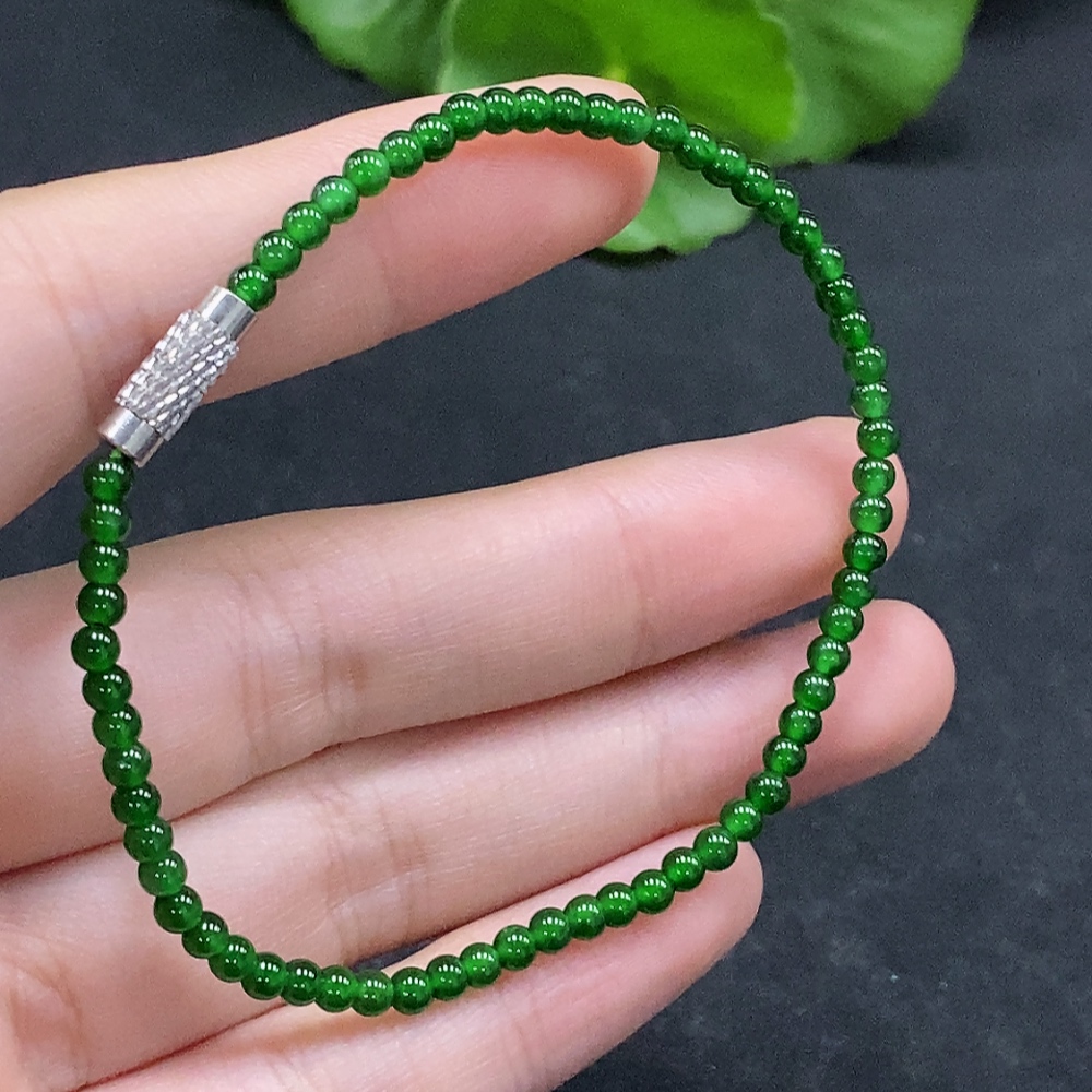 Jadeite Bracelet approx. 3mm beads total weight approx. 3.78g non-gold clasp