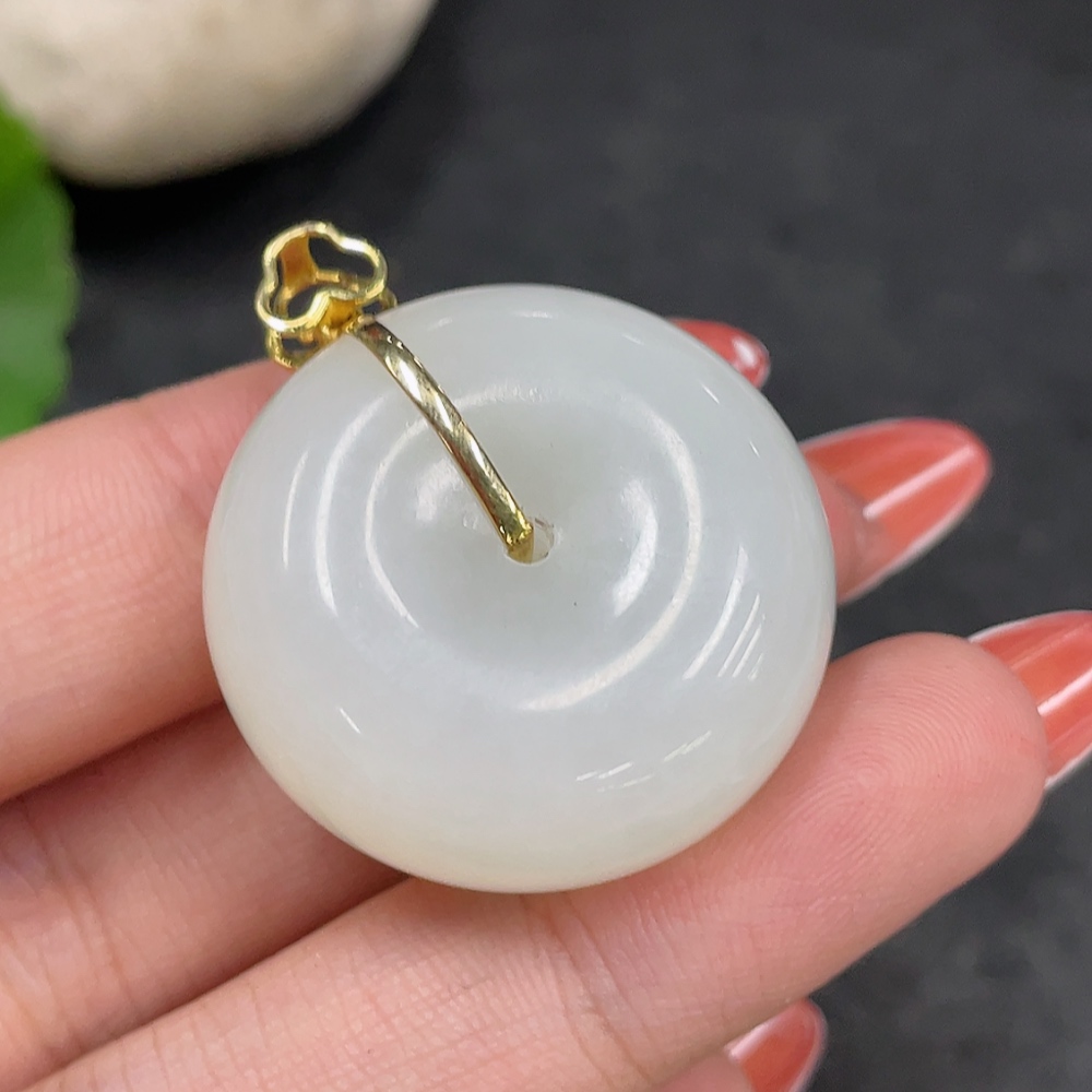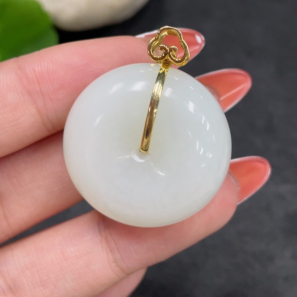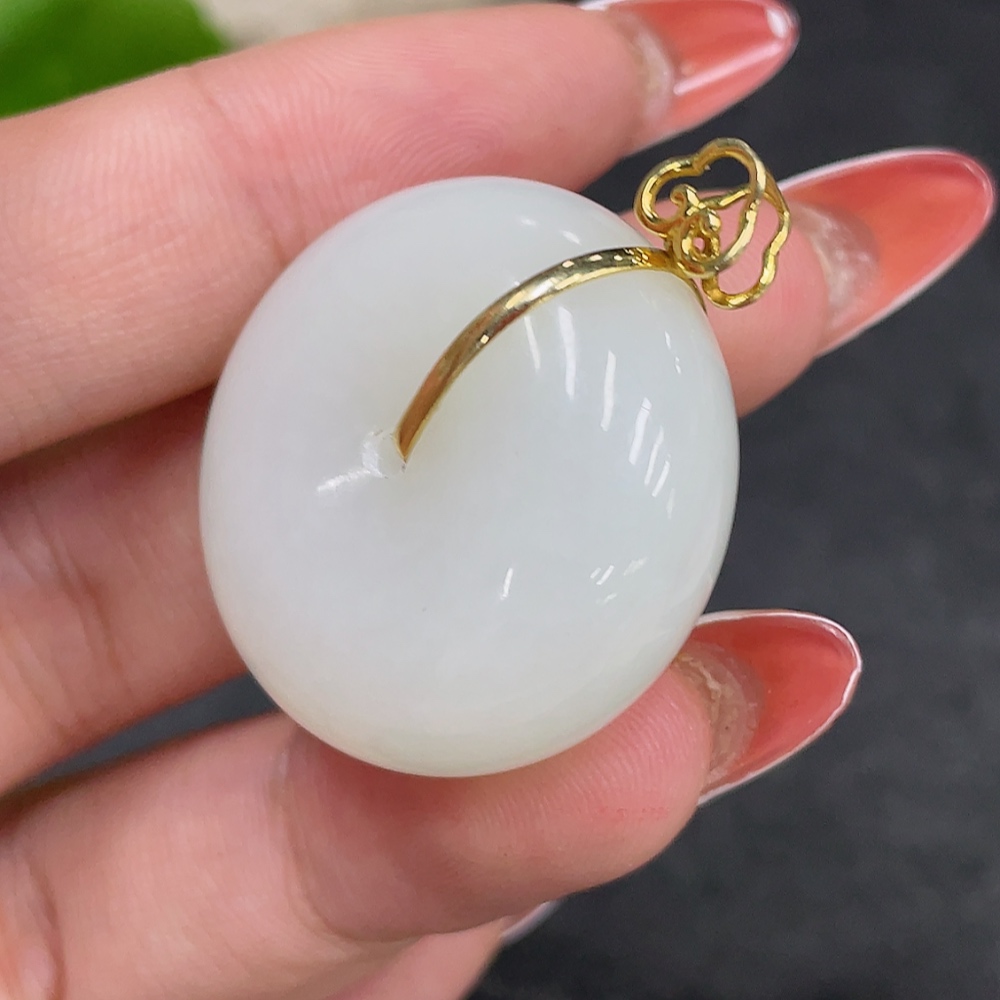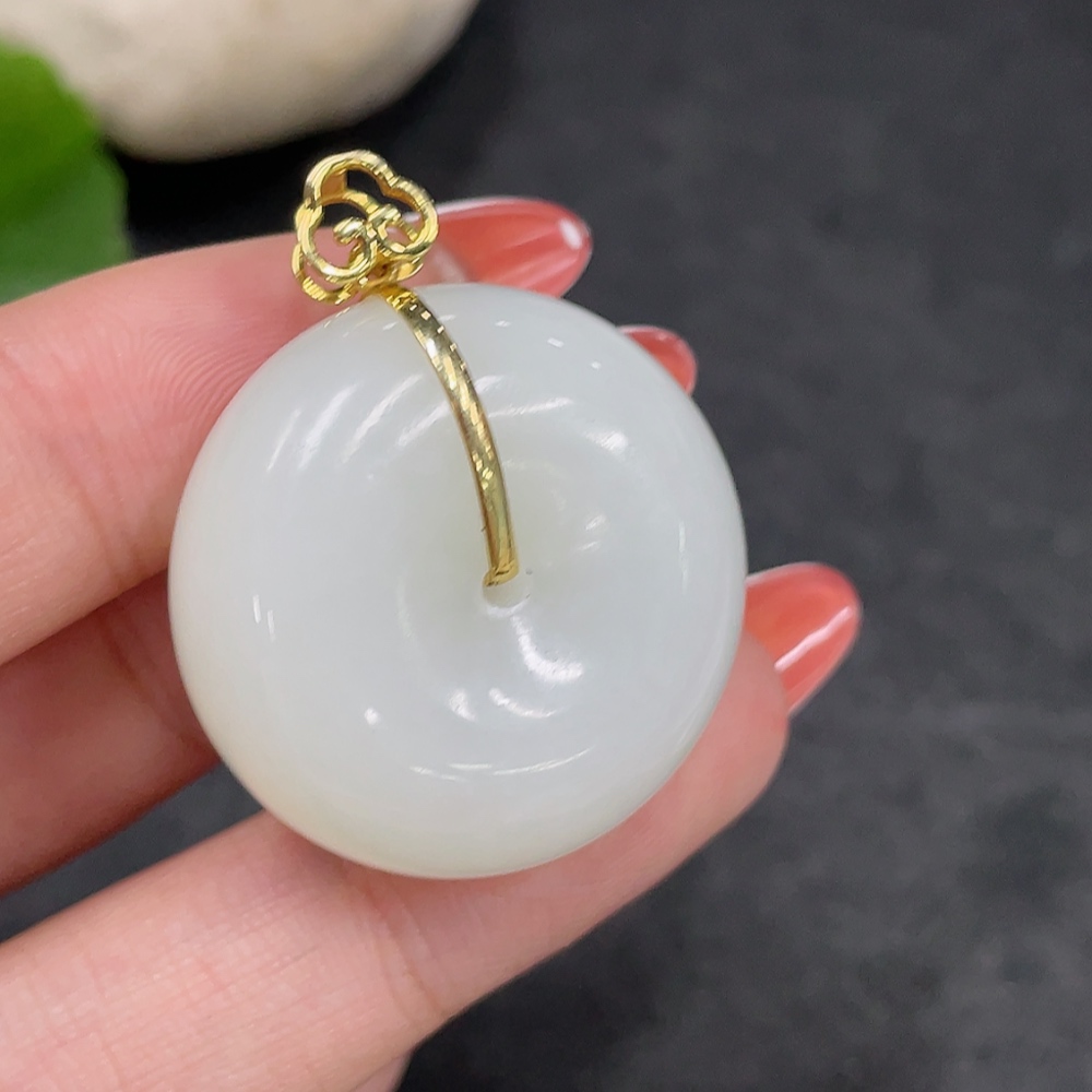 Hetian Jade Pendant, Peace Buckle, 18k Gold Clasp, Total Weight Approx. 20.2g