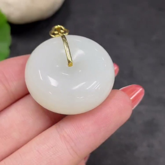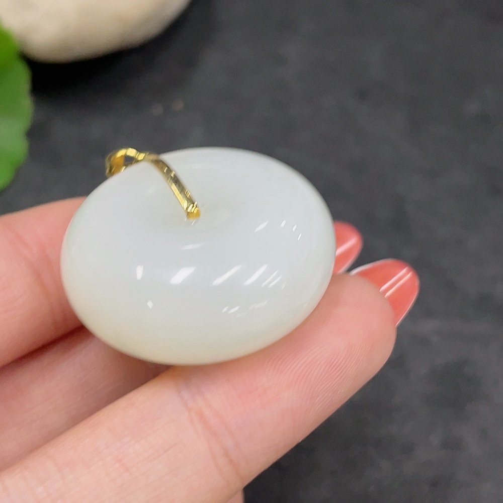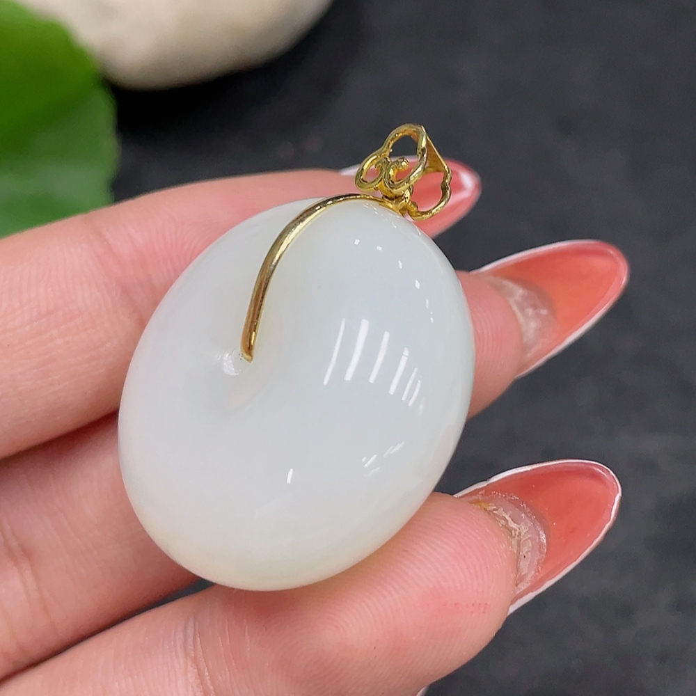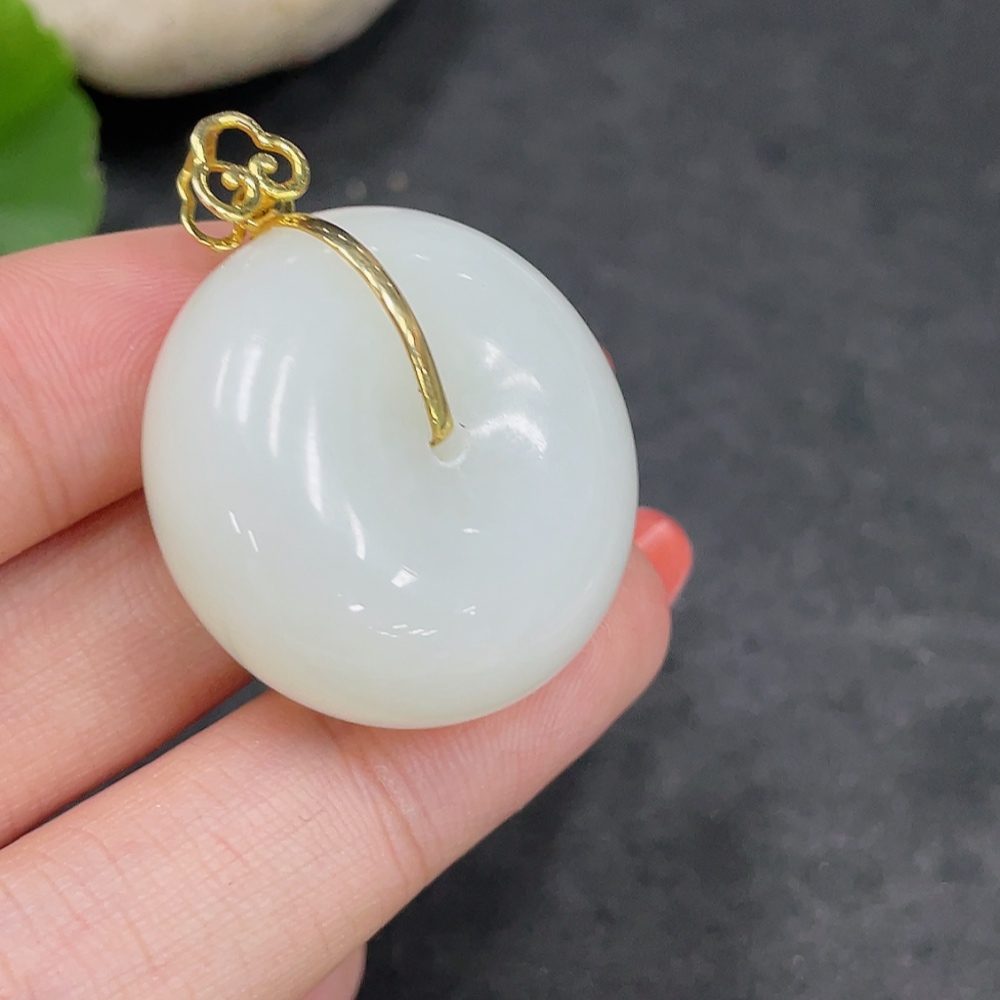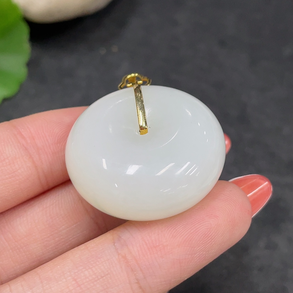 Hetian Jade Pendant, Peace Buckle, 18k Gold Clasp, Total Weight Approx. 20.2g