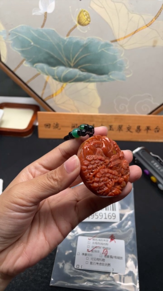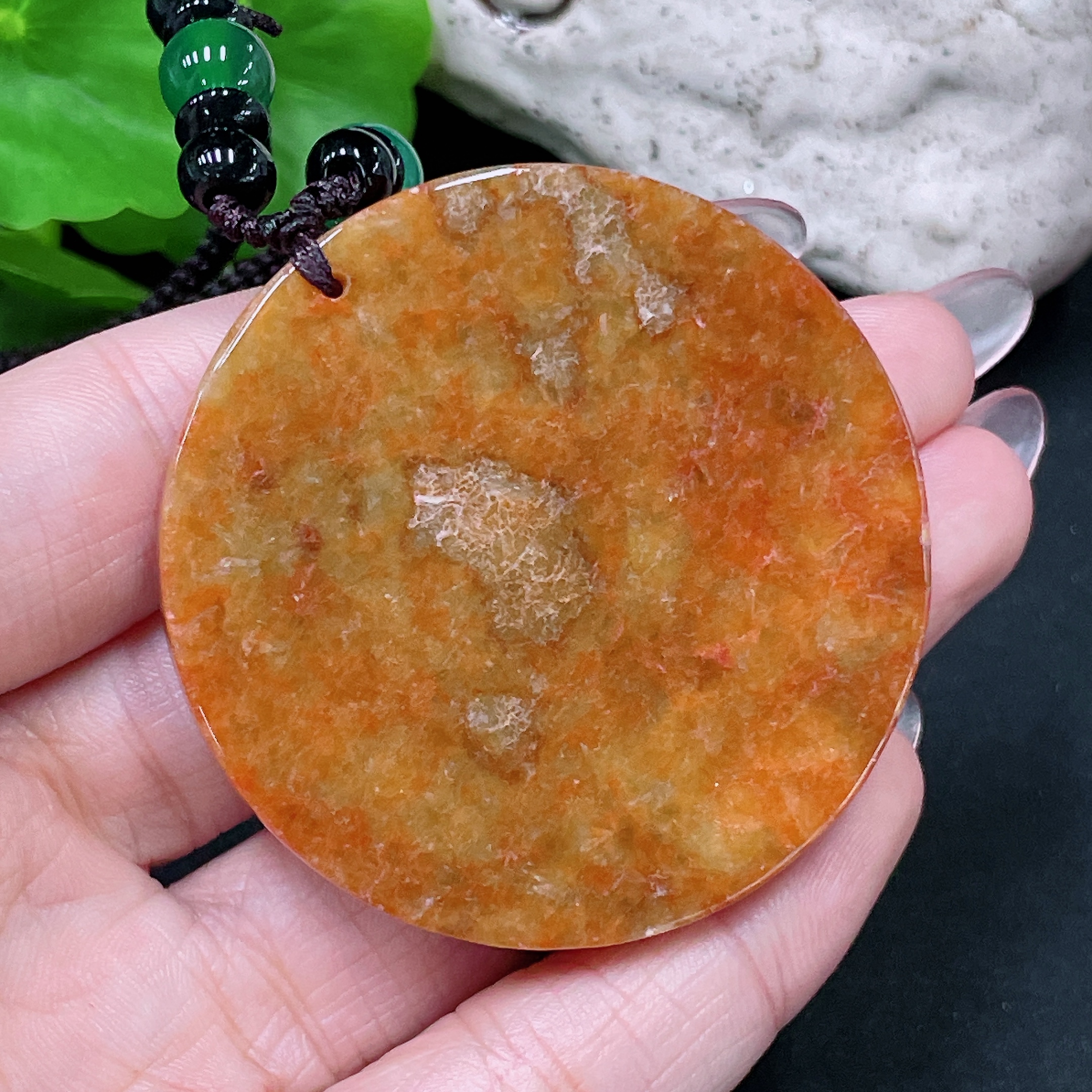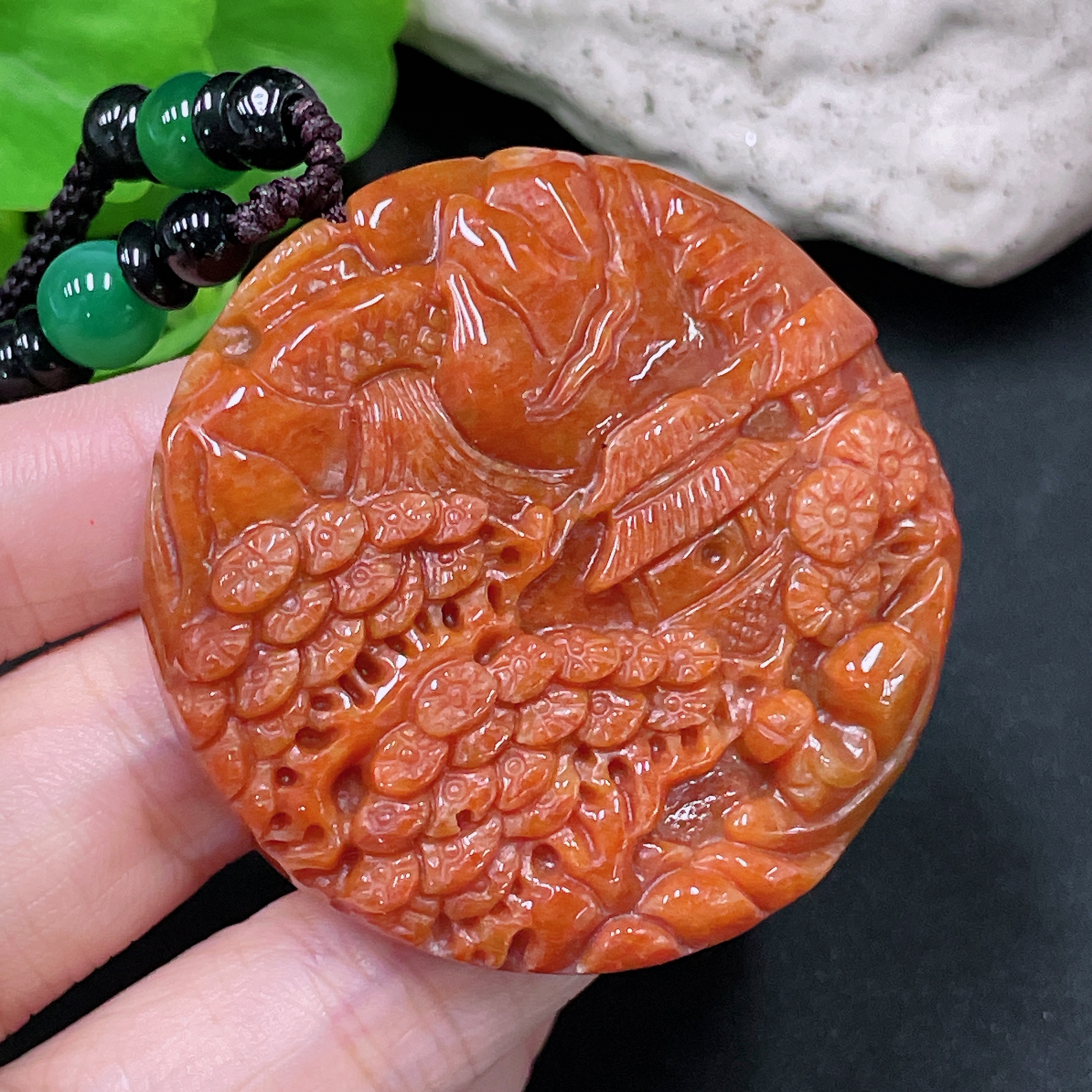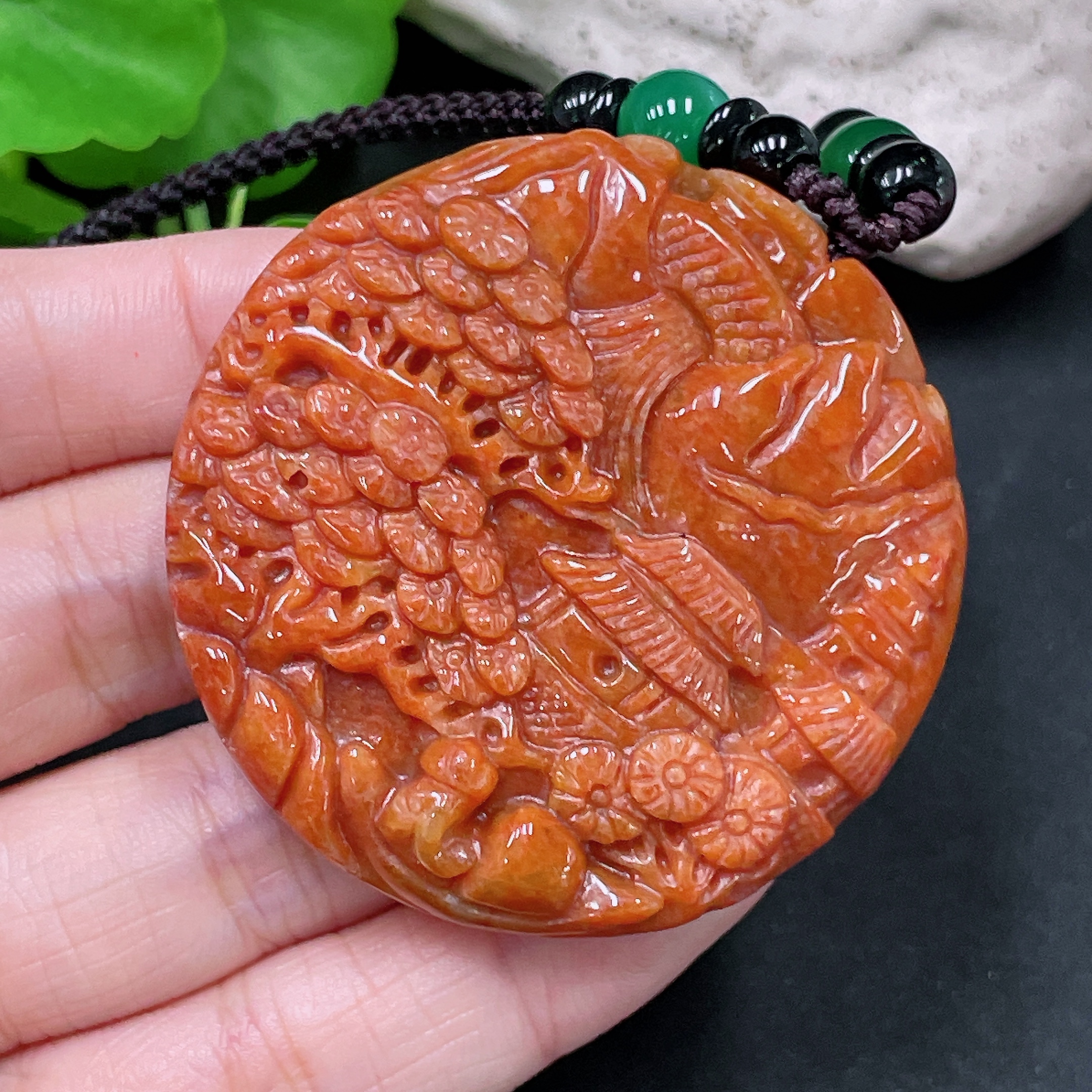Jadeite landscape pendant with cord total weight approximately 70.2g (accompanying beads non-A) (red color origin undetermined)