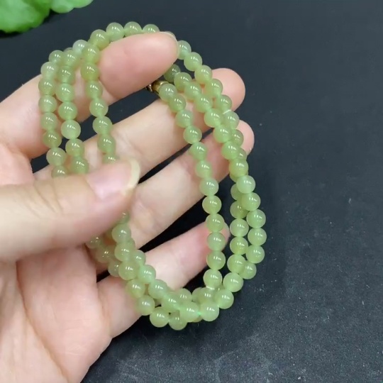 Hetian Jade Bead Necklace Approx. 4.9mm Total Weight About 22.6g