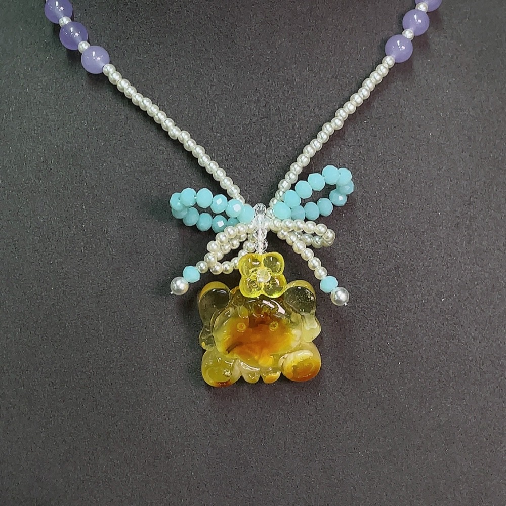 Amber Beeswax Pendant with Non-Natural, Non-Gold Chain, Coated, Total Weight Approx. 15.16g