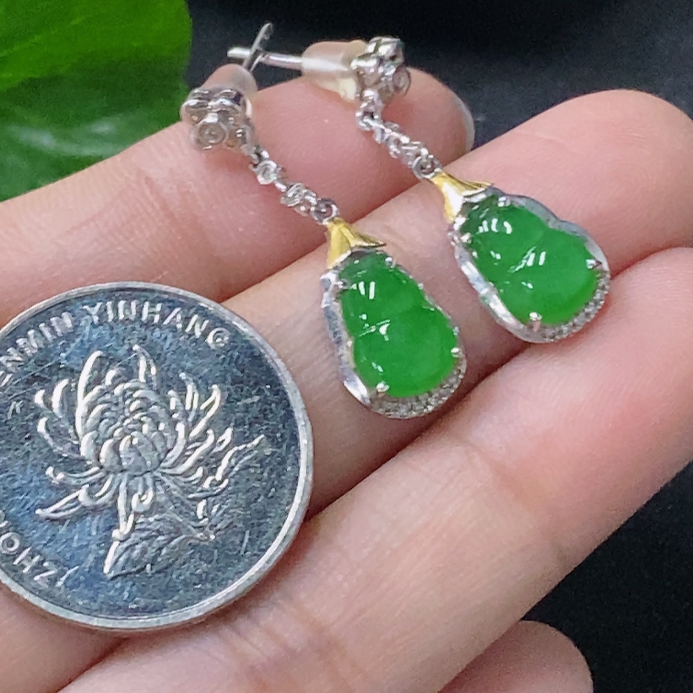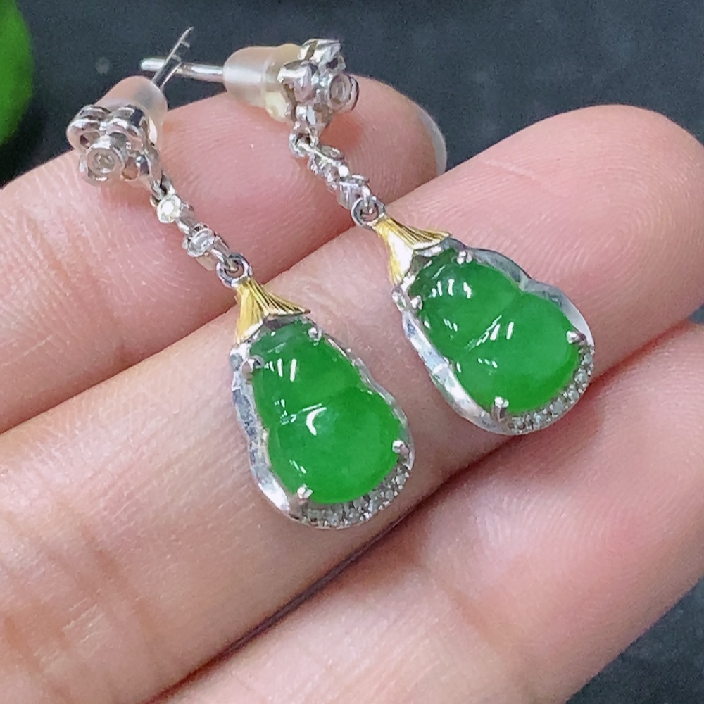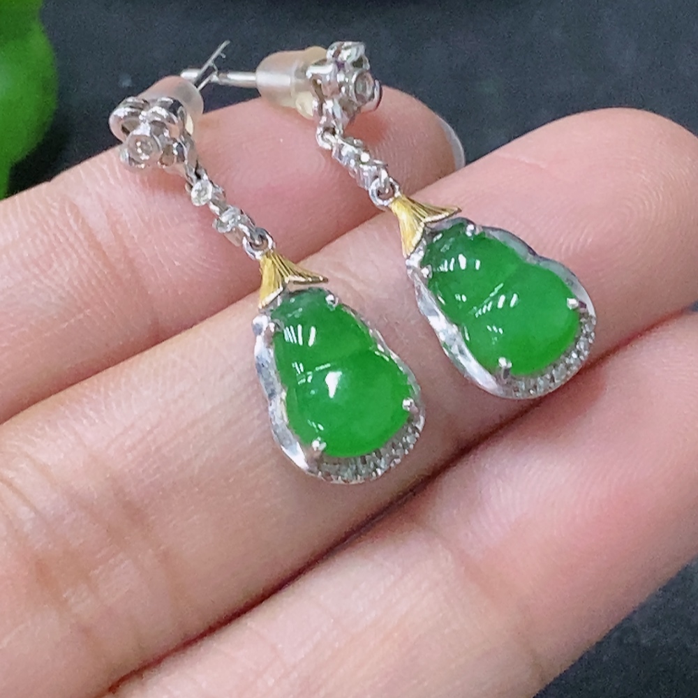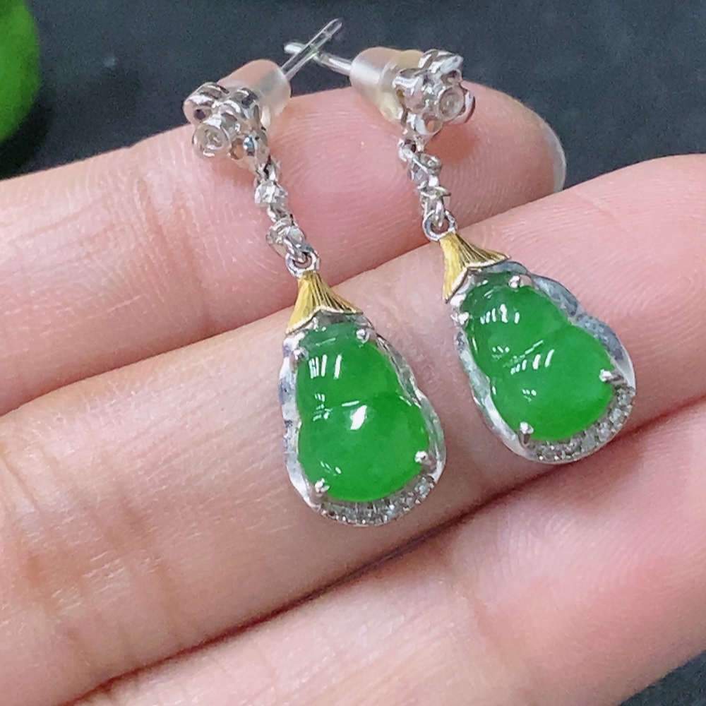 Jadeite Earrings with 18k Non-Diamond Setting, Total Weight Approx. 2.98g