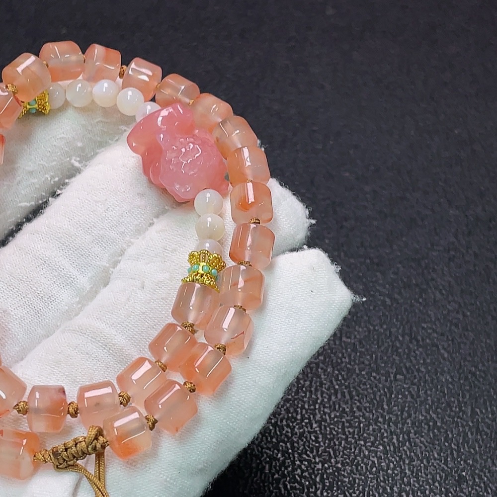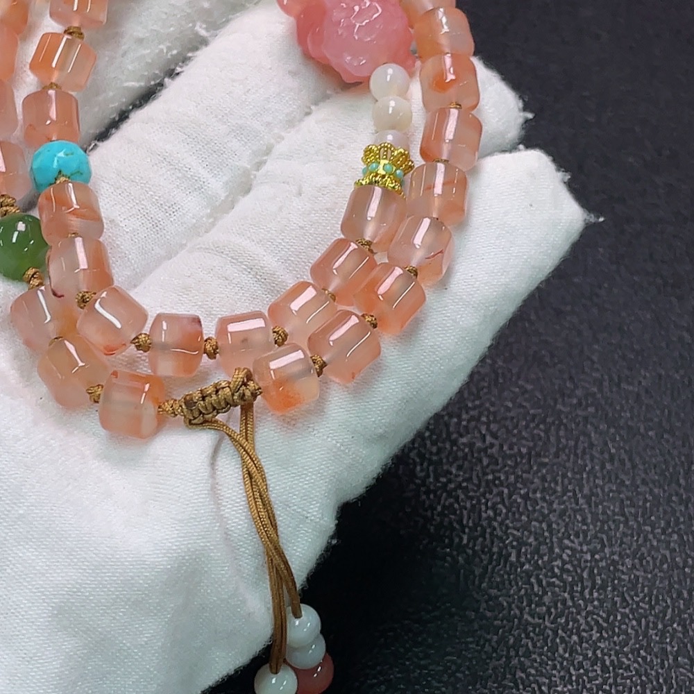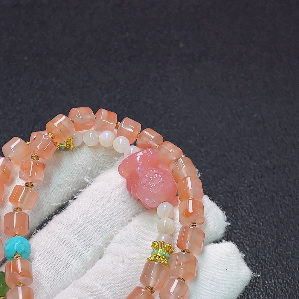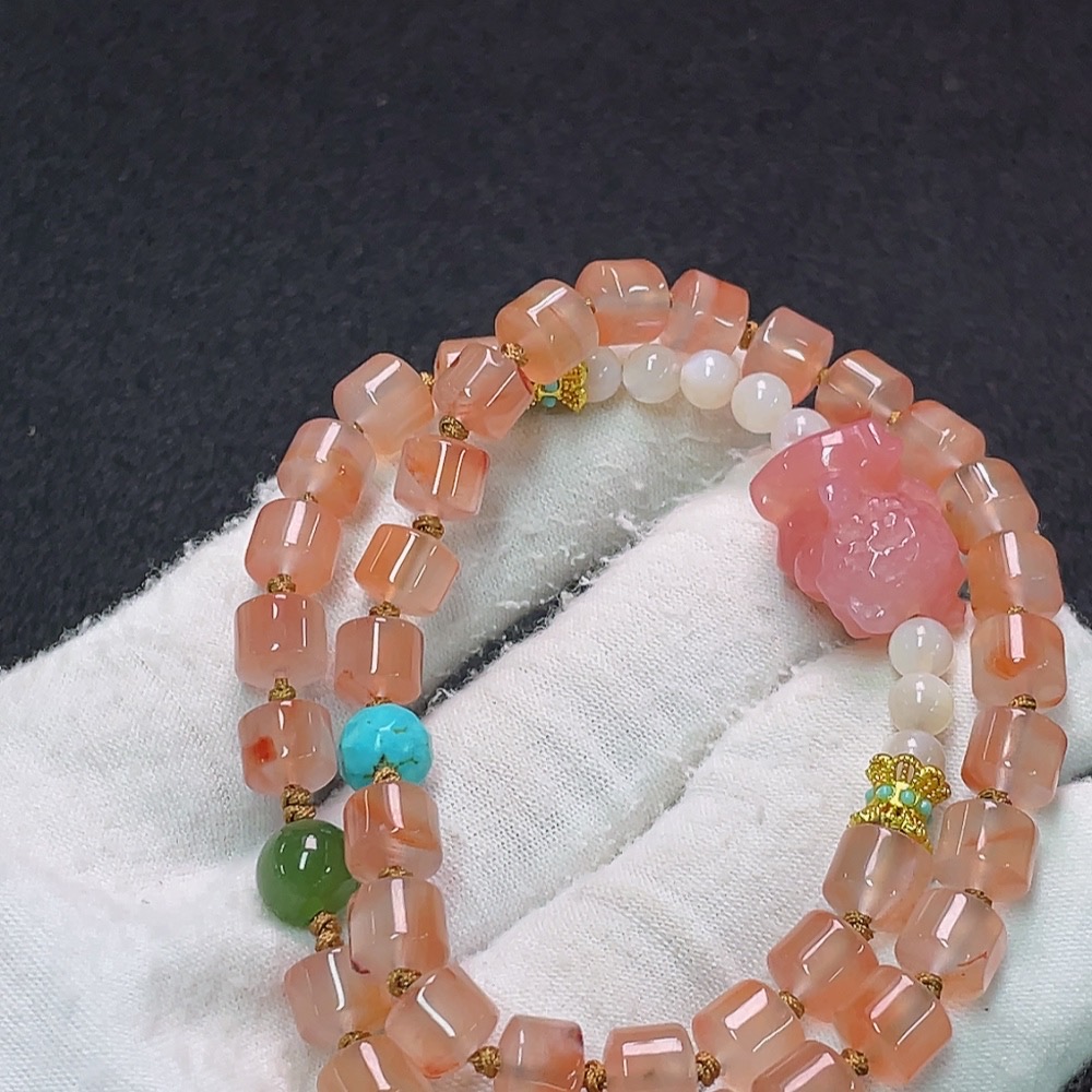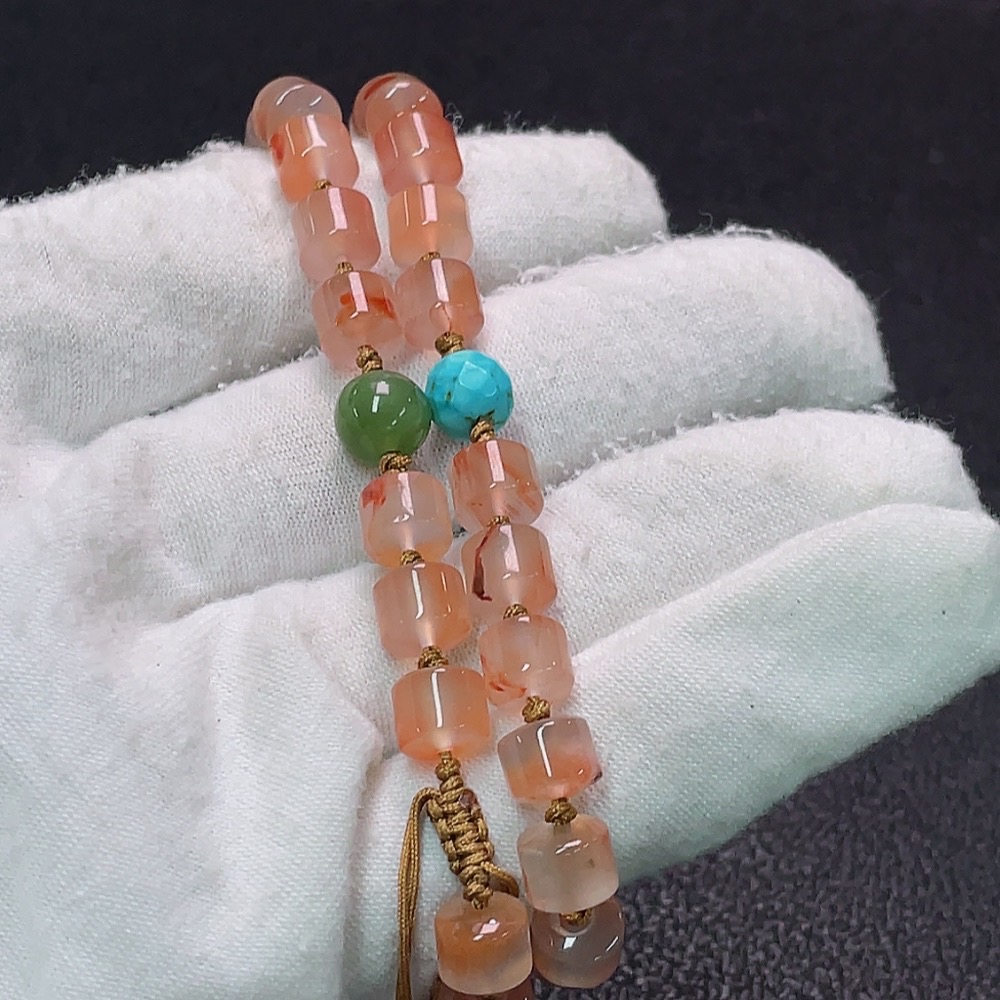 South Red Agate Beaded Necklace with Visible Organic Matter, Non-Natural Accent Stones, Non-Metal, Total Weight Approx. 30.6g, Bead Size ~7.2mm