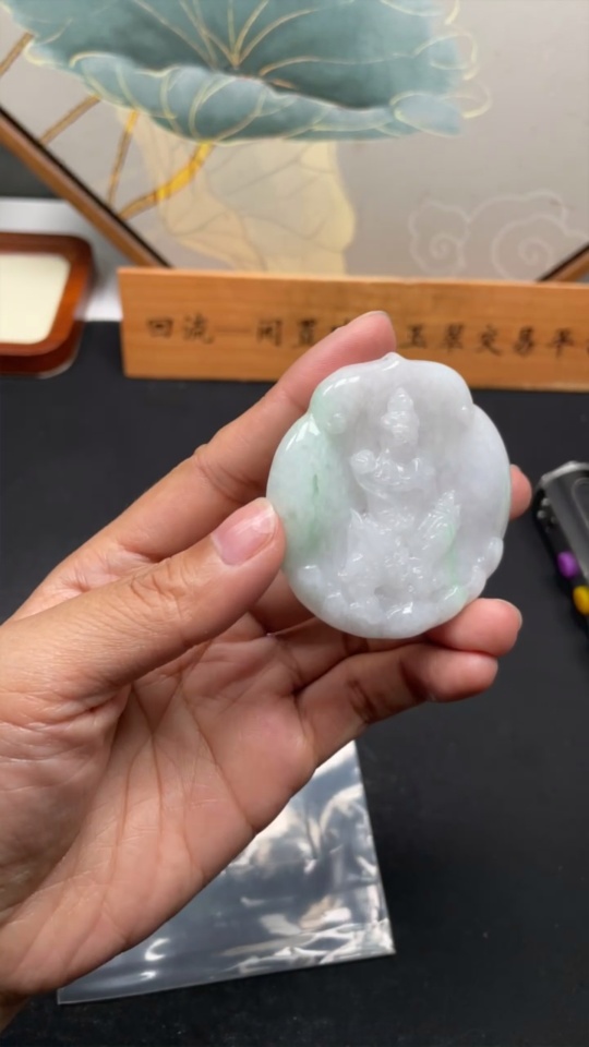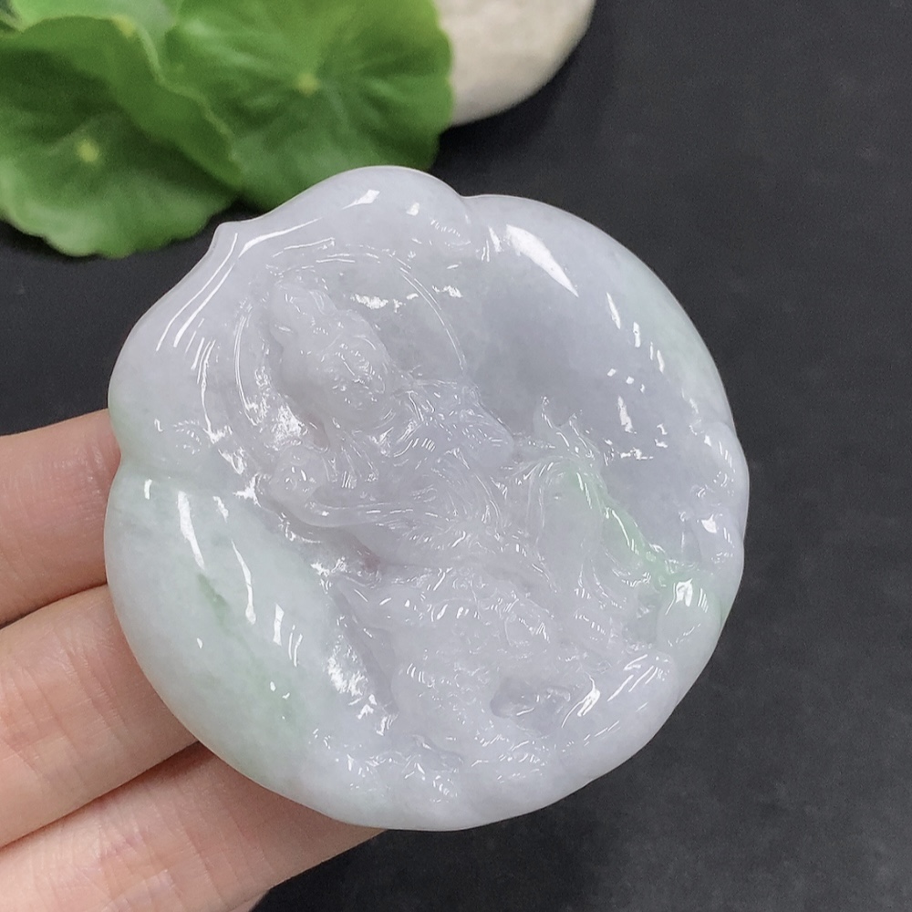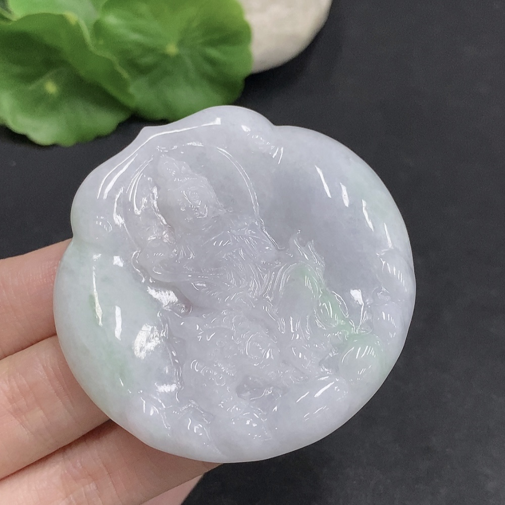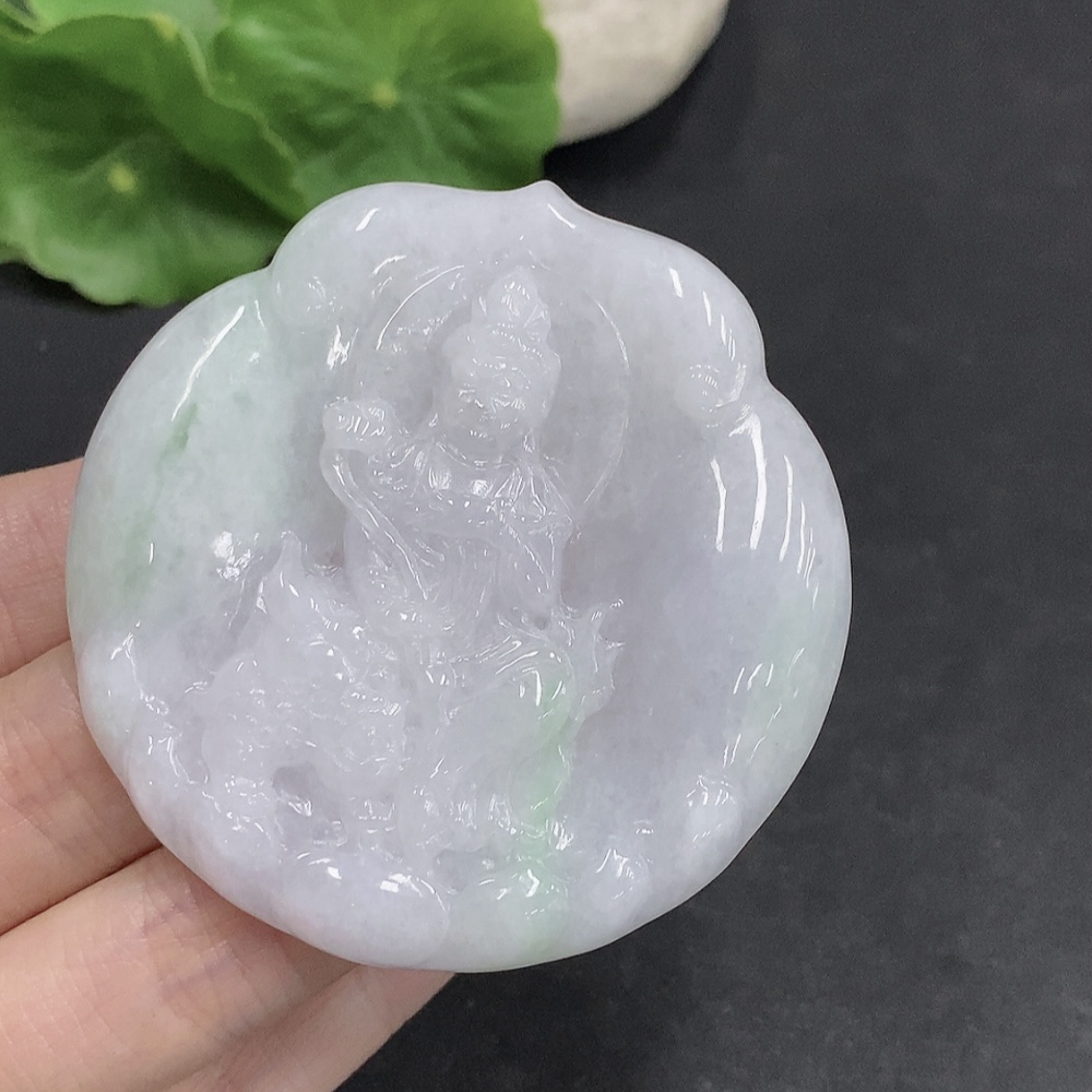 Jadeite Manjushri Bodhisattva Pendant, Total Weight About 38.4g