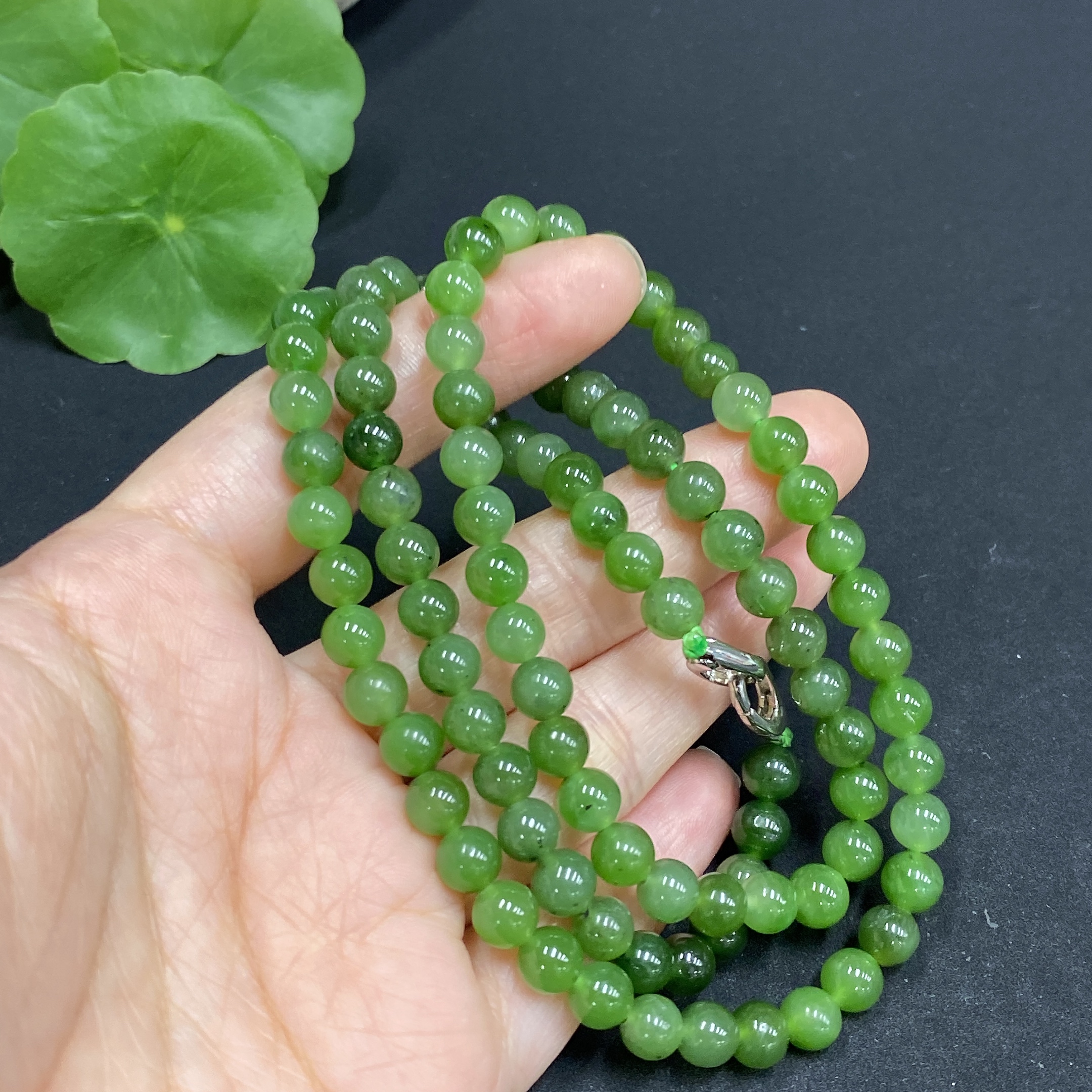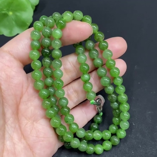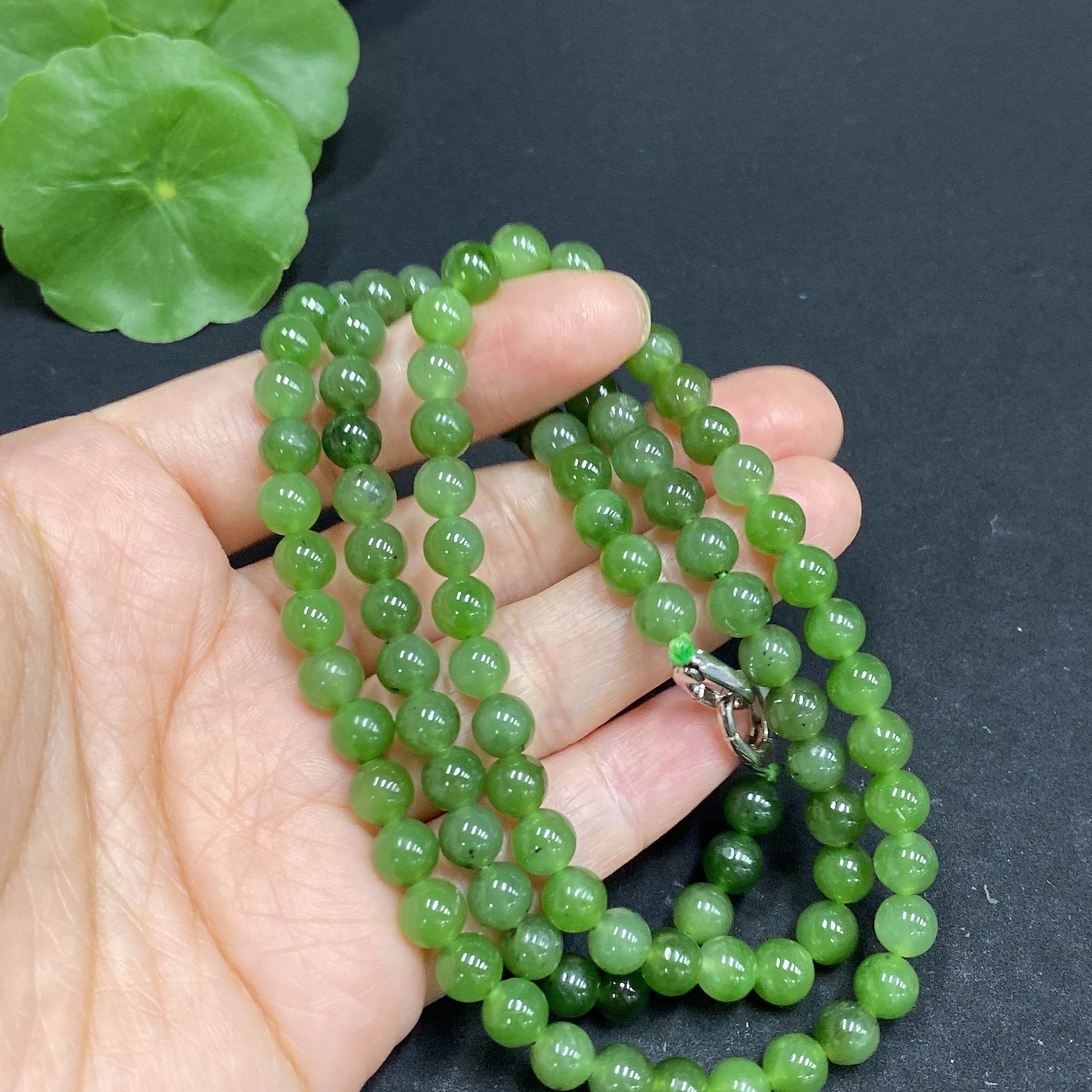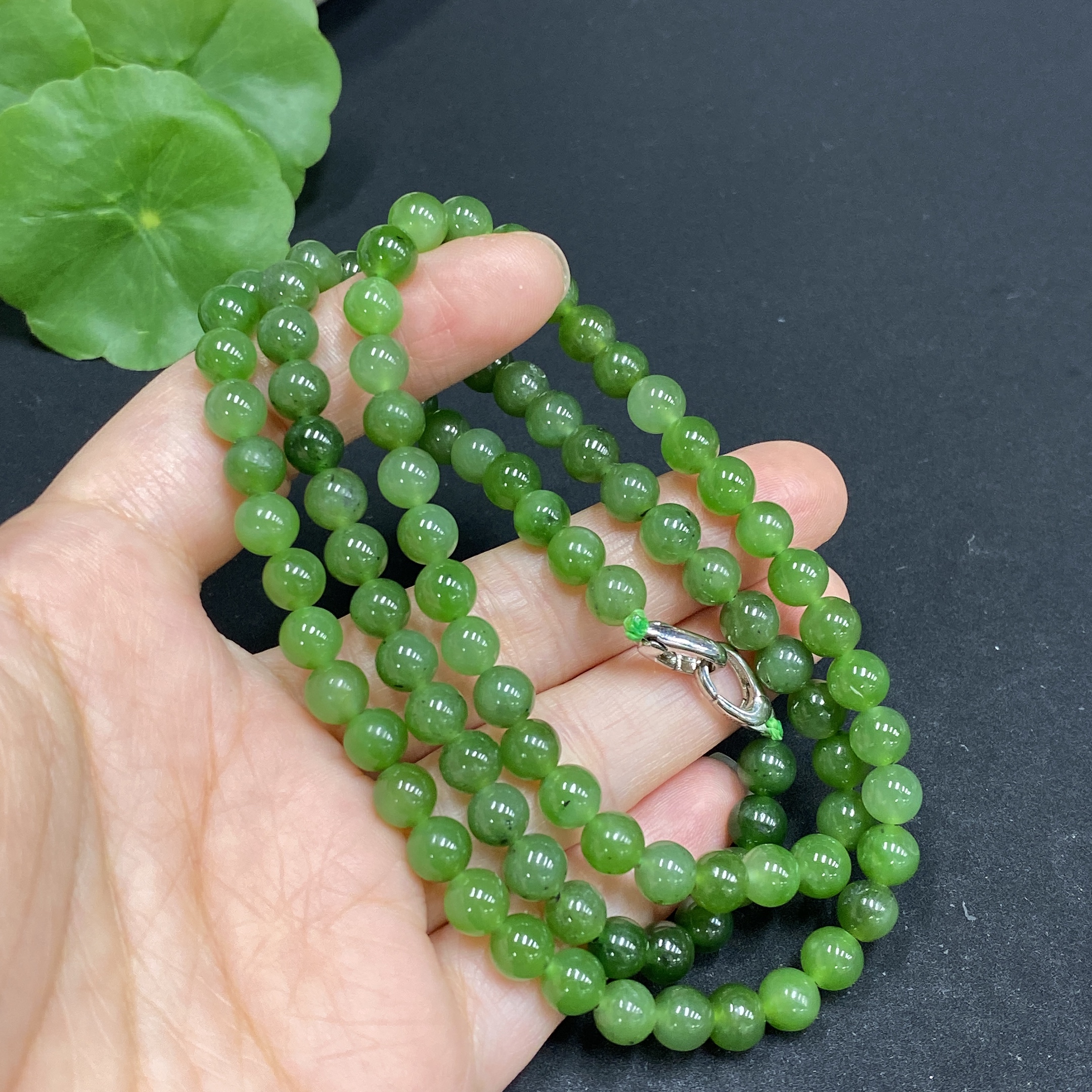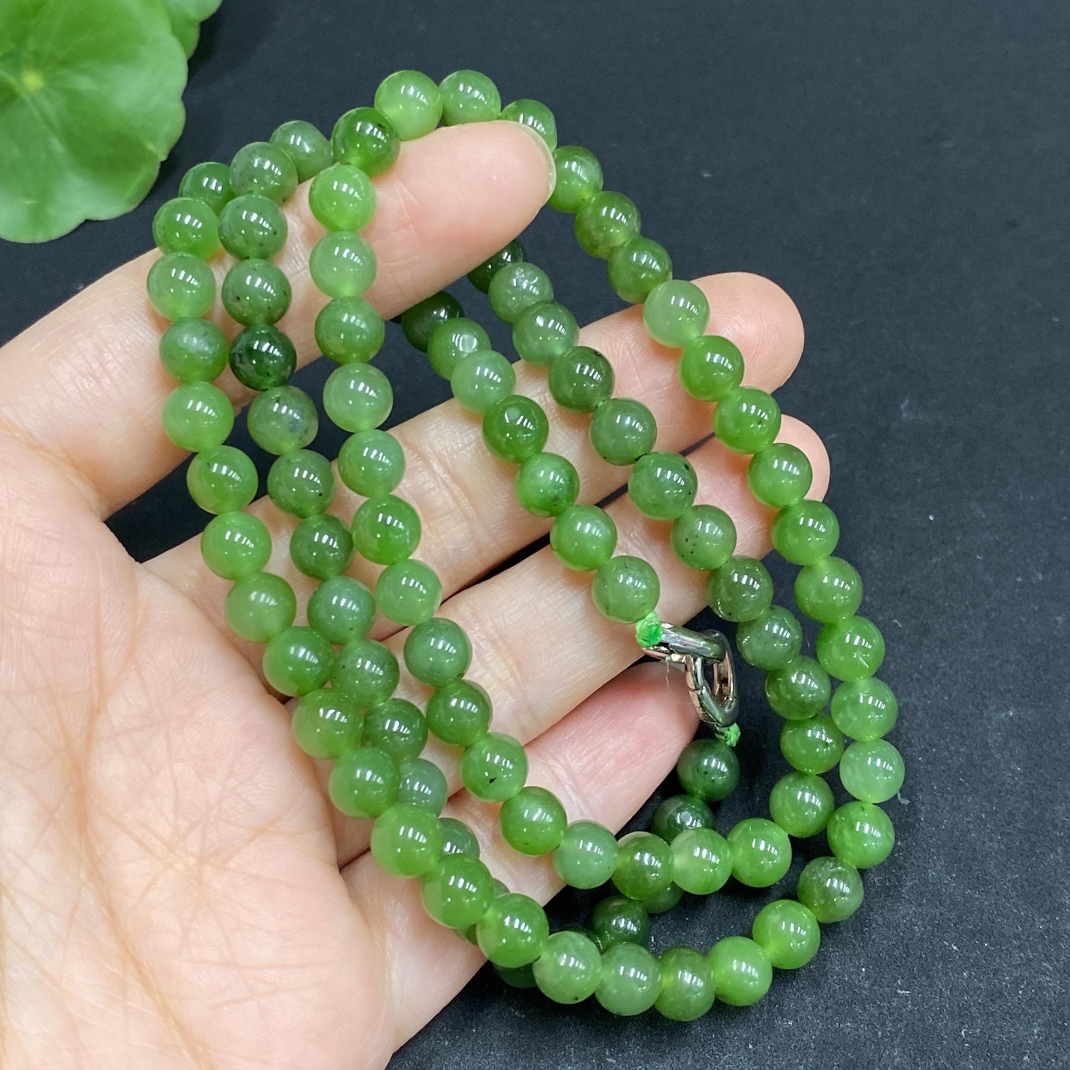 Hetian Jade Bead Necklace Approx. 5.9mm Non-Gold-Inlaid Total Weight Approx. 35.1g
