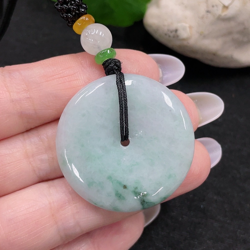 Jadeite Peace Knot Pendant Total Weight Approx. 16.3g (including rope weight) (Matching beads non-grade A)
