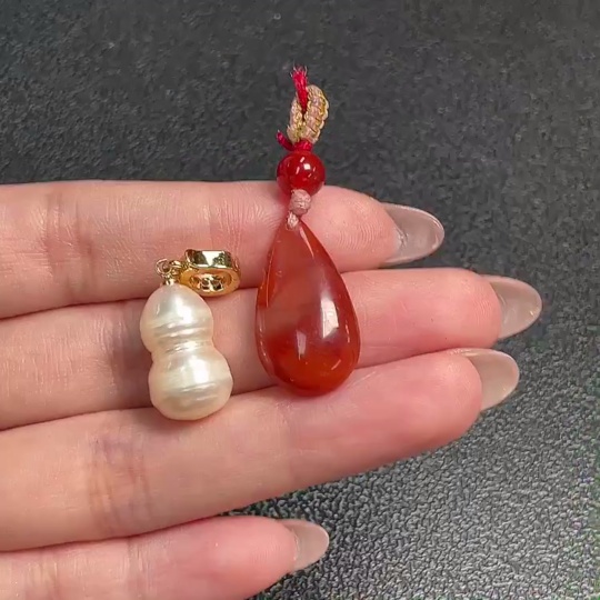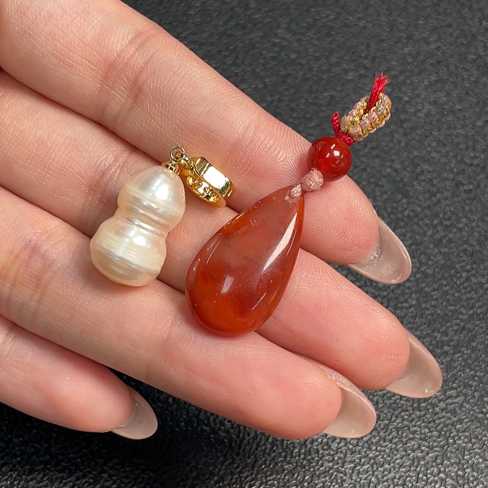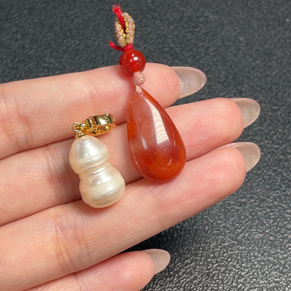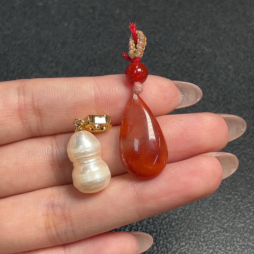 Pearl + Red Agate Pendant Non-Gold, Stones May Be Non-Natural, Total Weight Approx. 6.10g, Sell as a Lot