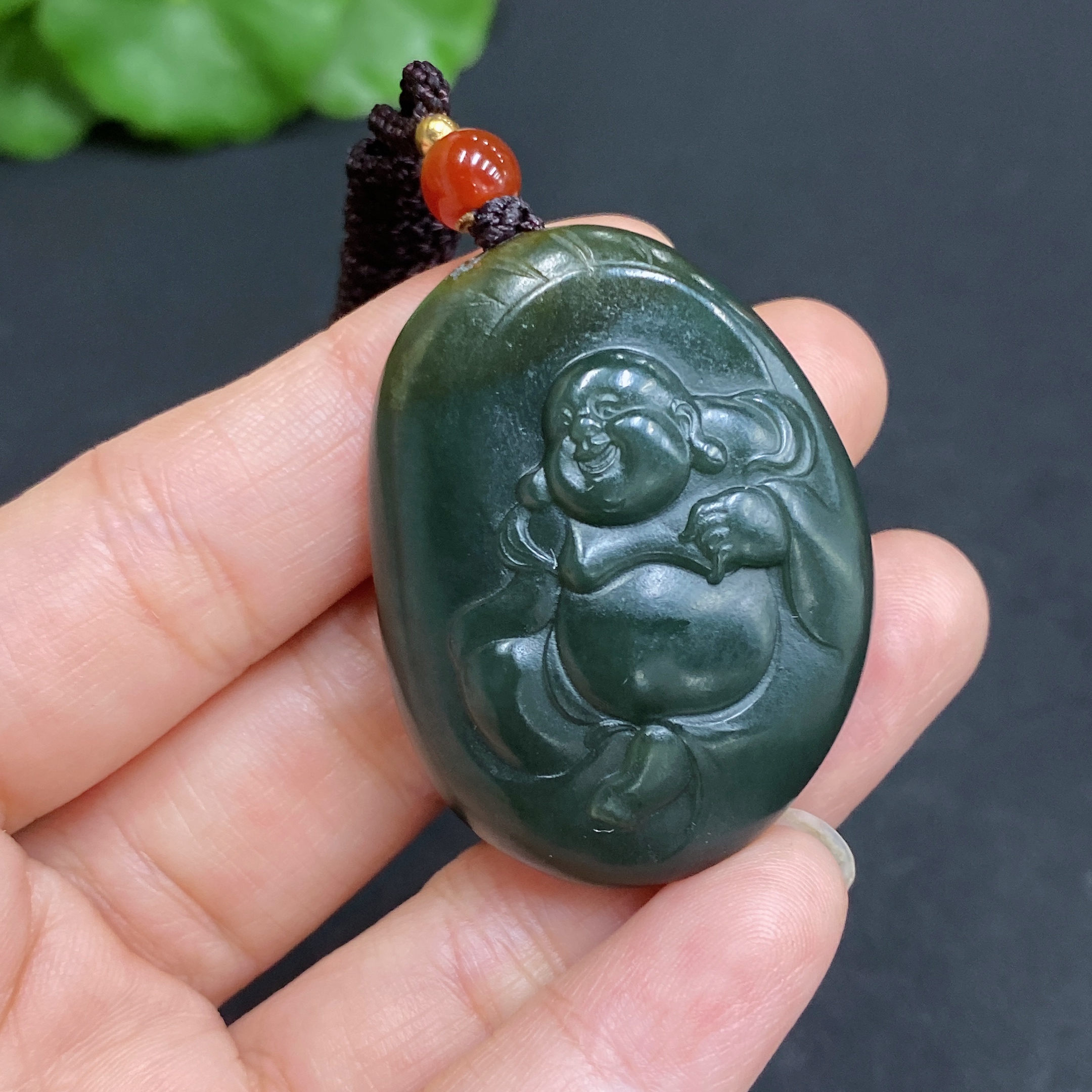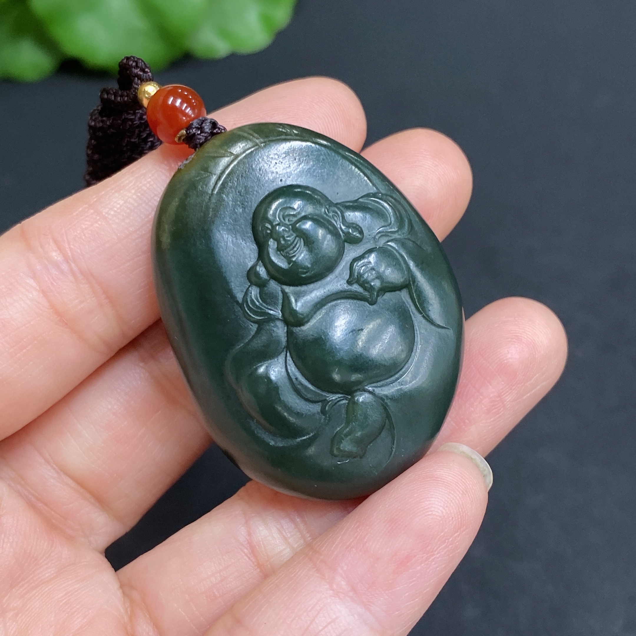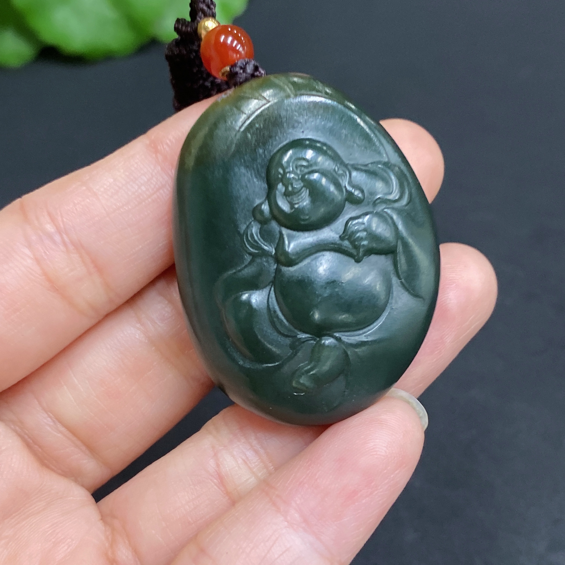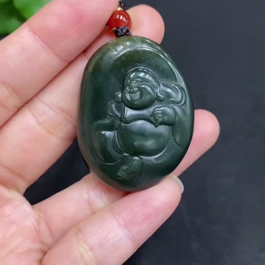 Hetian Jade Pendant, Buddha, Total Weight (with rope): 25.8g