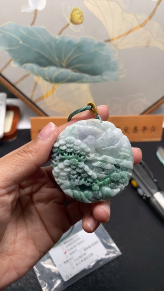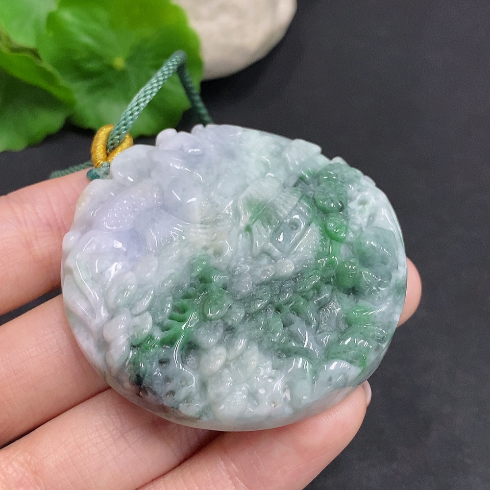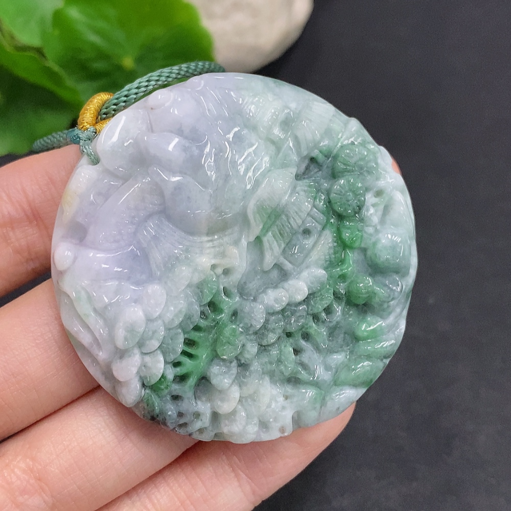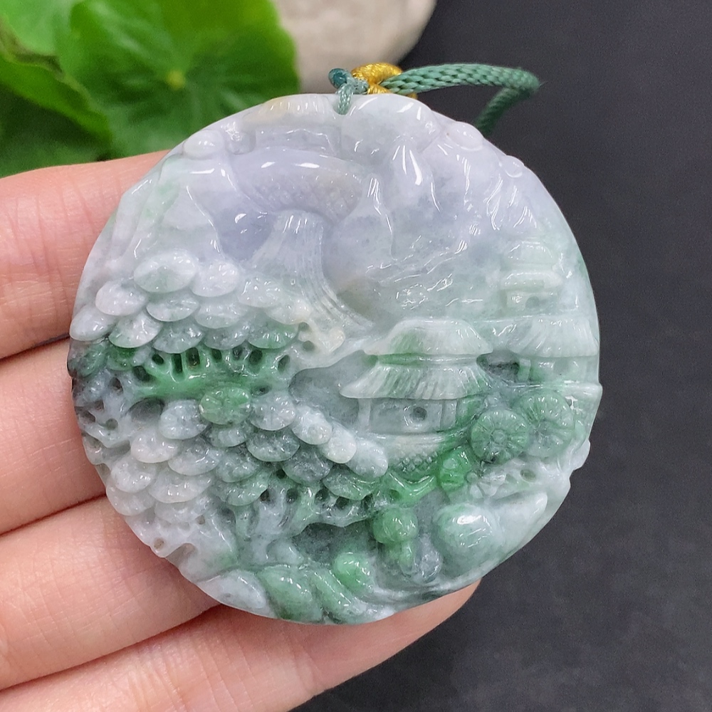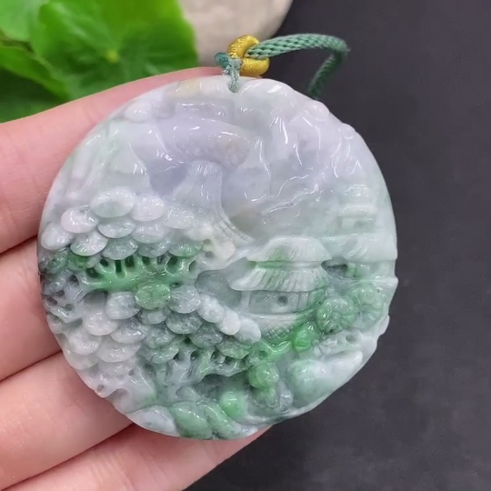 Jadeite Landscape Pendant with Cord Total Weight Approx. 60.4g (Including Other Mineral Components)