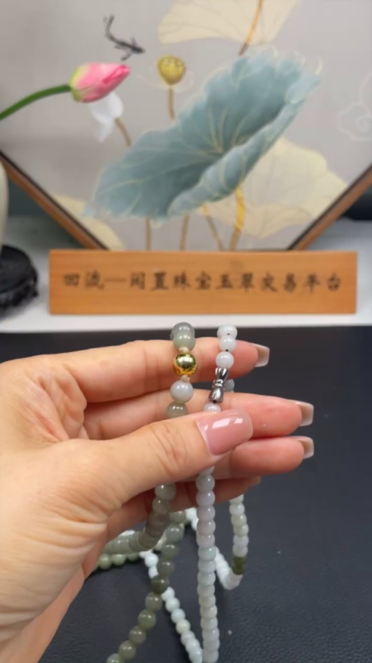Jadeite Beads Sell as a Lot Non-Gold Inlaid