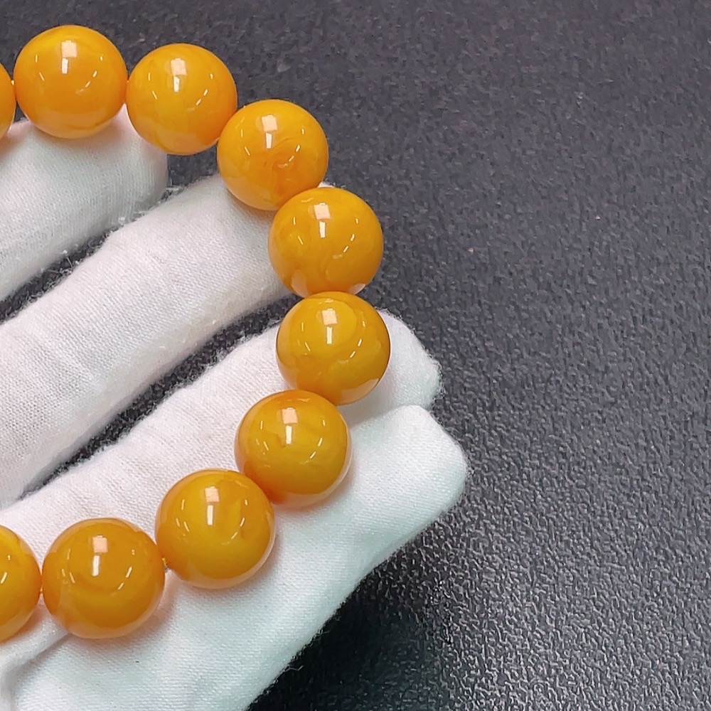 Amber Beeswax Bracelet, Color Origin Undetermined, Total Weight Approximately 27.1g, Size About 14.7mm