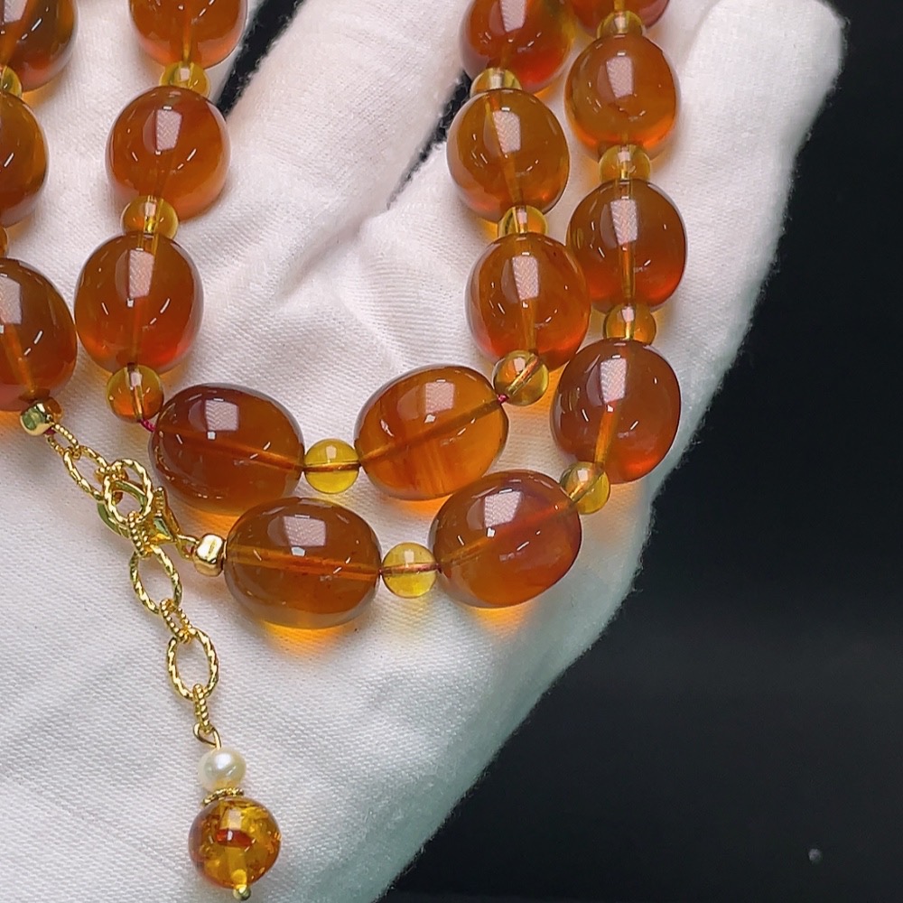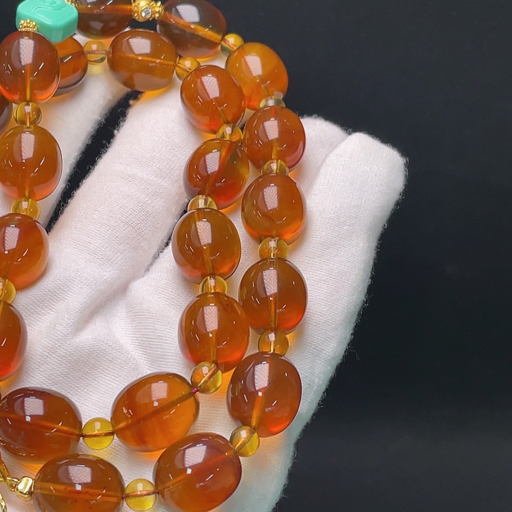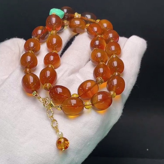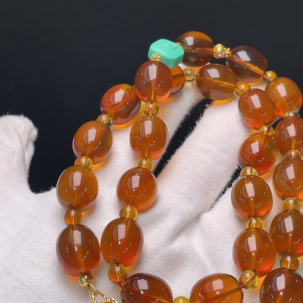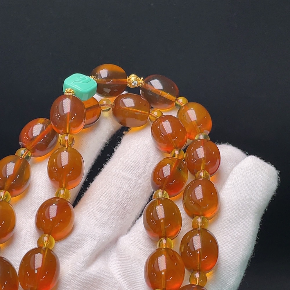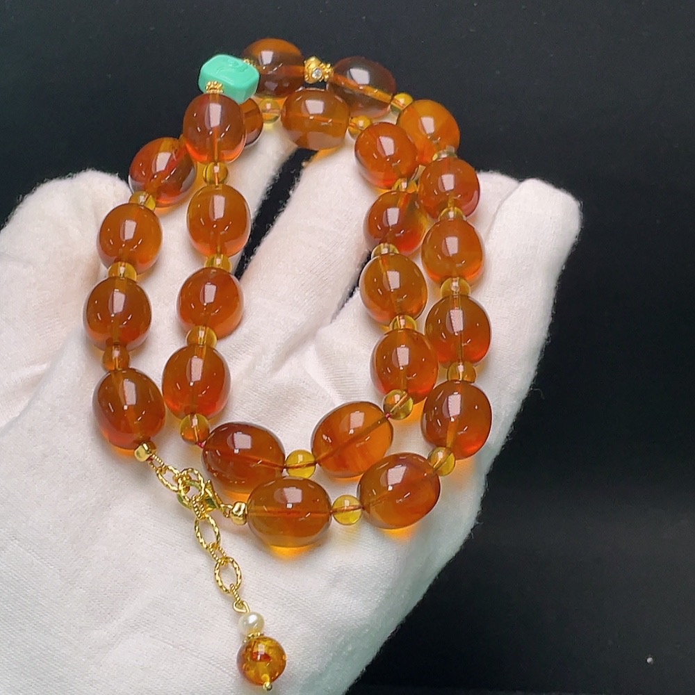 Amber Beaded Necklace with Non-Natural/Non-Metal Accents, Approx. 34.5g Total Weight, 12mm Beads