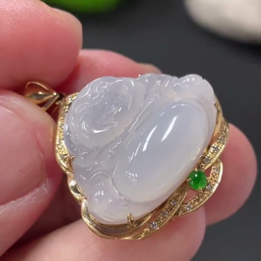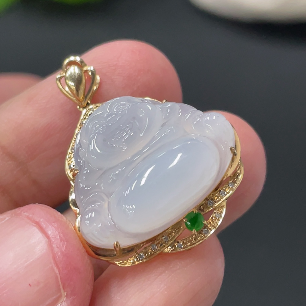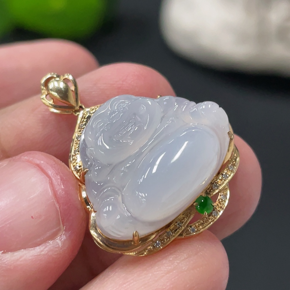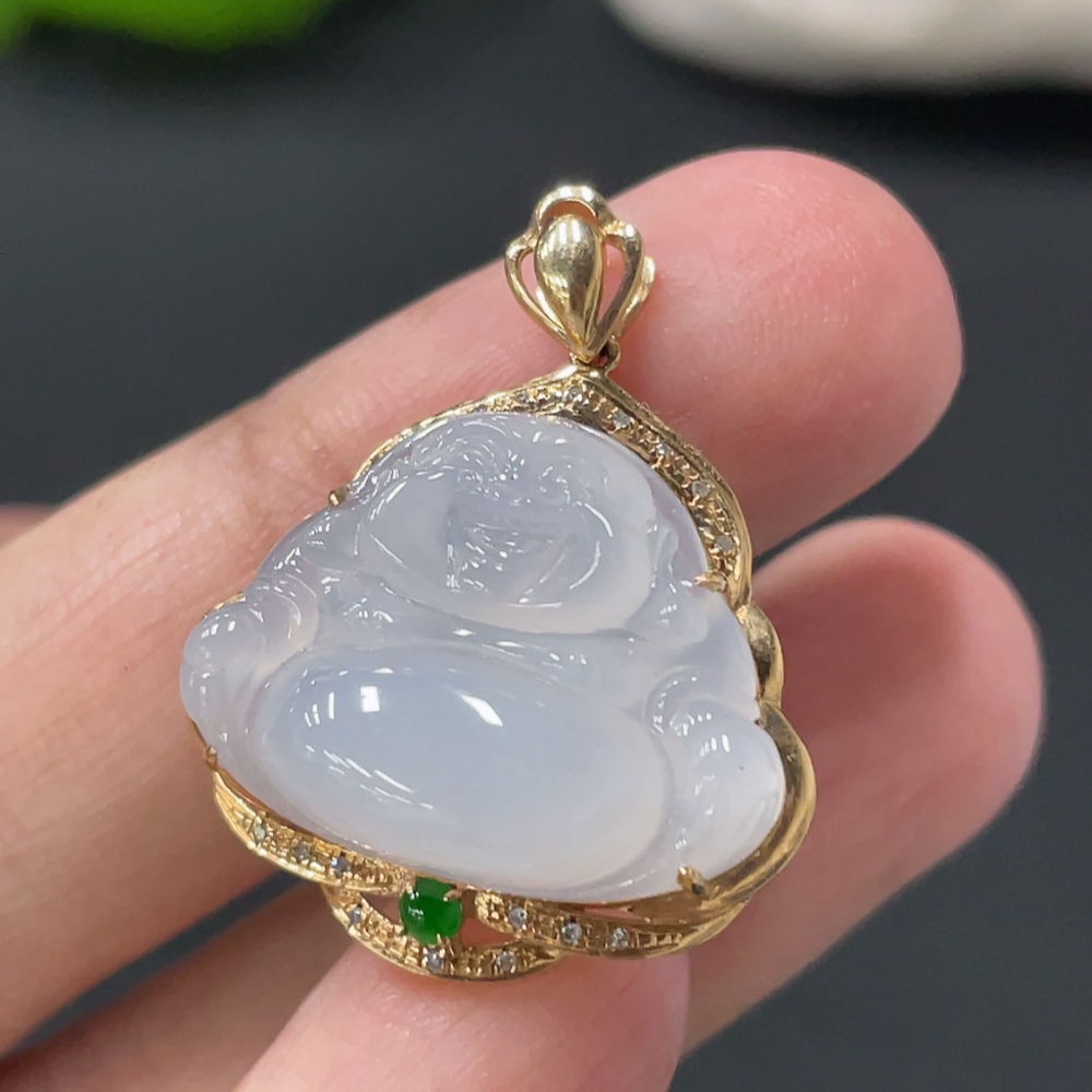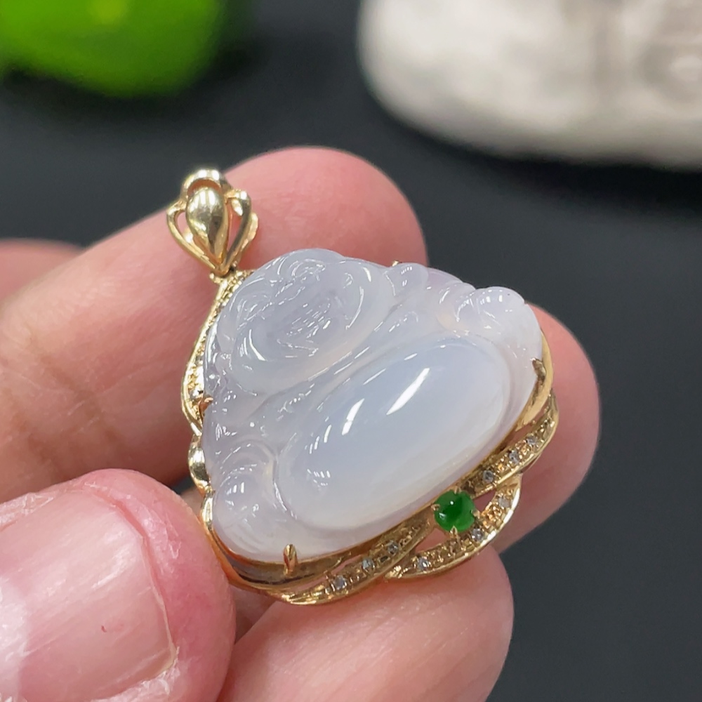 Jadeite Buddha Pendant with 18K Gold and Diamond Accents, Total Weight Approx. 3.6g