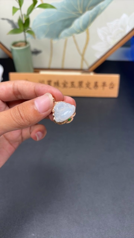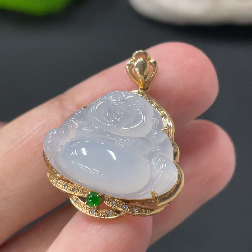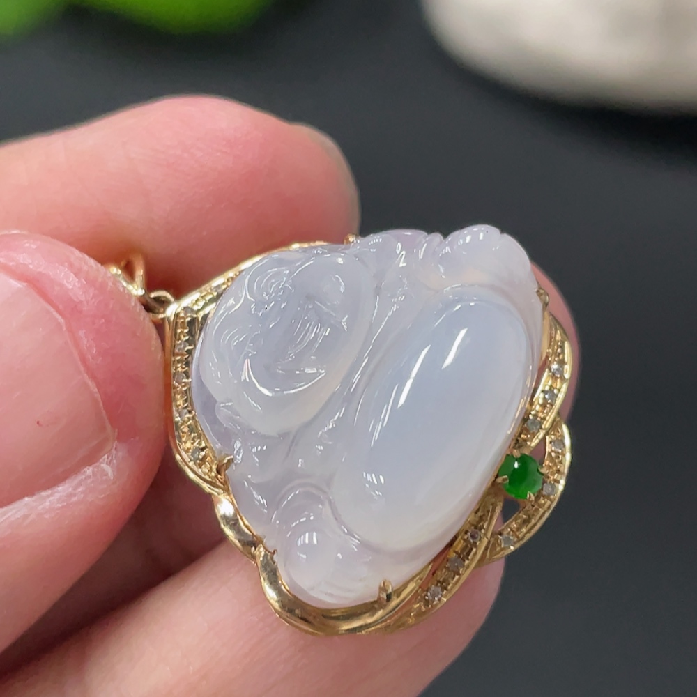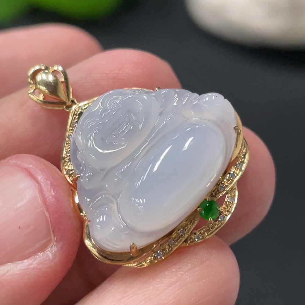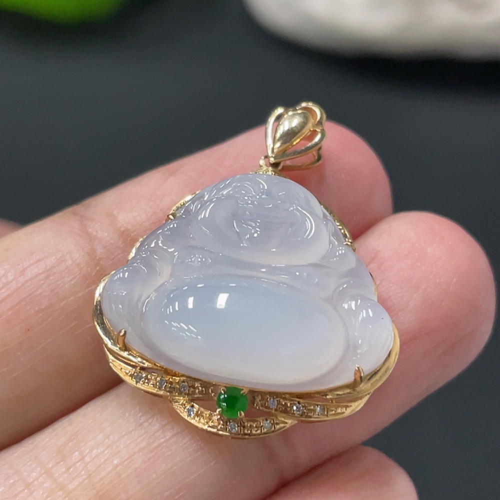 Jadeite Buddha Pendant with 18K Gold and Diamond Accents, Total Weight Approx. 3.6g