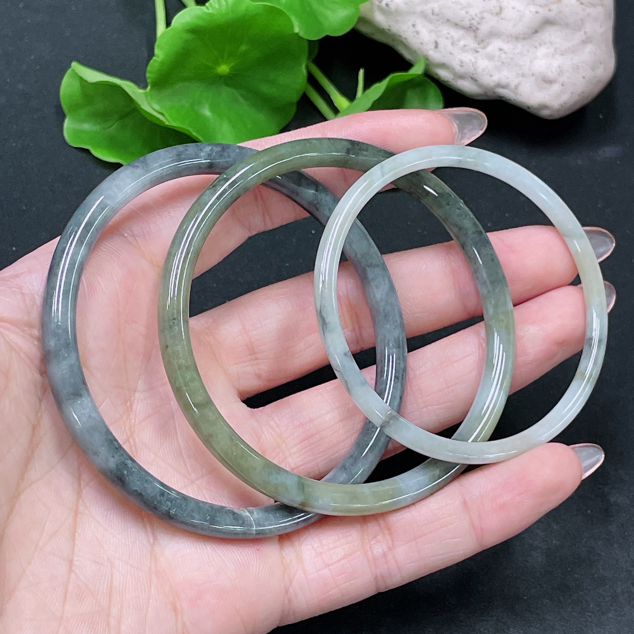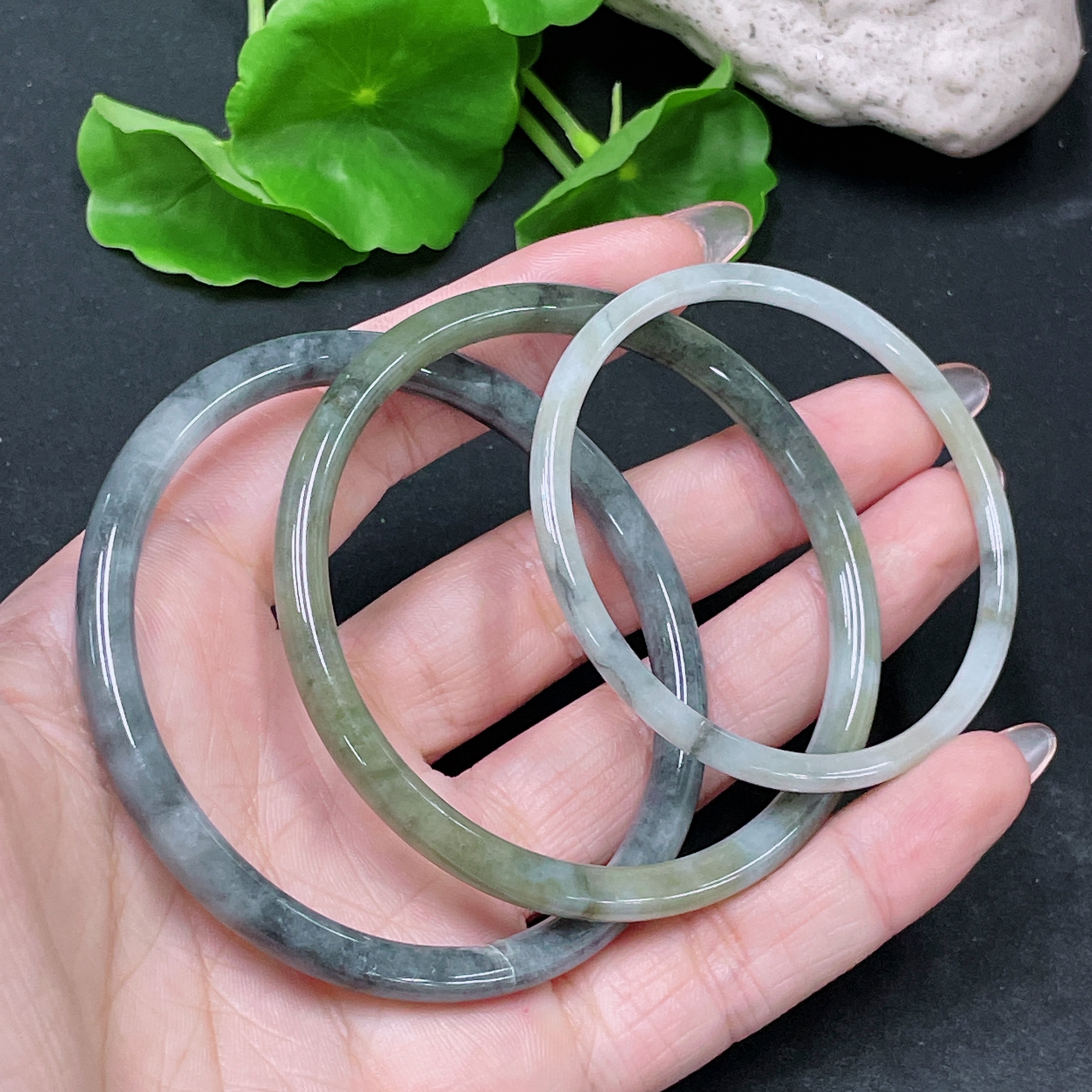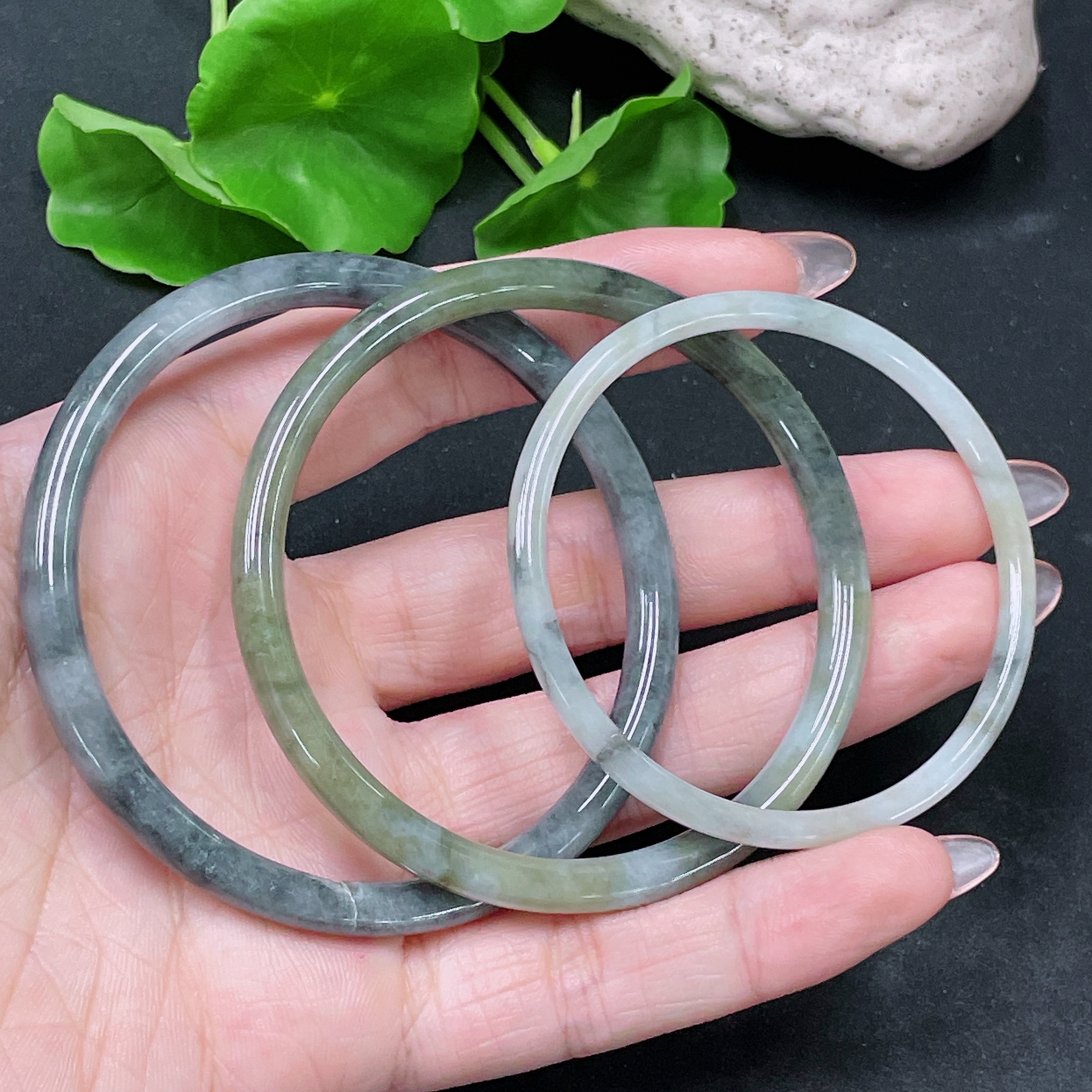 Jadeite Round Bangle Sell as a Lot Size 50.7/57.4/59 with Crack