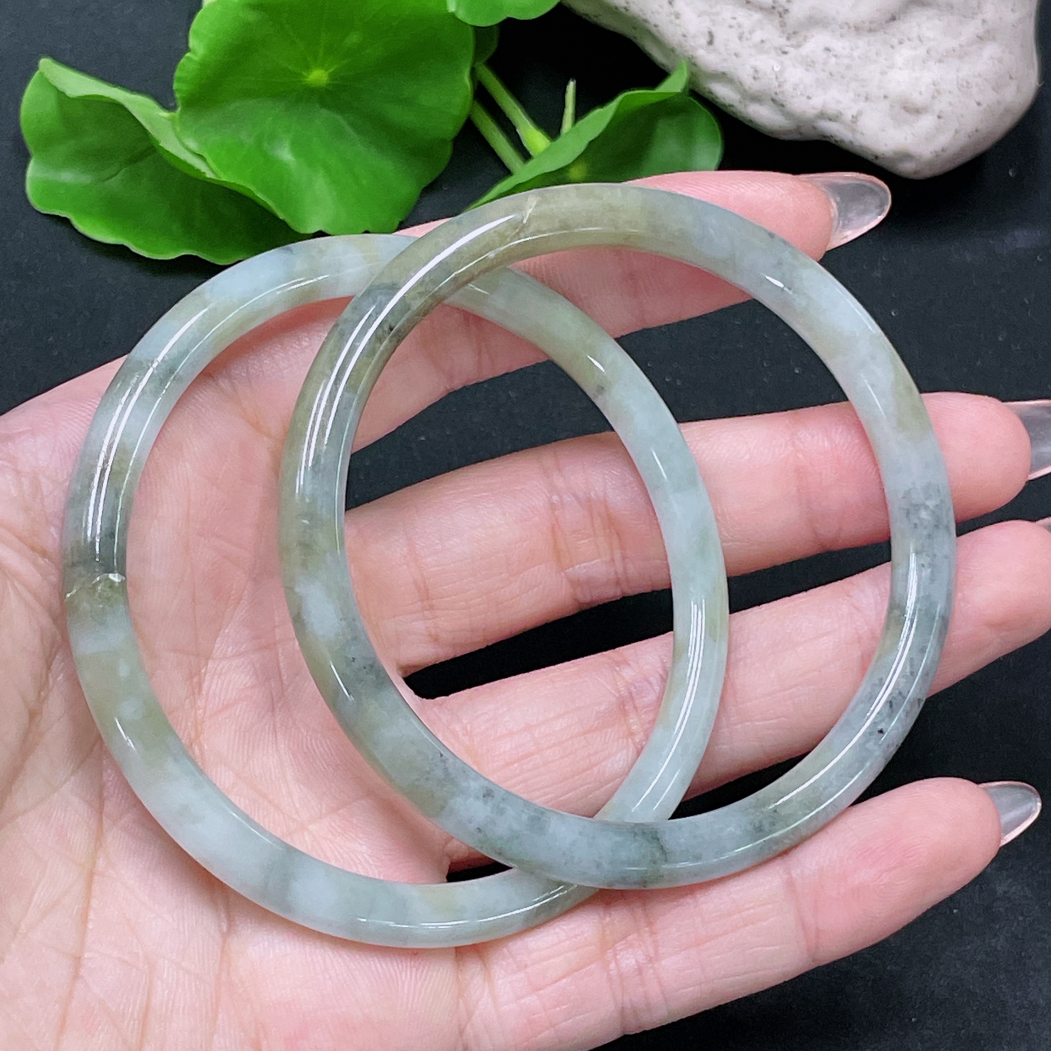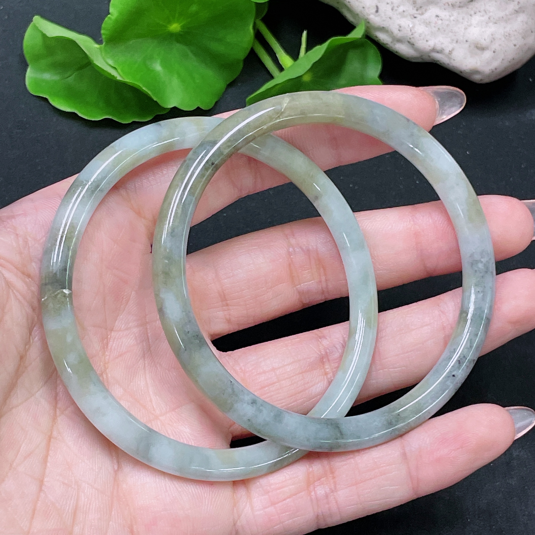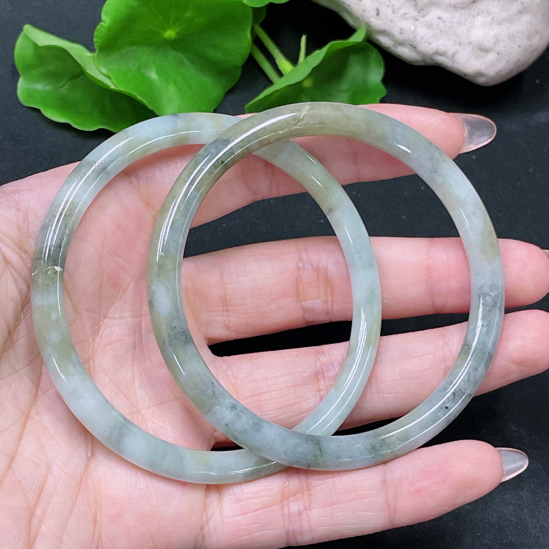 Trezaar - Jadeite Round Bangle Sell as a Lot Size 56.8/57.9 with Crack