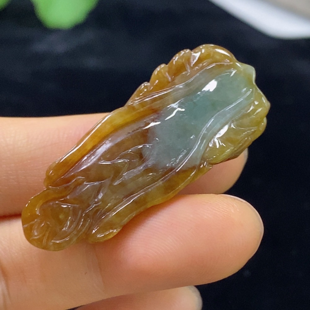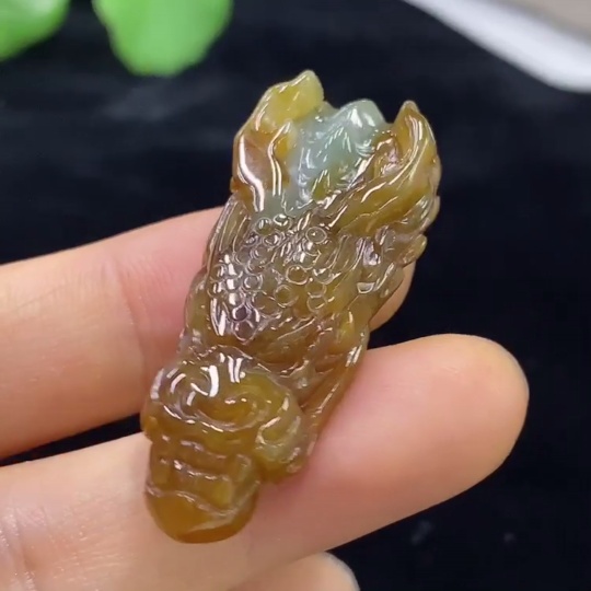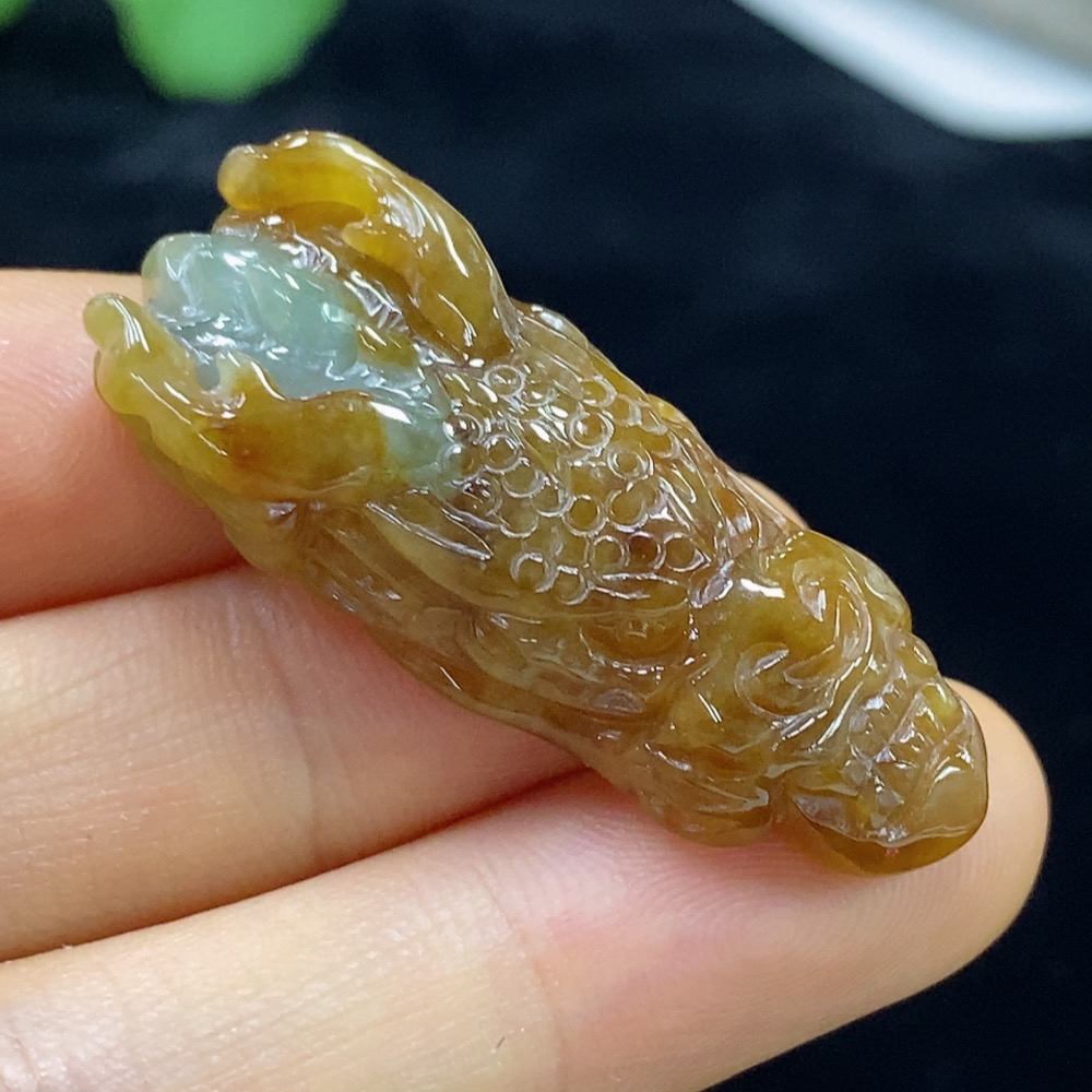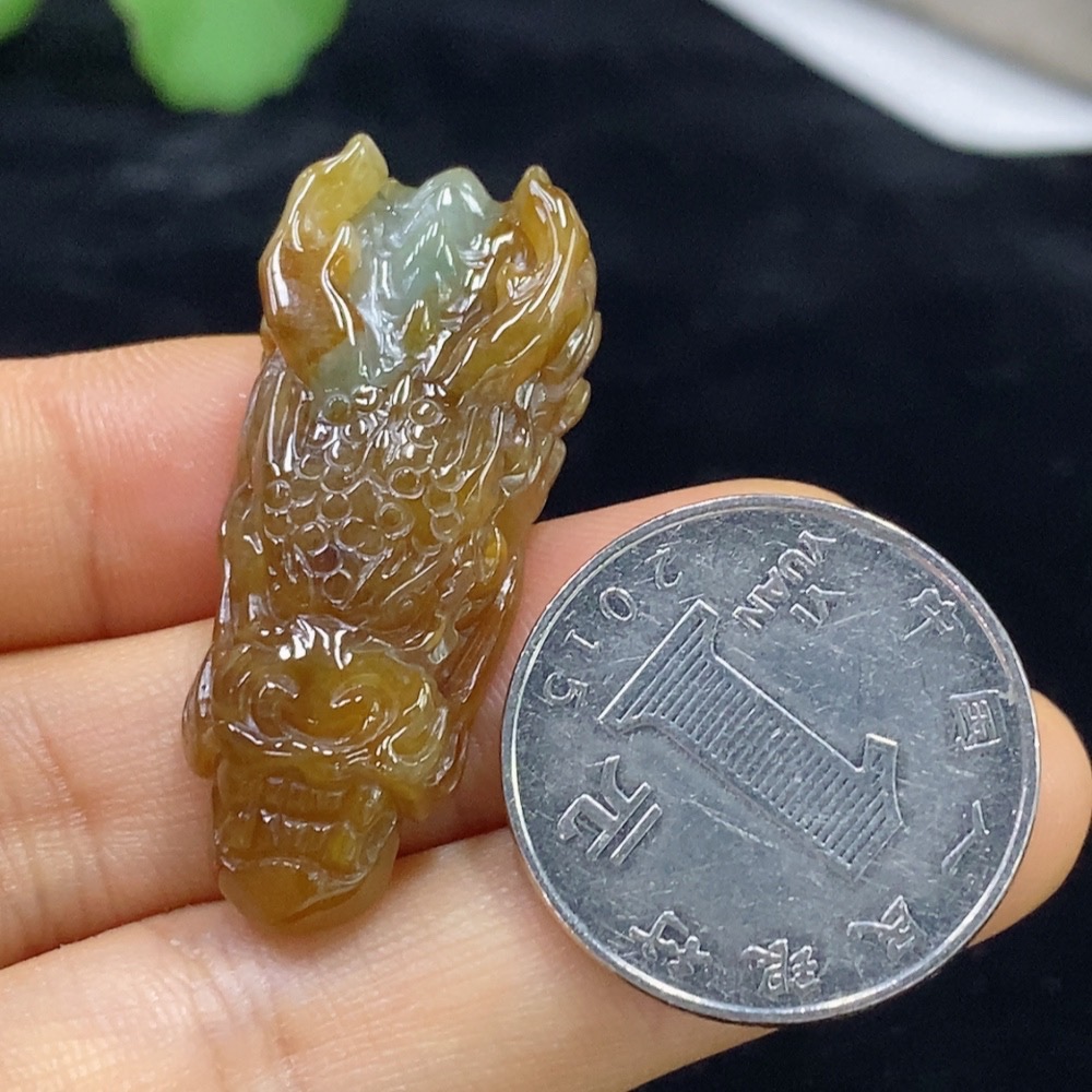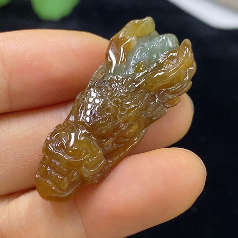 Jadeite Dragon Pendant Total Weight: Approx.9.4g Yellow Color Origin Undetermined