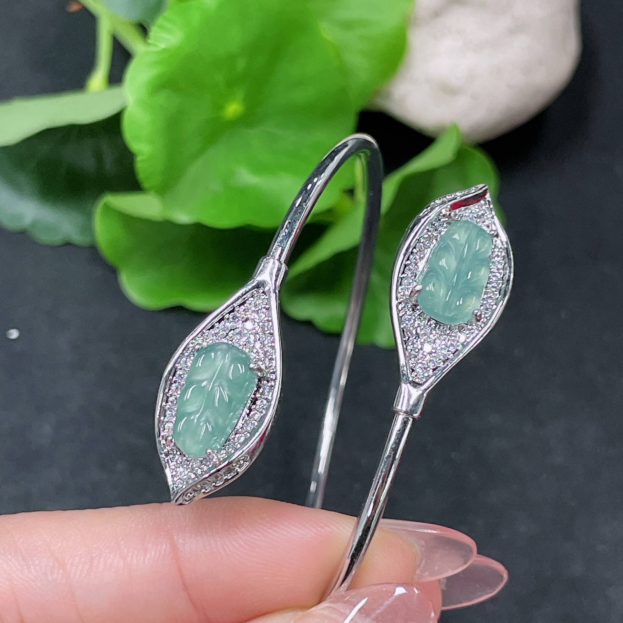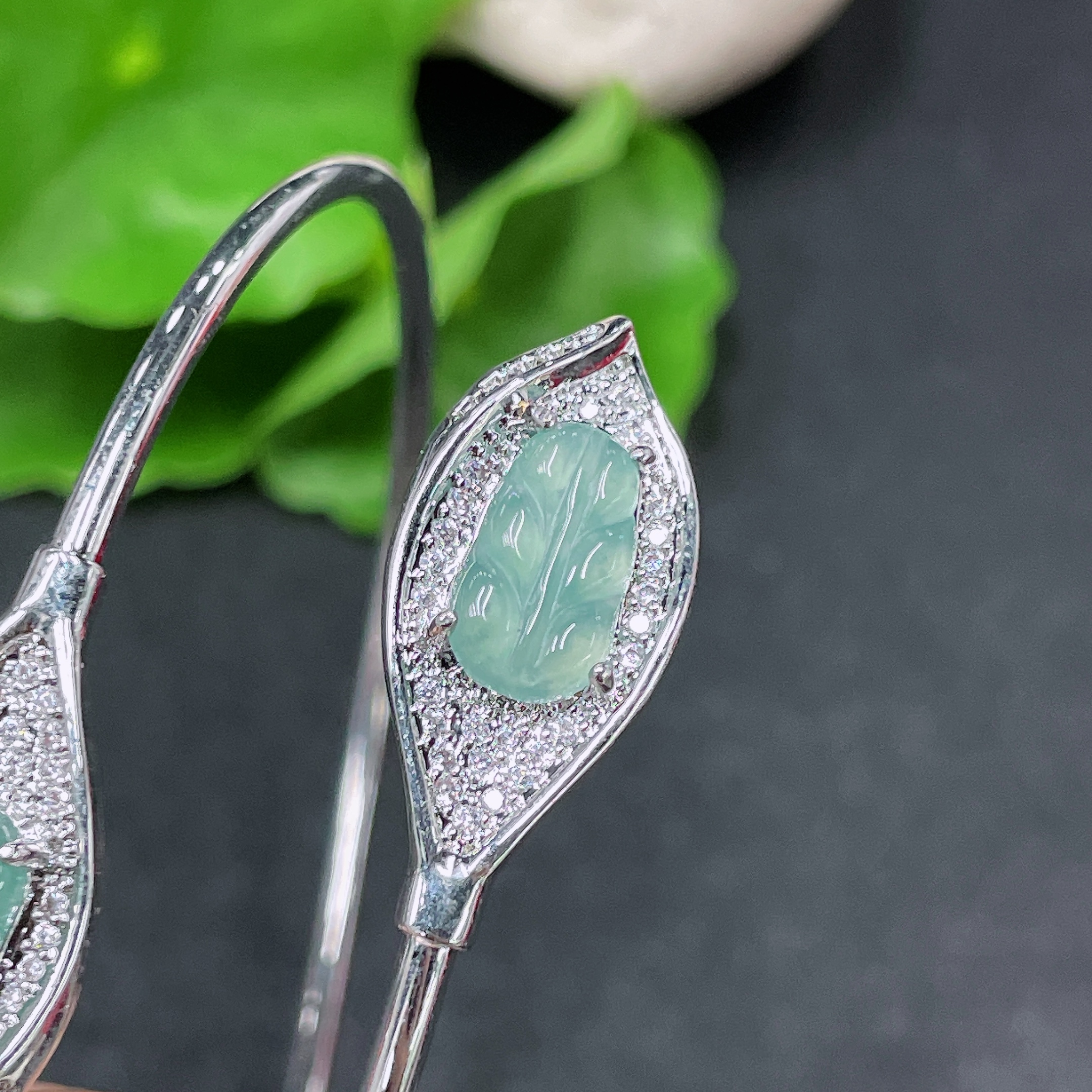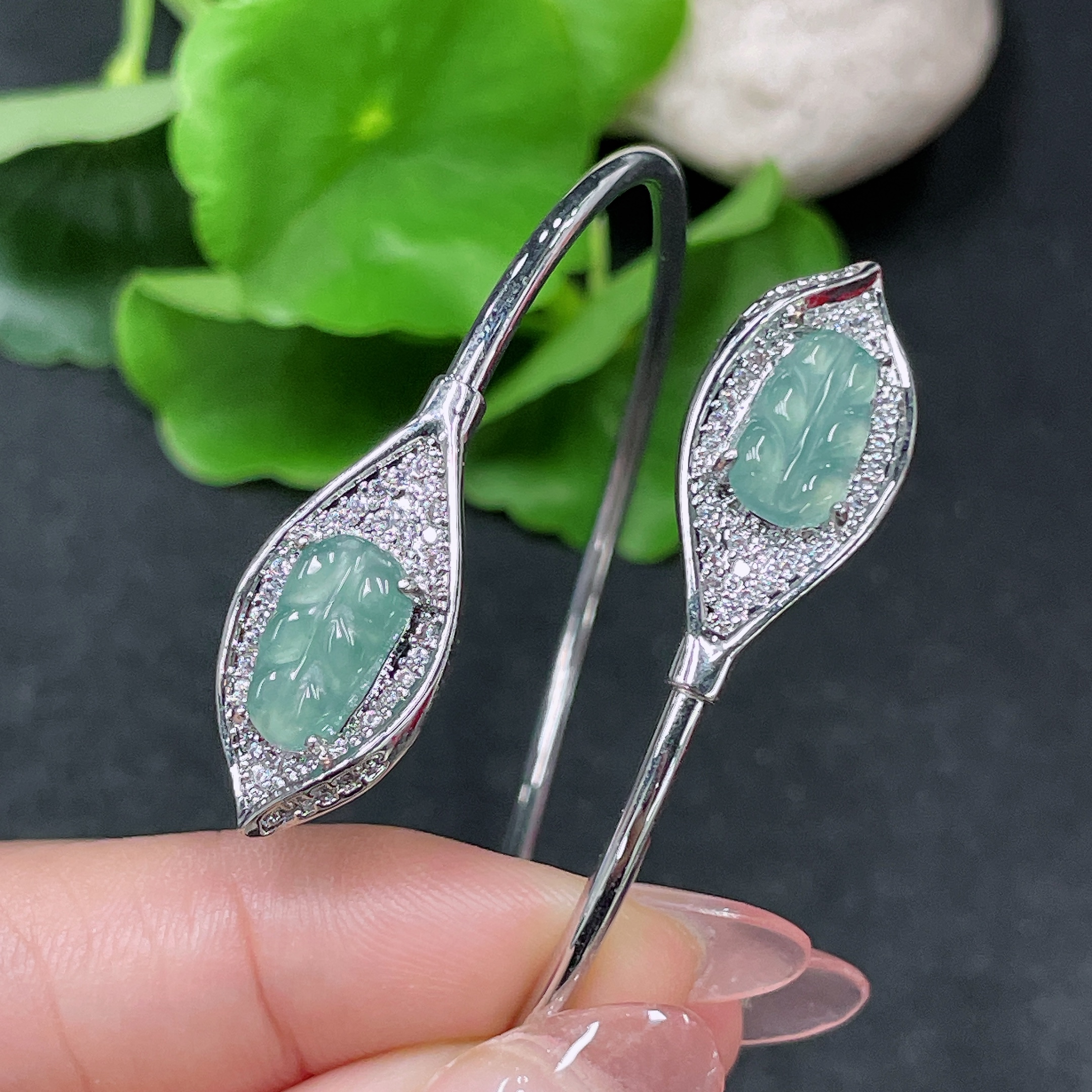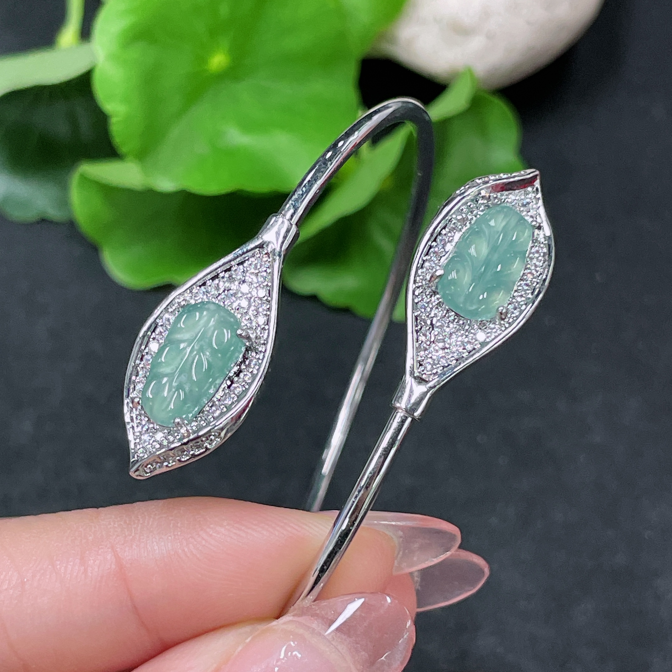 Jadeite Leaf Inlaid Bangle Non-Gold Inlaid Adjustable Size Total Weight Approx. 8.5g