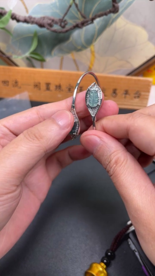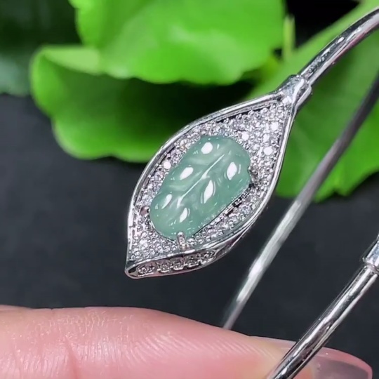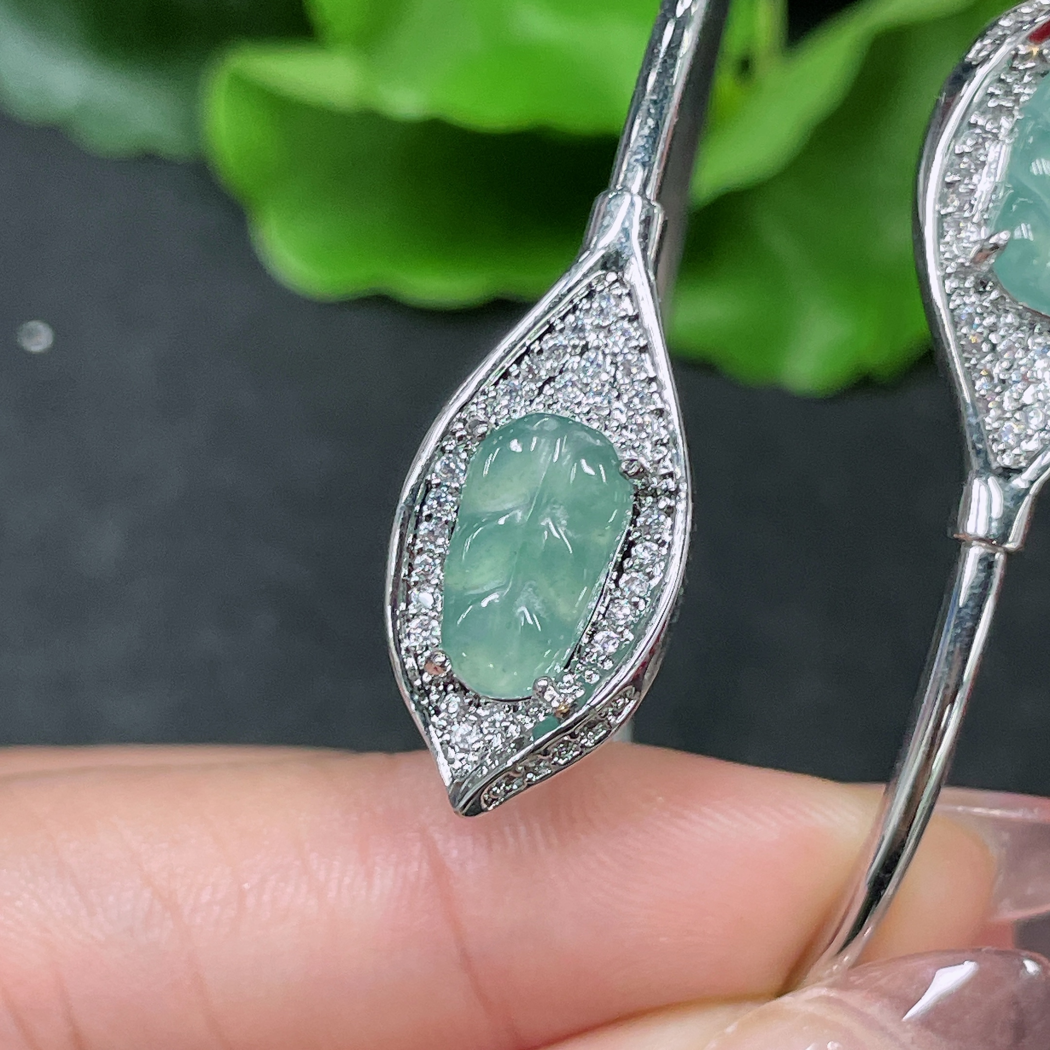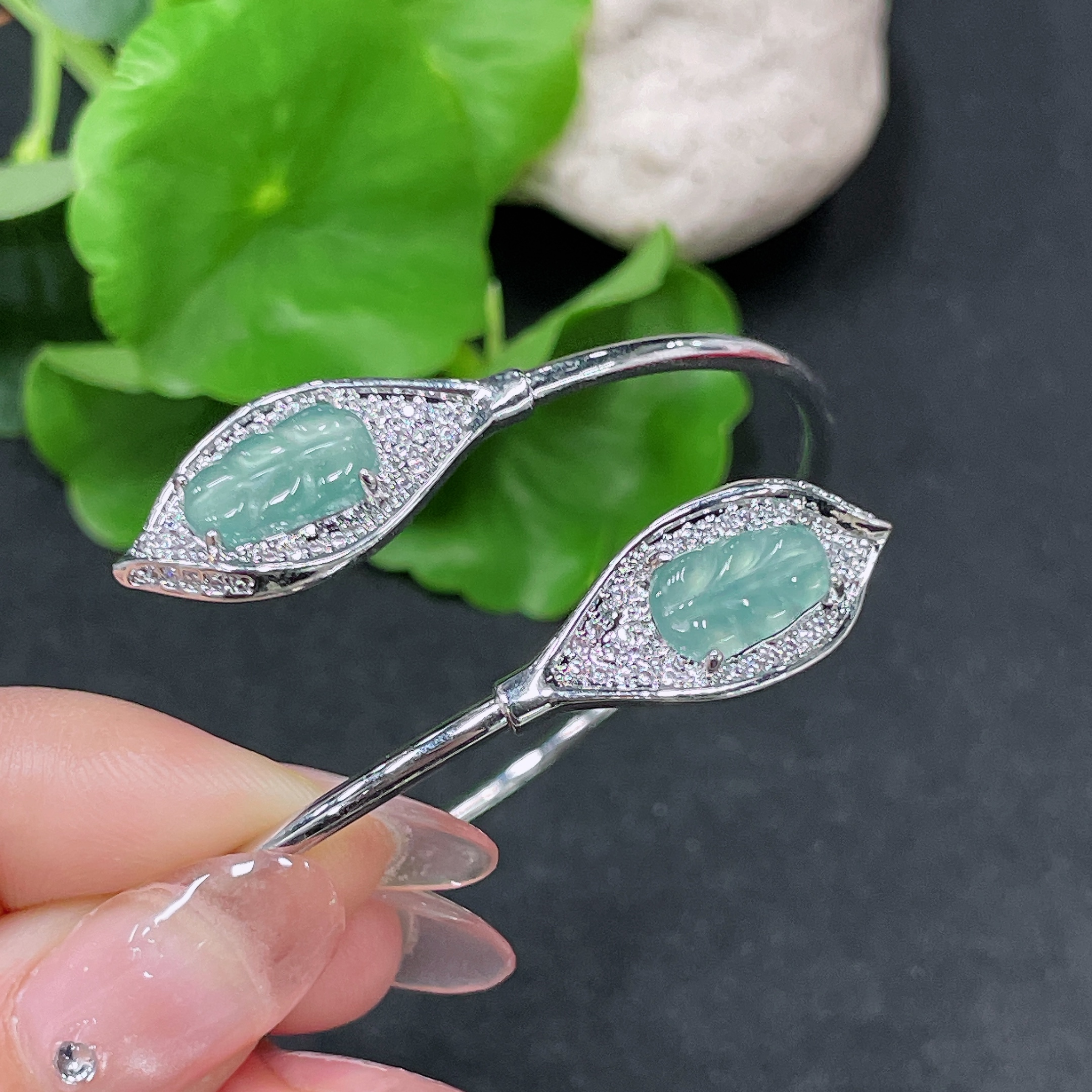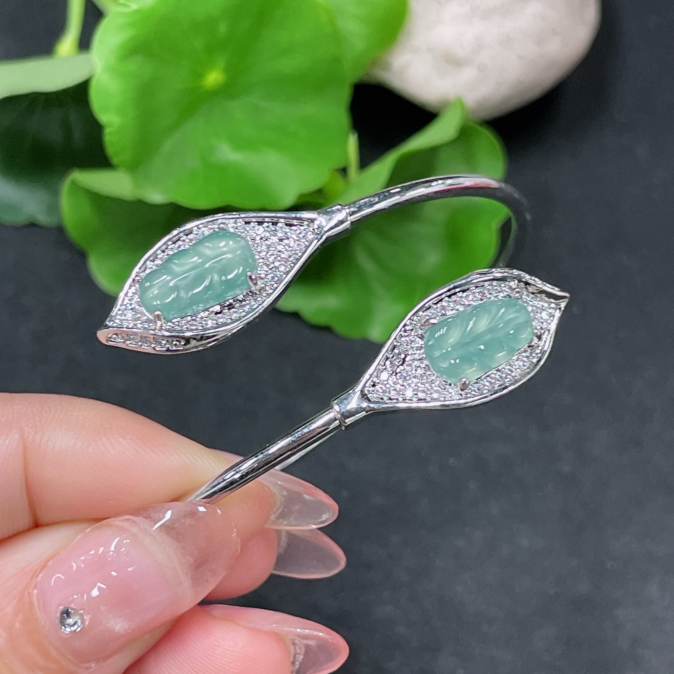 Jadeite Leaf Inlaid Bangle Non-Gold Inlaid Adjustable Size Total Weight Approx. 8.5g