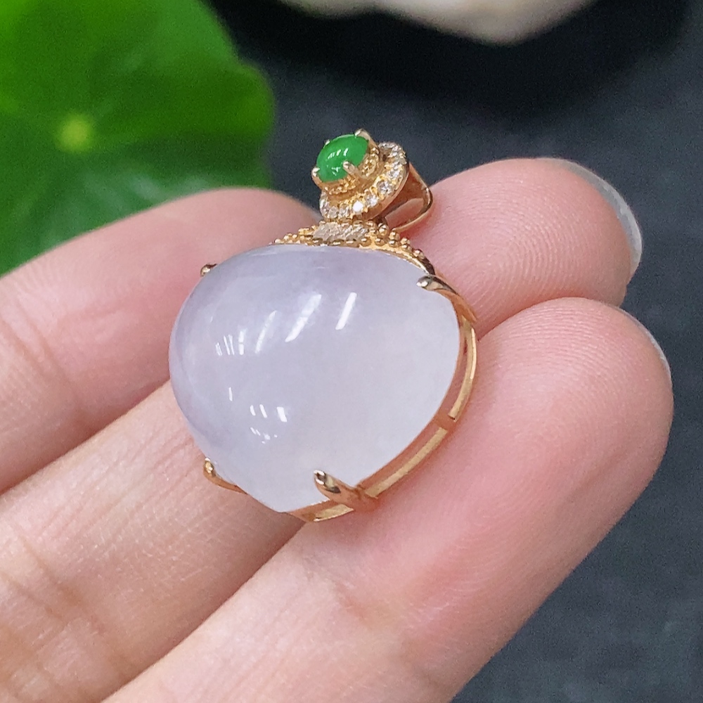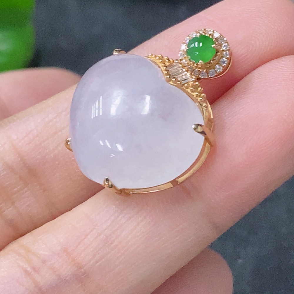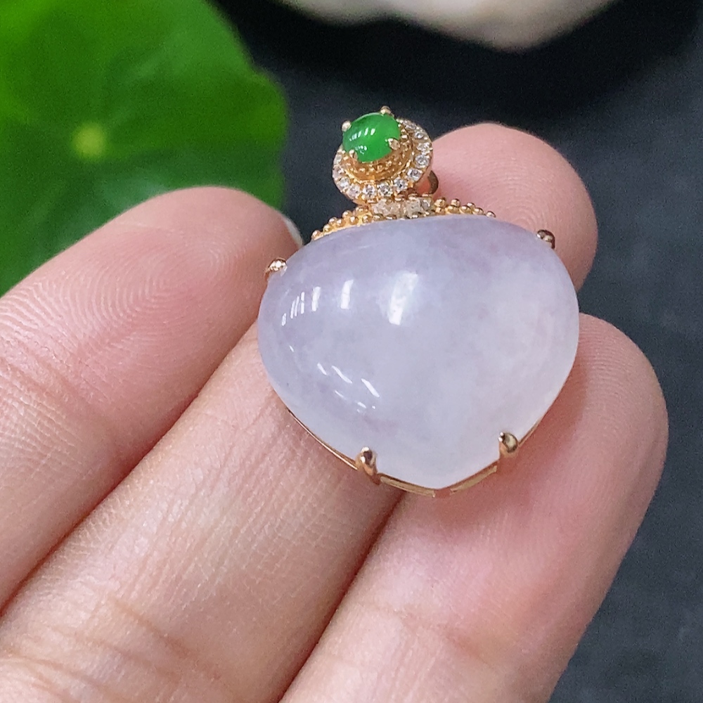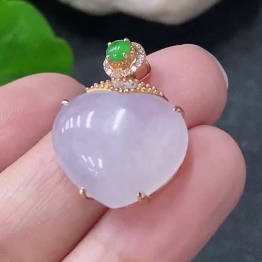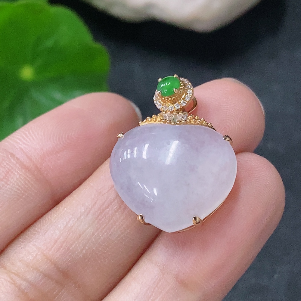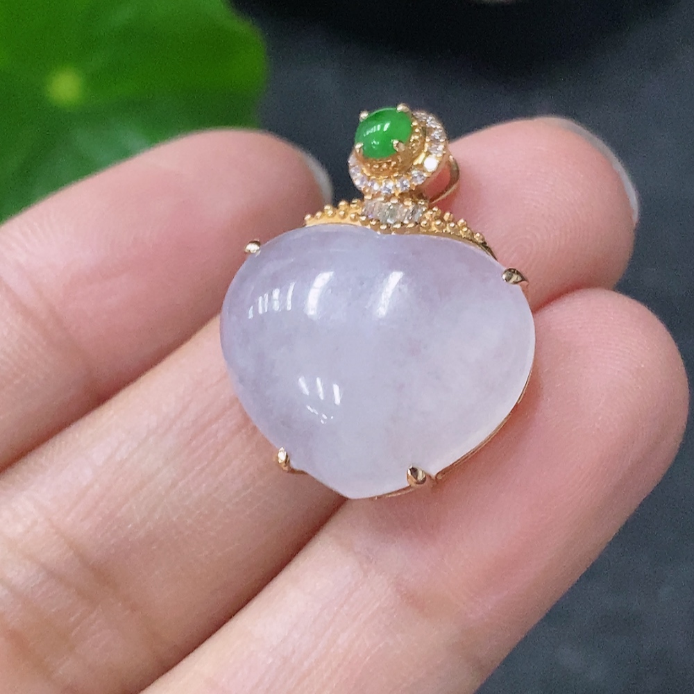 Jadeite Heart-shaped Pendant with 18K Gold Setting and Diamond Accents, Total Weight Approximately 4.27g