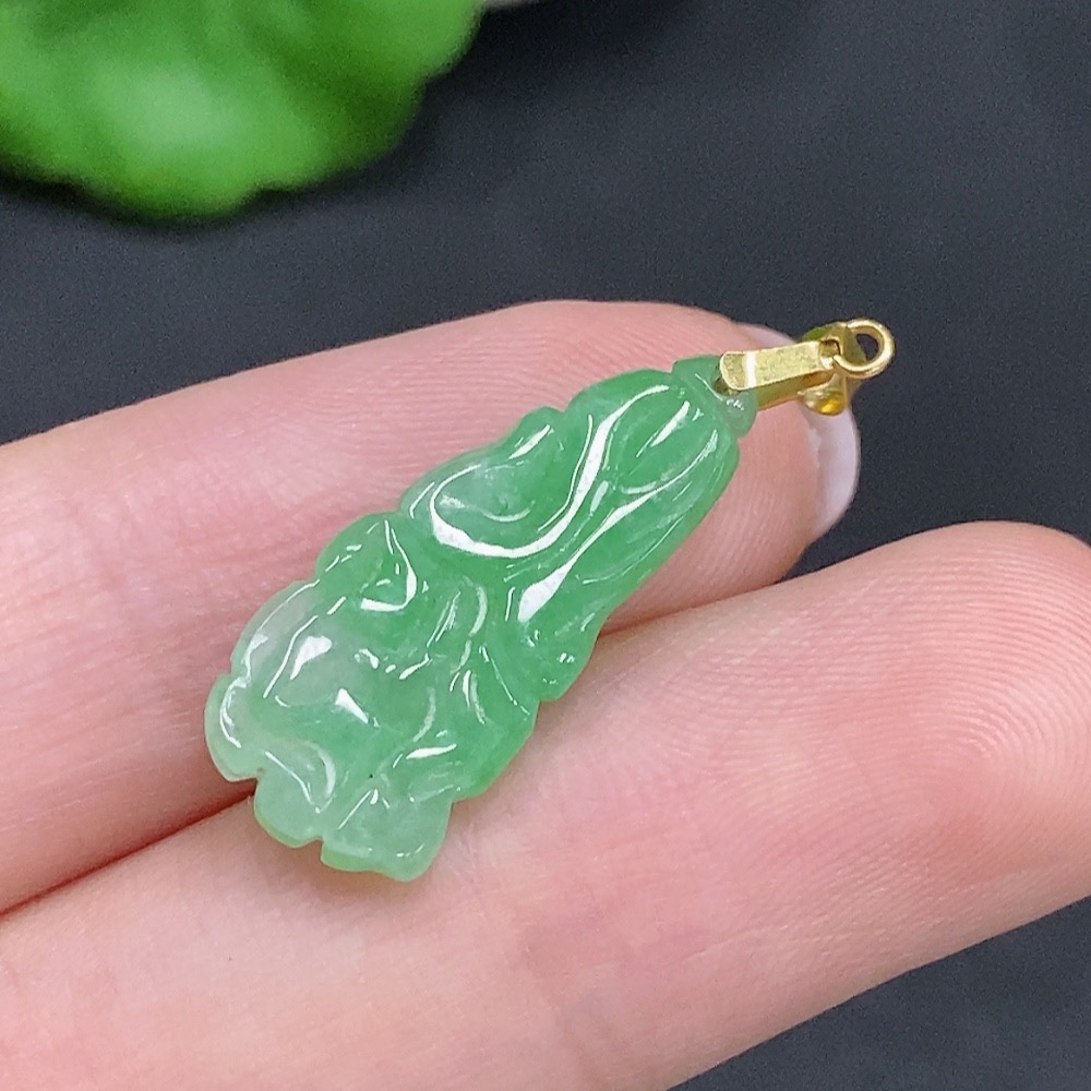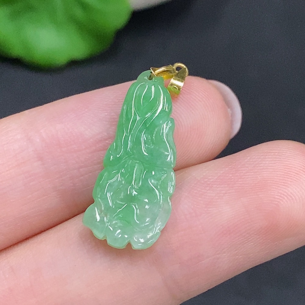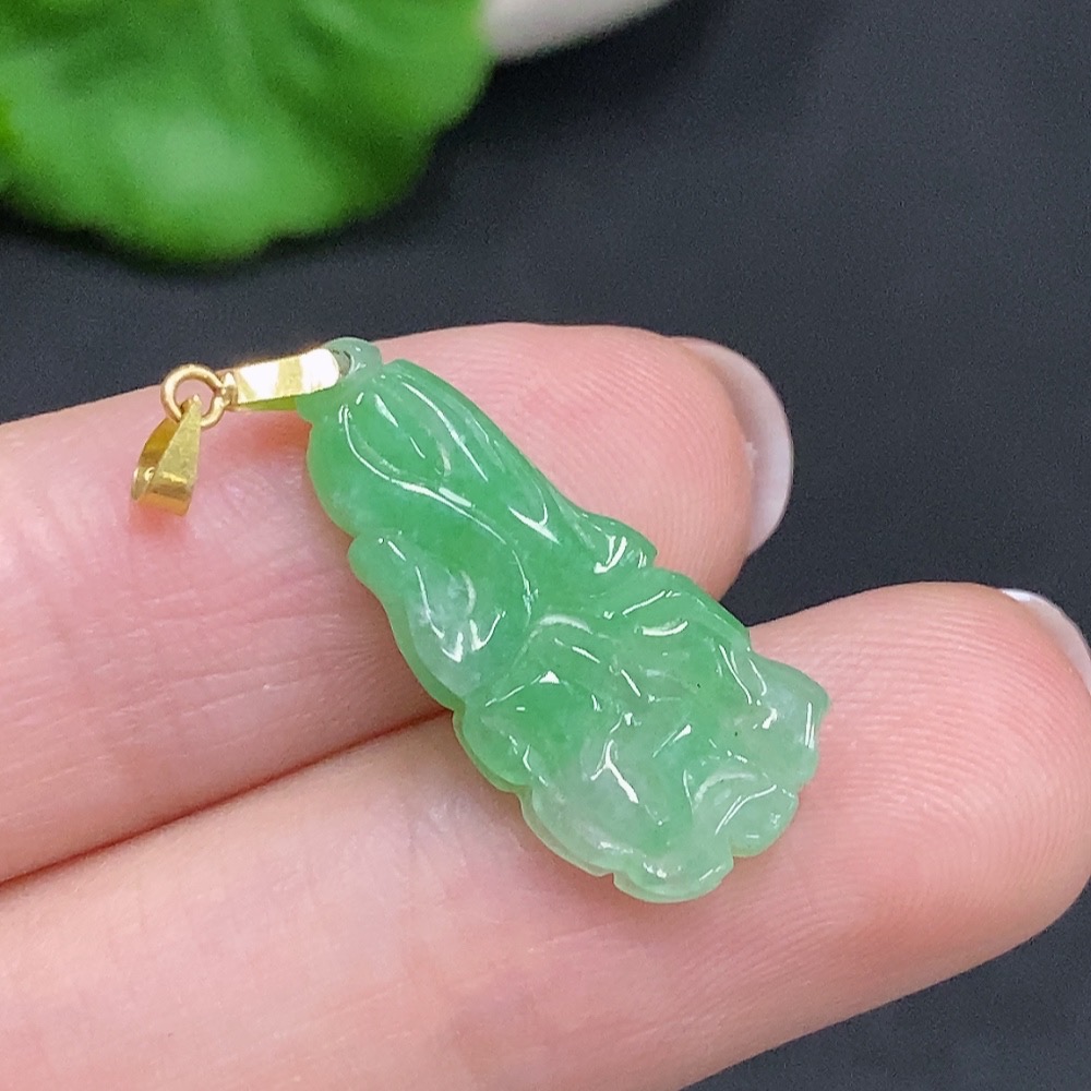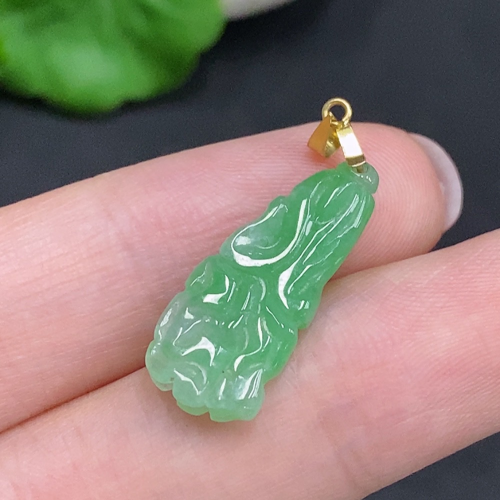 Jadeite Cabbage Pendant with 18K Gold Clasp, Total Weight Approximately 1.4g