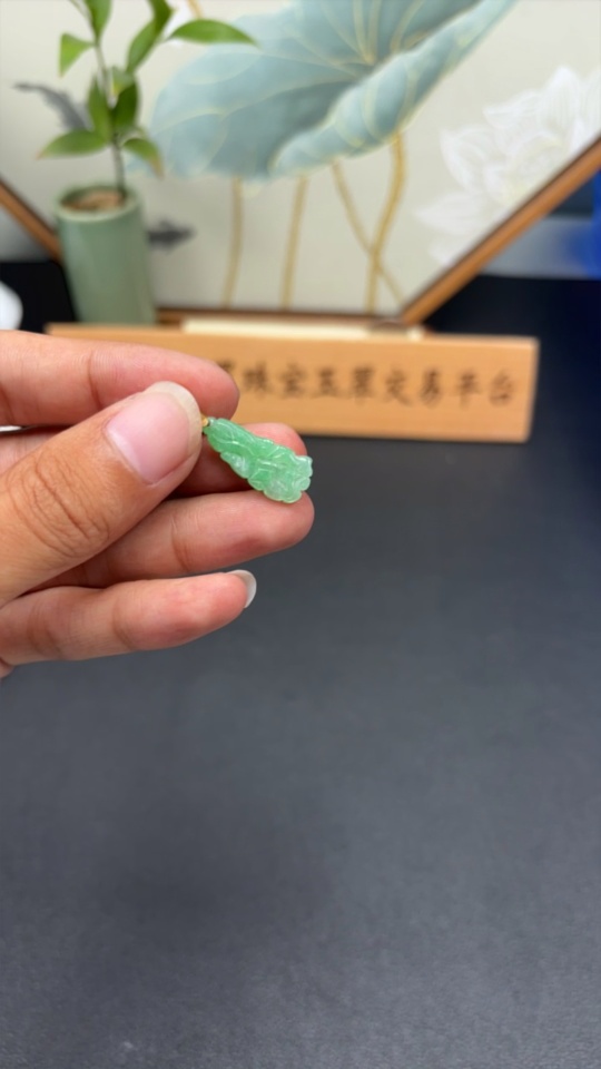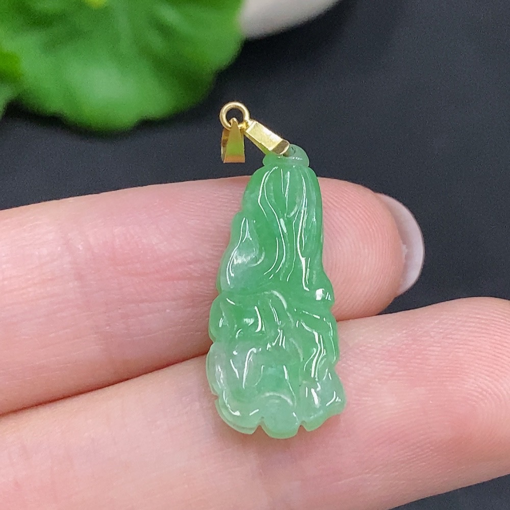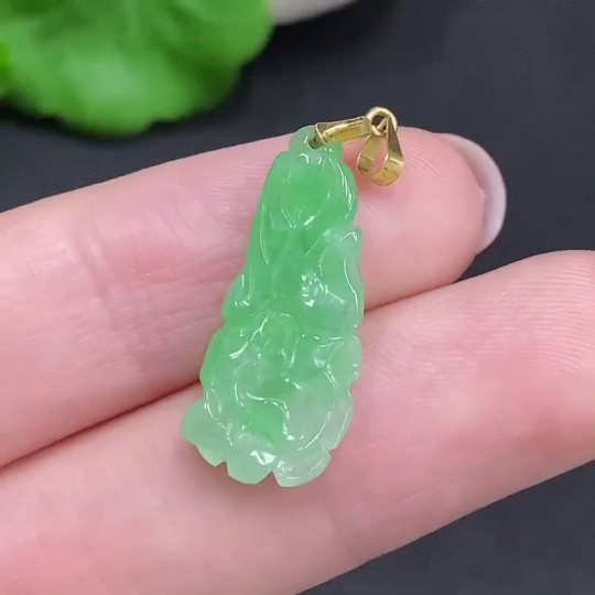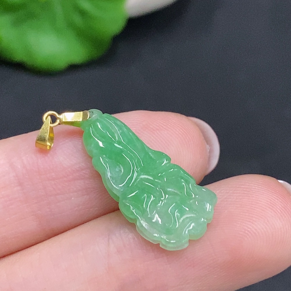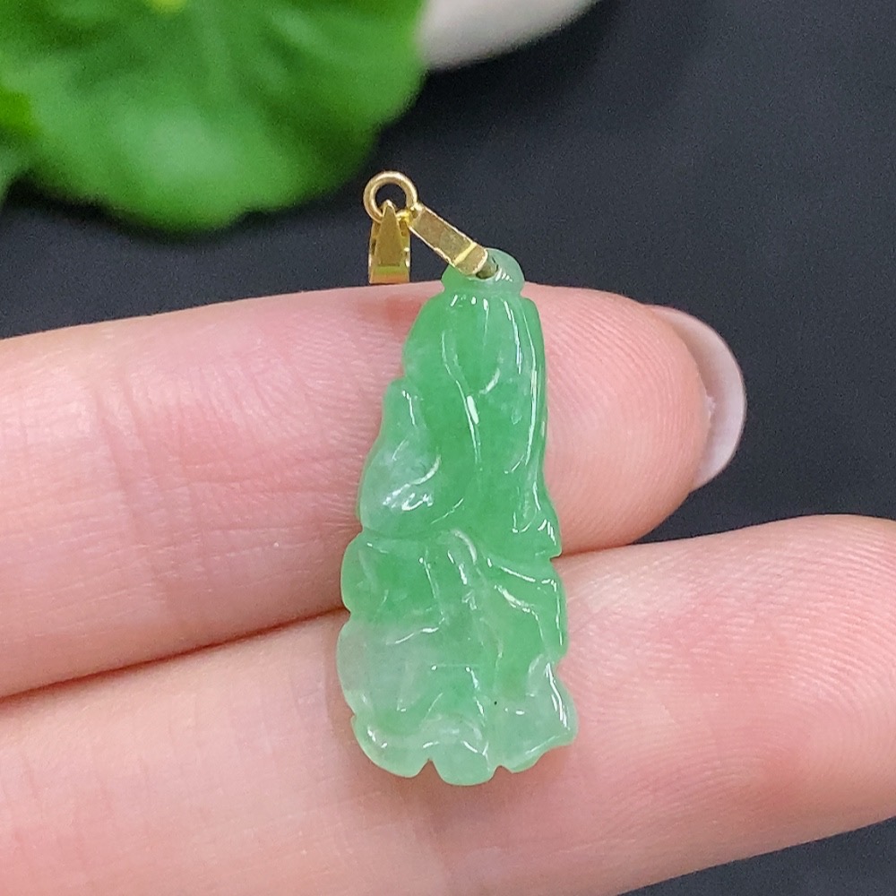Jadeite Cabbage Pendant with 18K Gold Clasp, Total Weight Approximately 1.4g