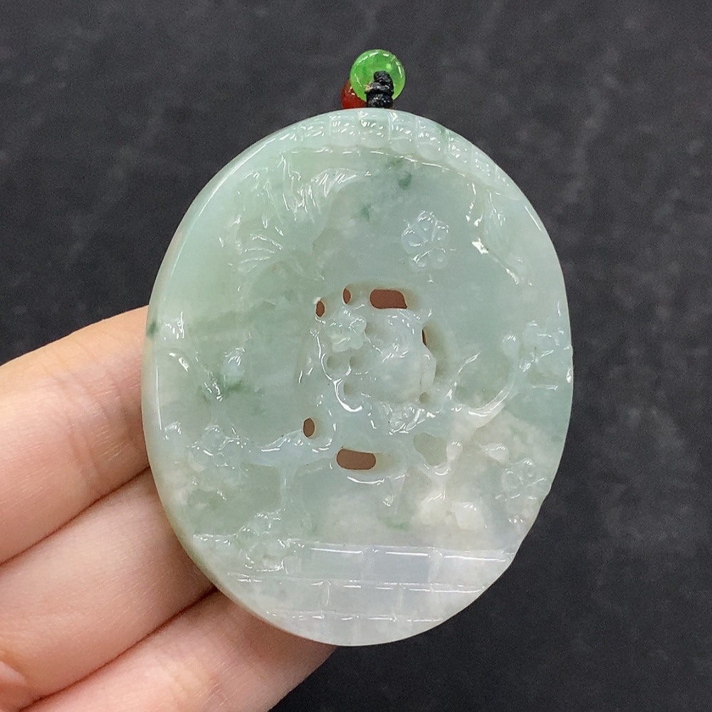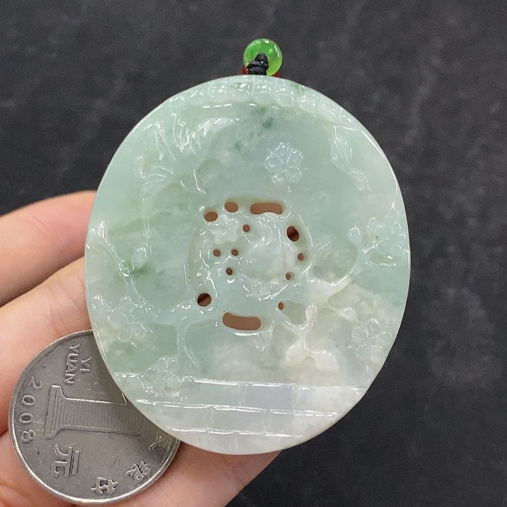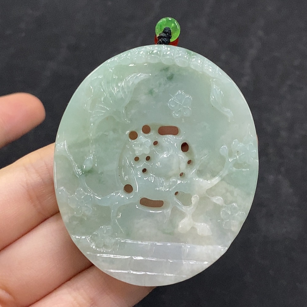 Jadeite Plum Blossom Pendant Total Weight Approx. 34.75g With Non-Grade A Beads