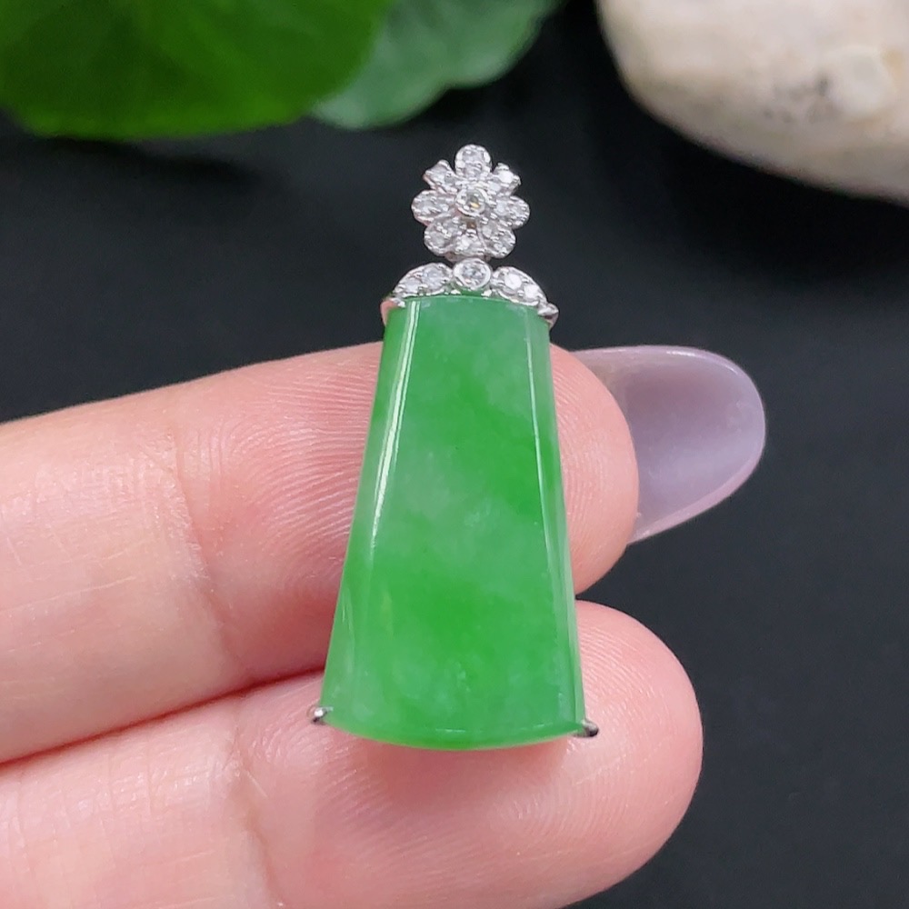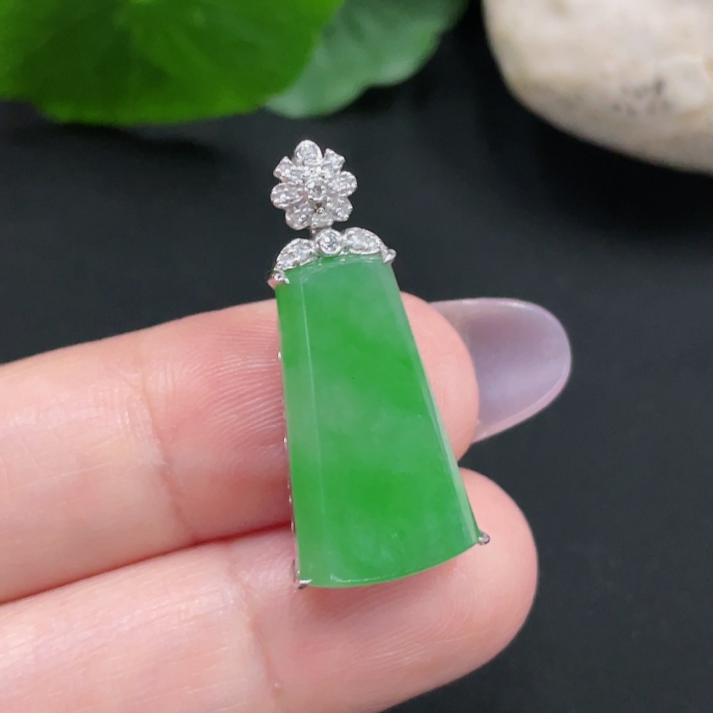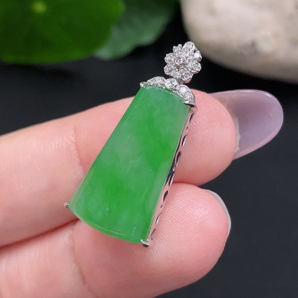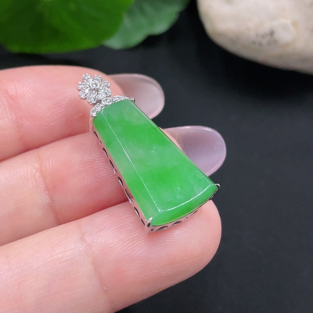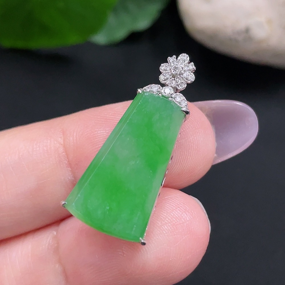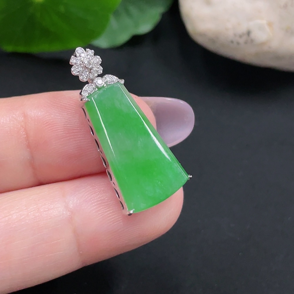 Jadeite Plain Pendant Necklace with 18K Gold Total Weight Approx. 3.2g (Diamond Accents)