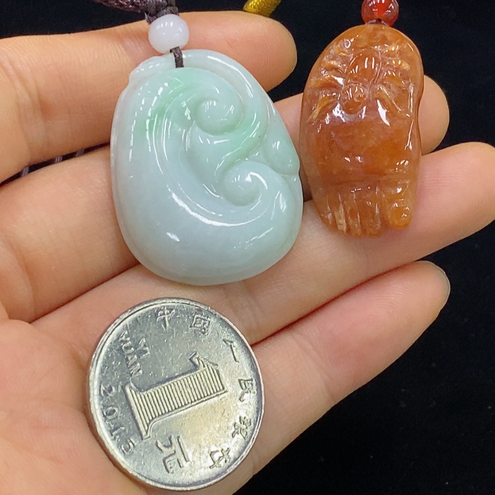 Jadeite Pendant Sell as a Lot Yellow Color Origin Undetermined