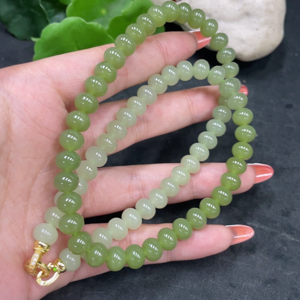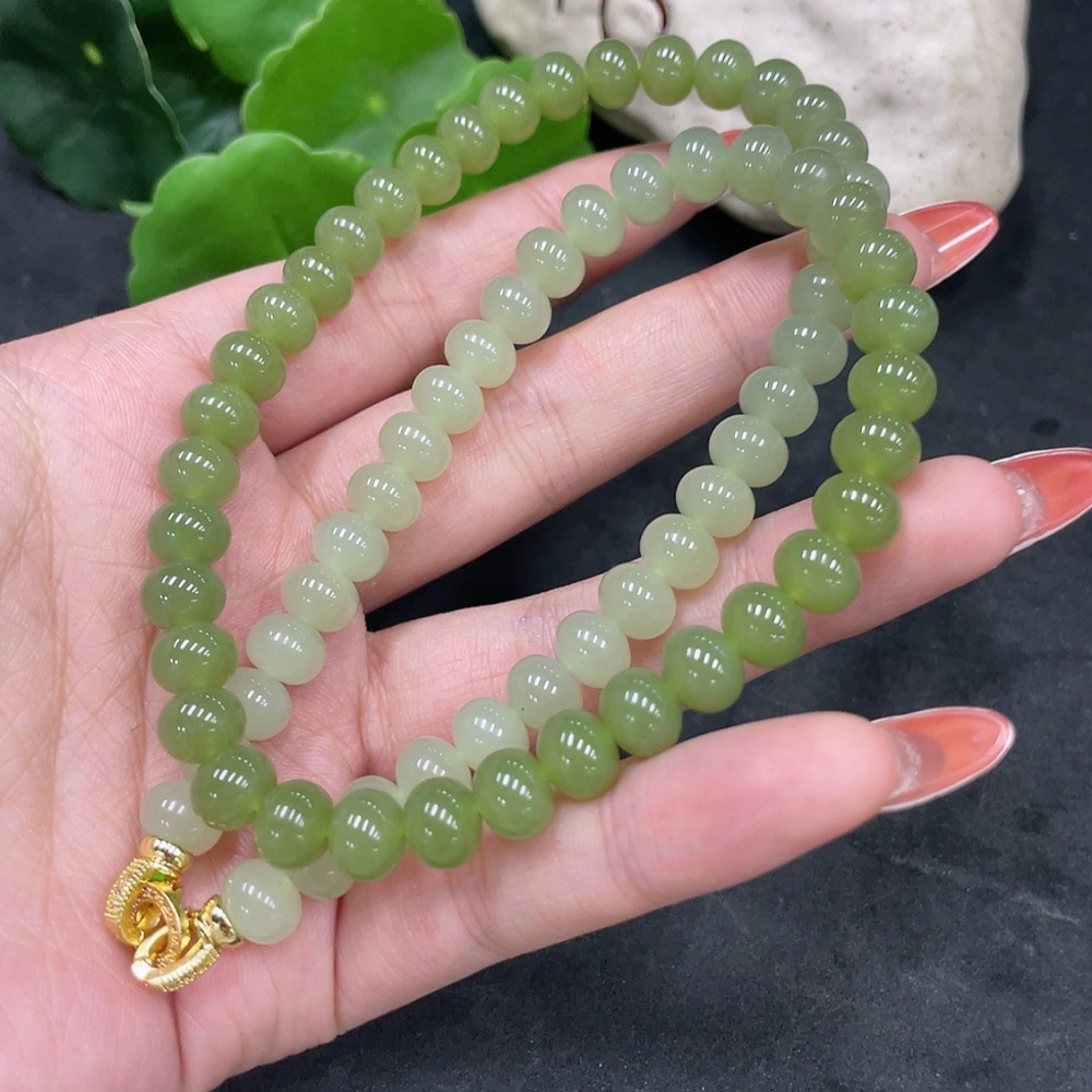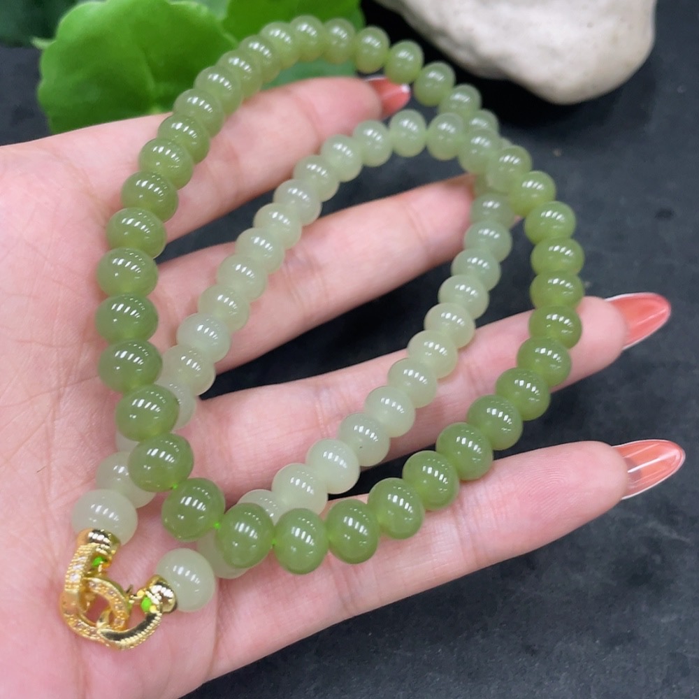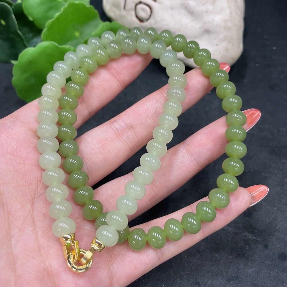 Hetian Jade Bead Necklace Non-Gold Card 7.8mm Approx. Total Weight About 47.2g