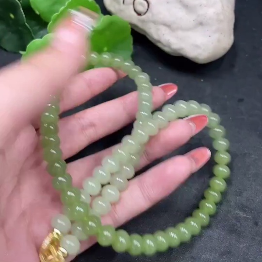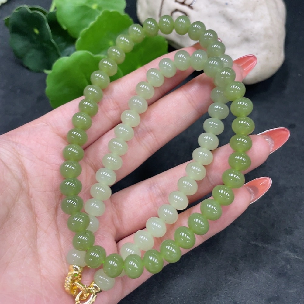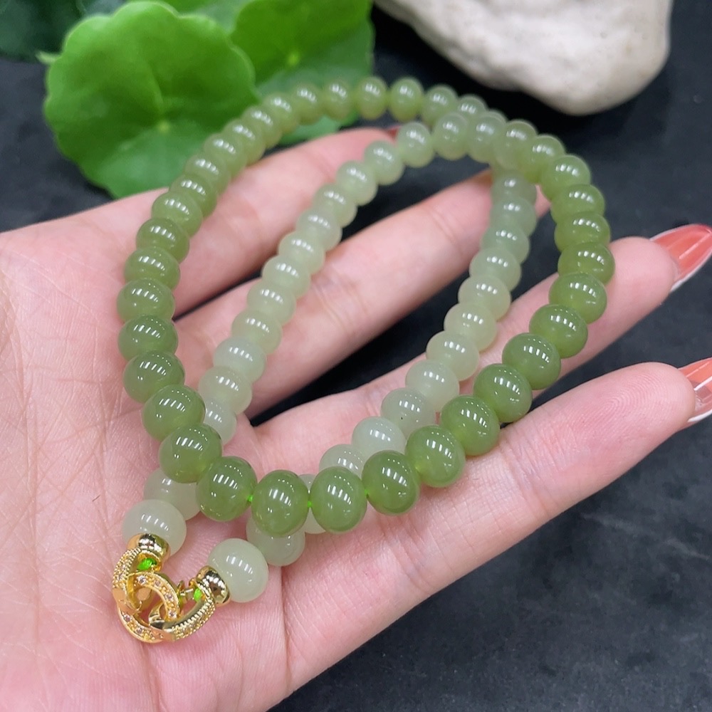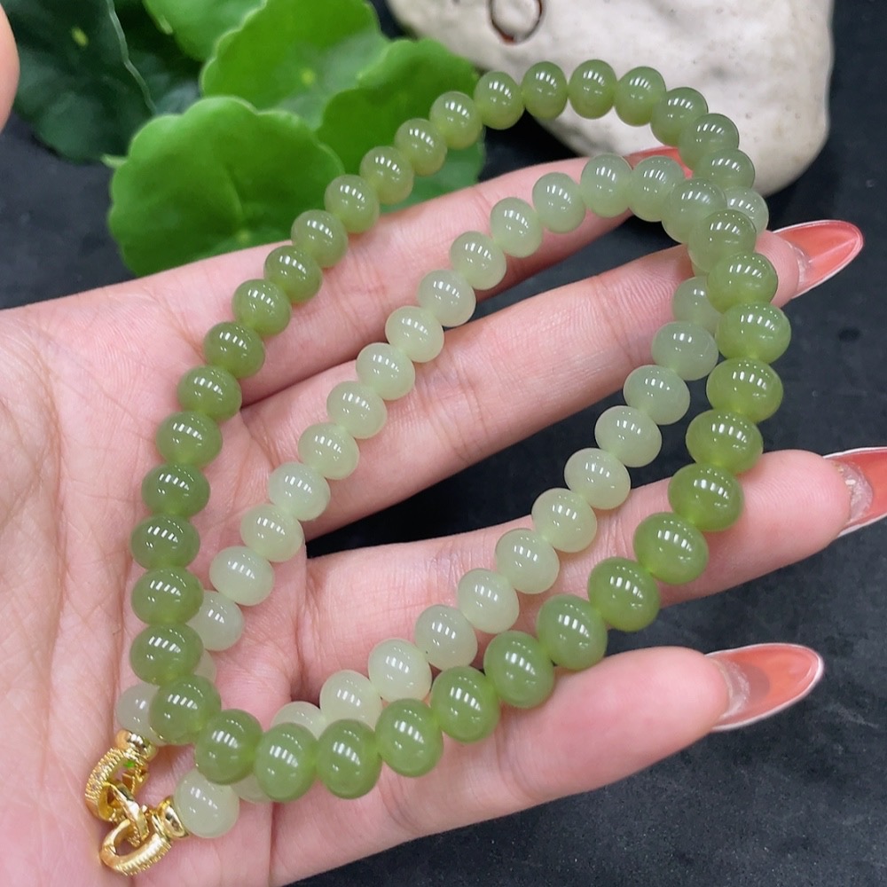 Hetian Jade Bead Necklace Non-Gold Card 7.8mm Approx. Total Weight About 47.2g
