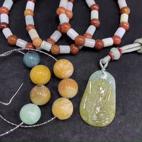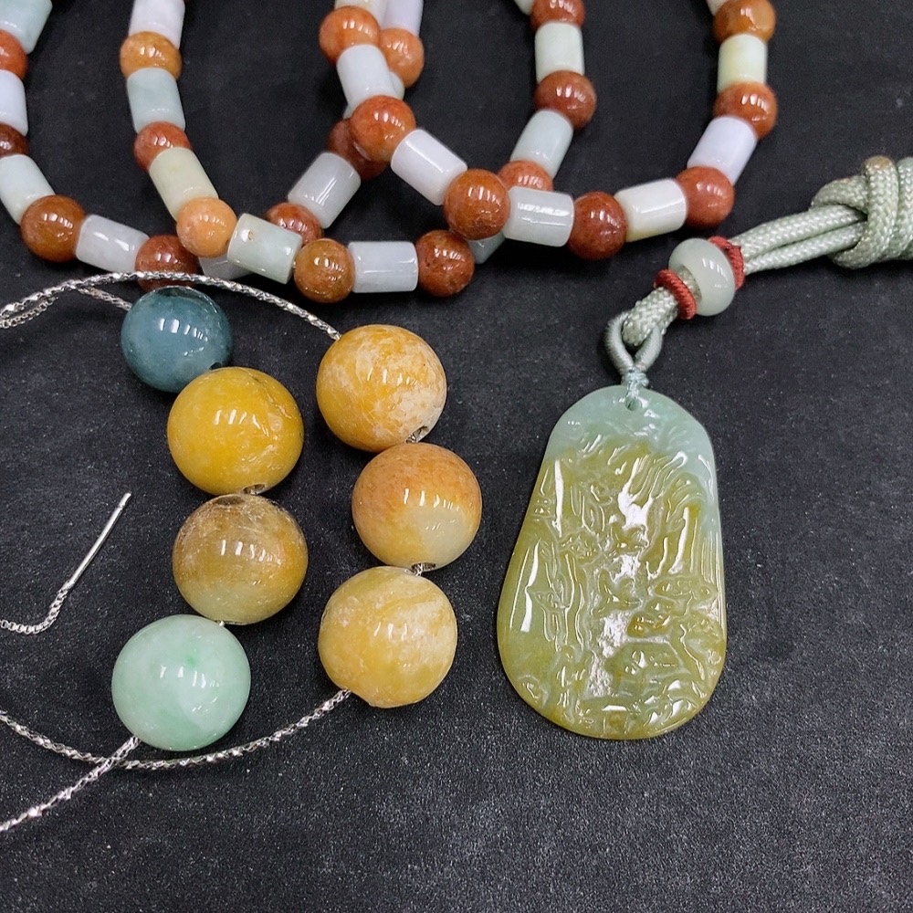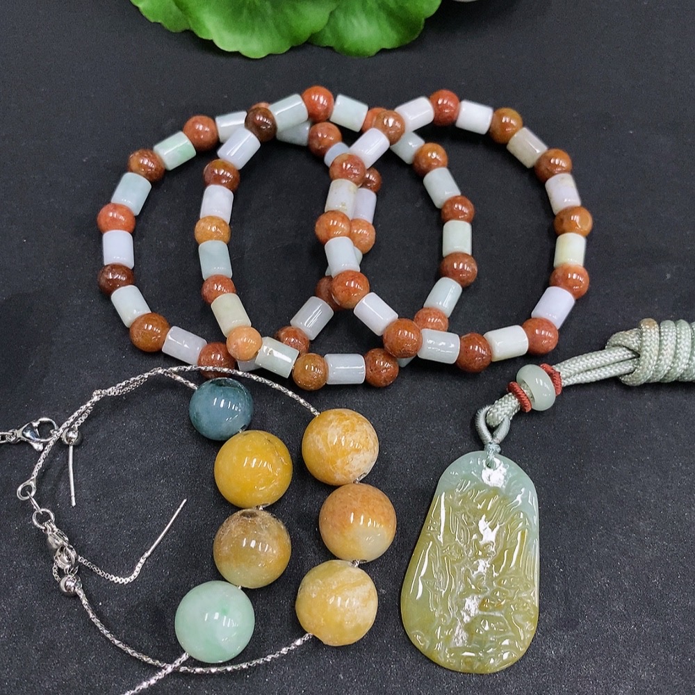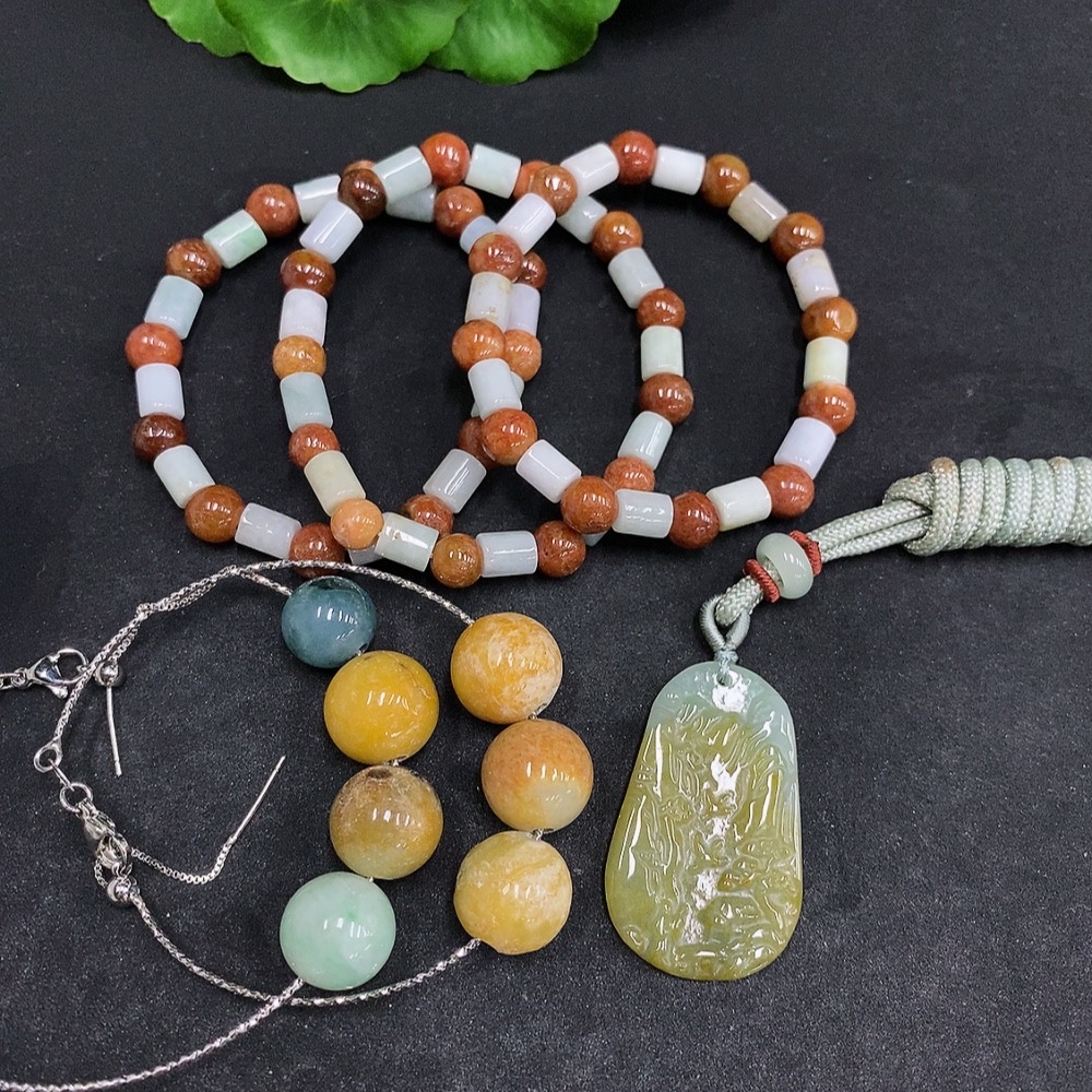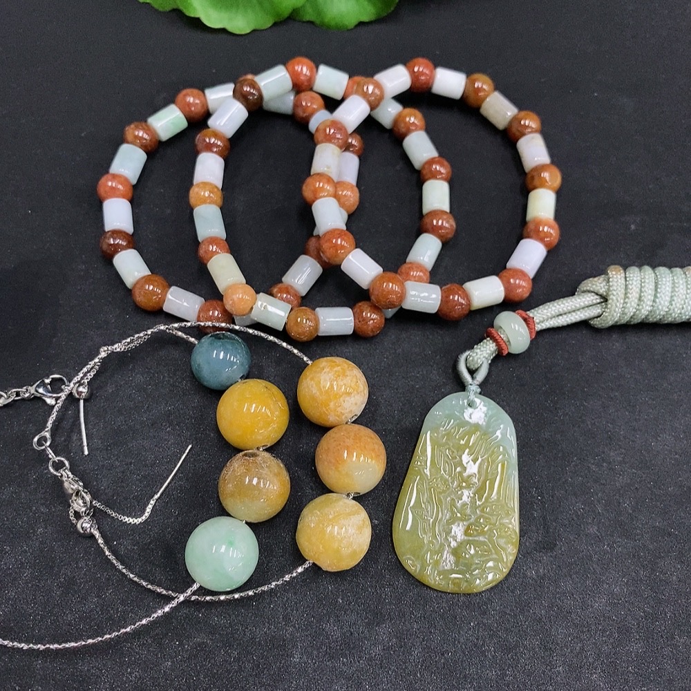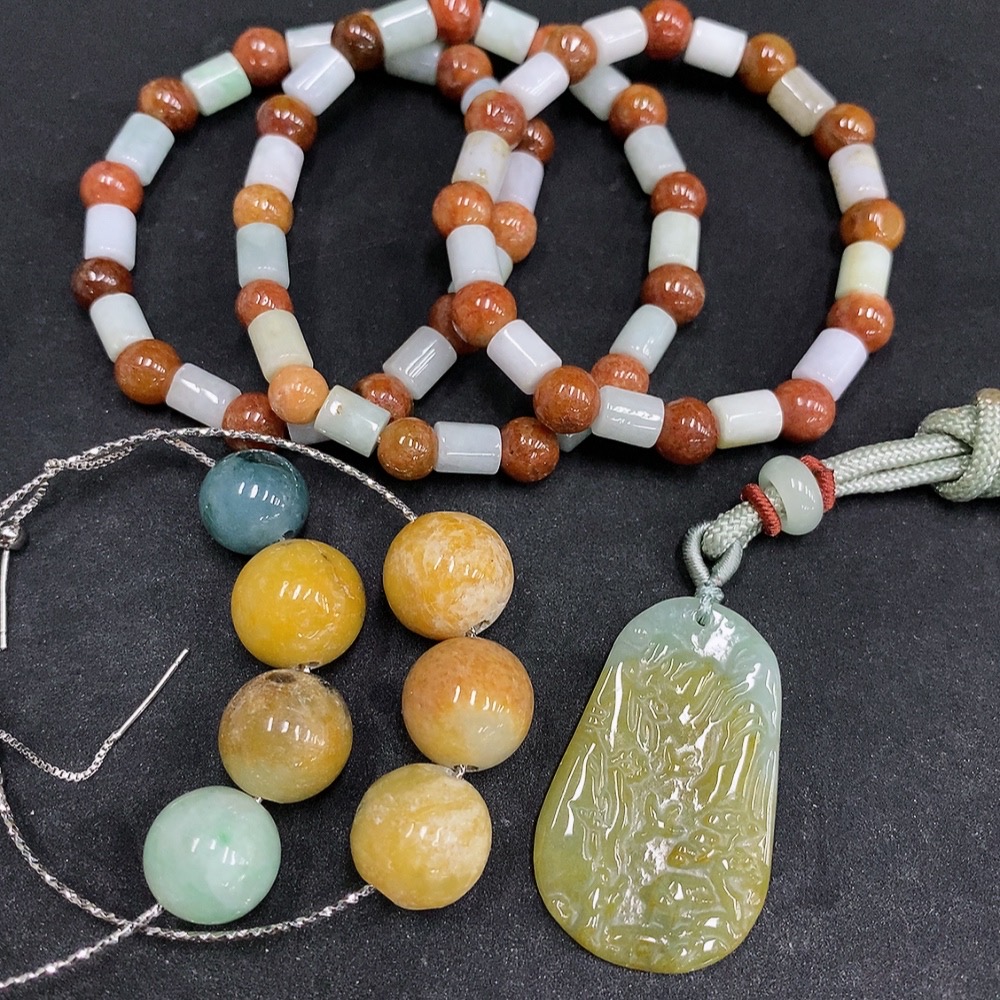 Jadeite Pendant + Bracelet Sell as a Lot Non-Gold Setting Color Origin Undetermined