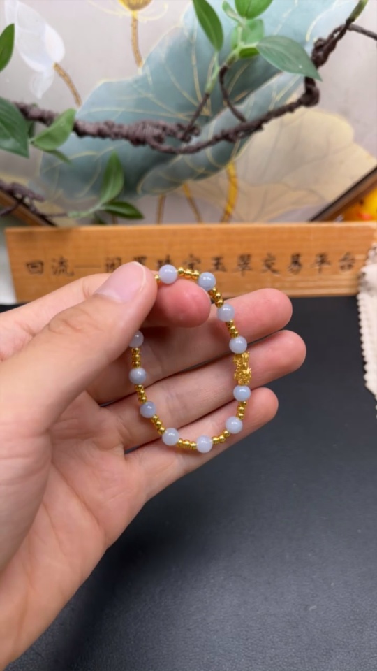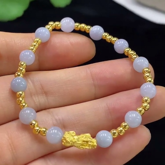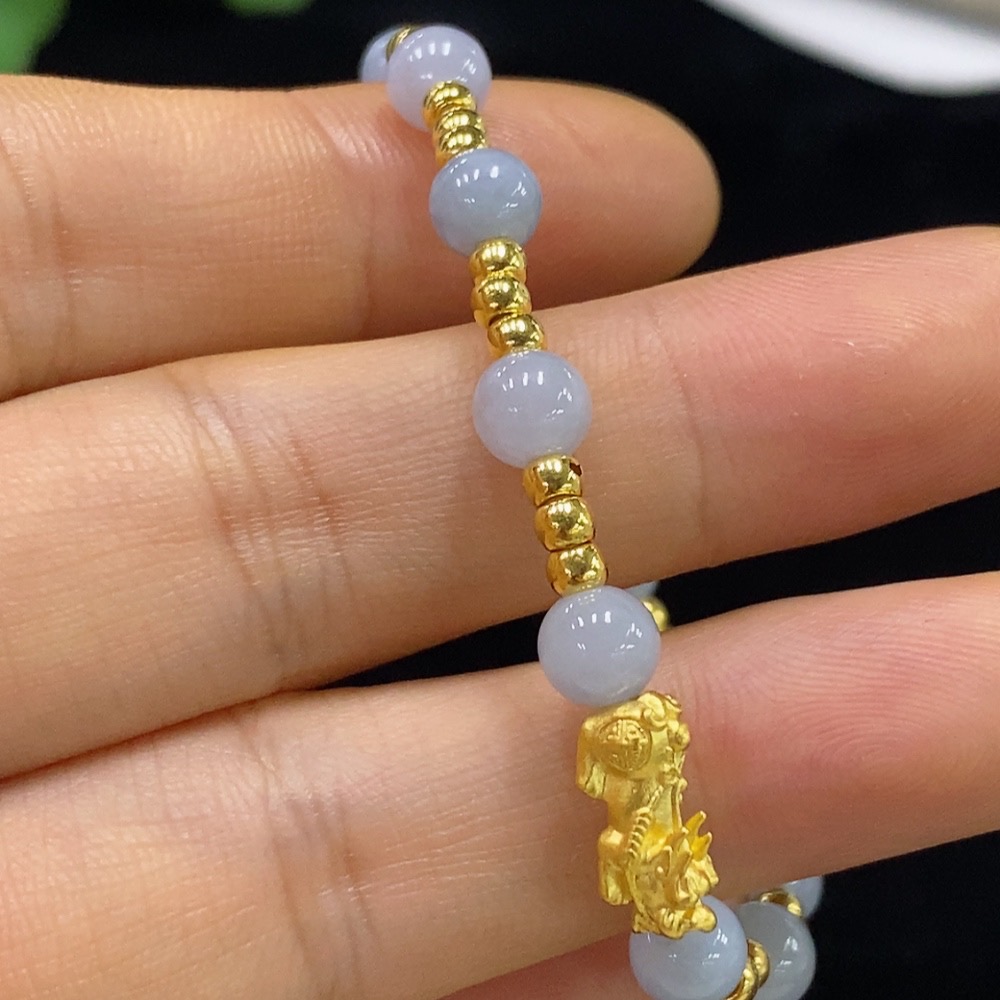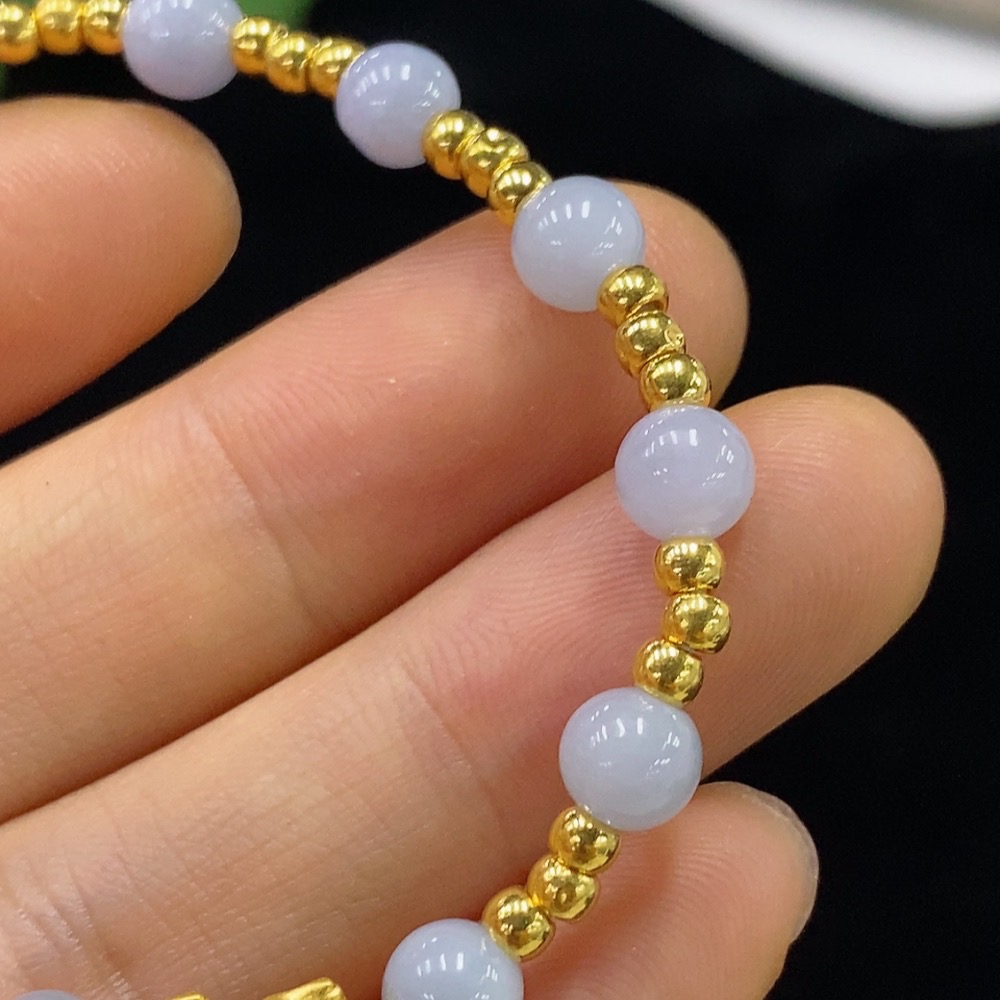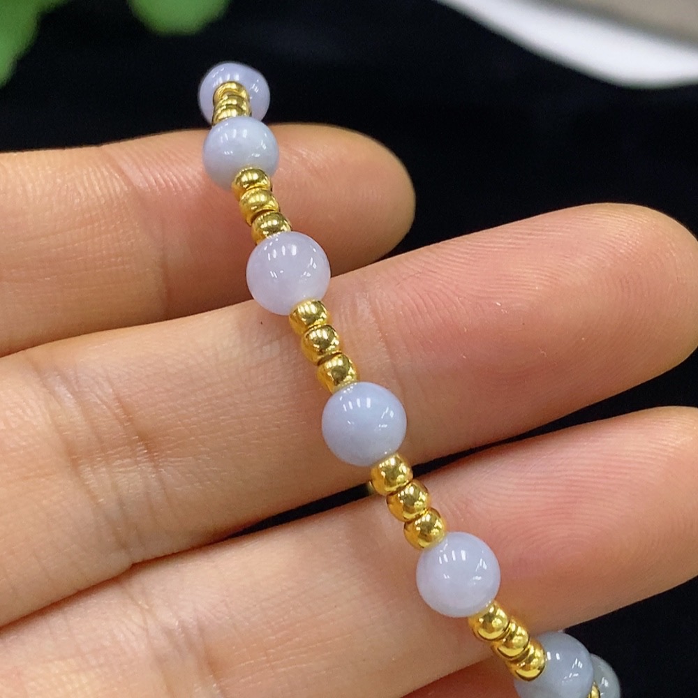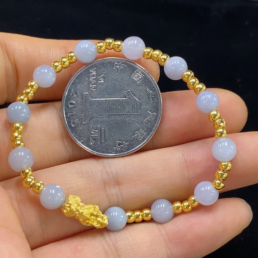 Jadeite Inlaid Bracelet Approx.5.5mm Total Weight Approx.4.17g No Mark Surface Gold Content aU99% Fragile Gold