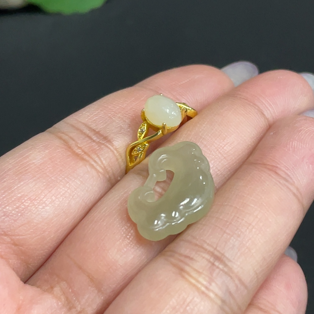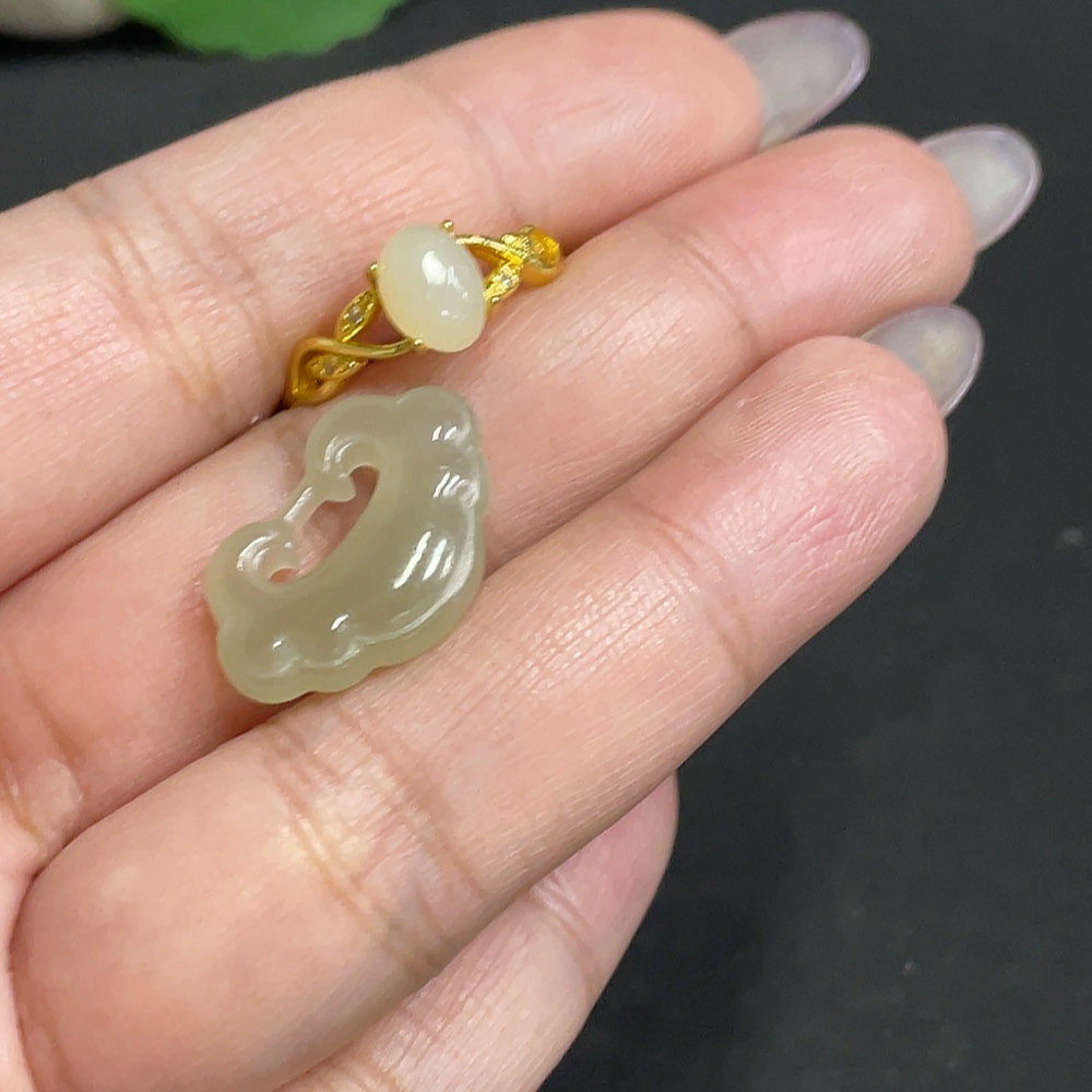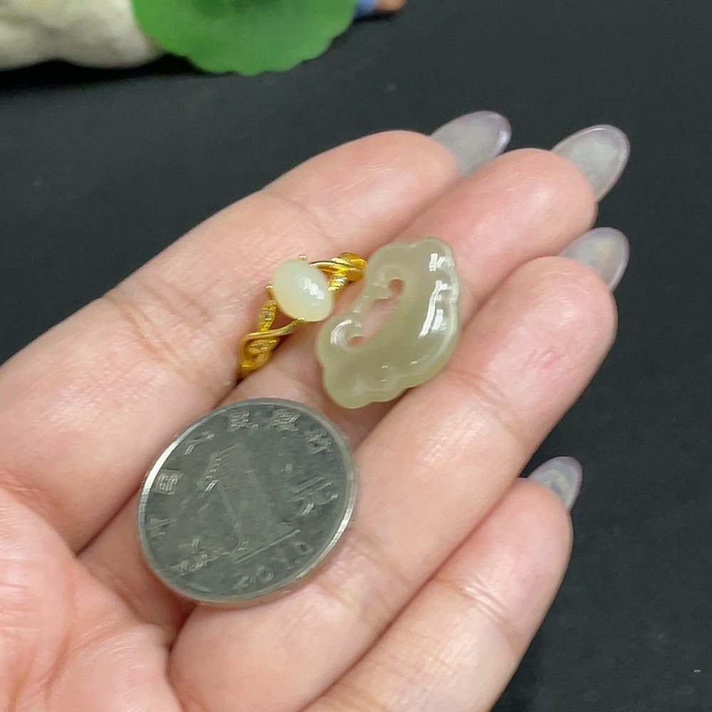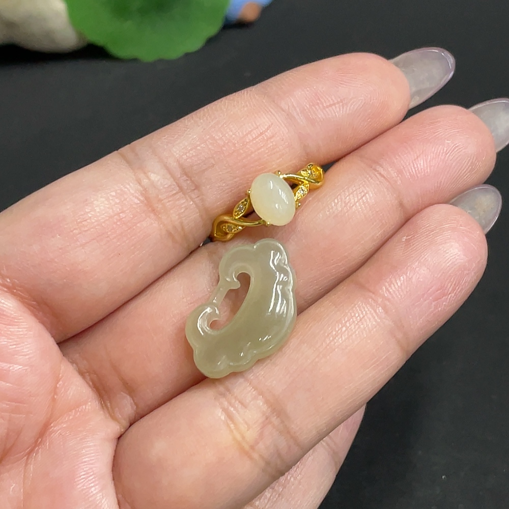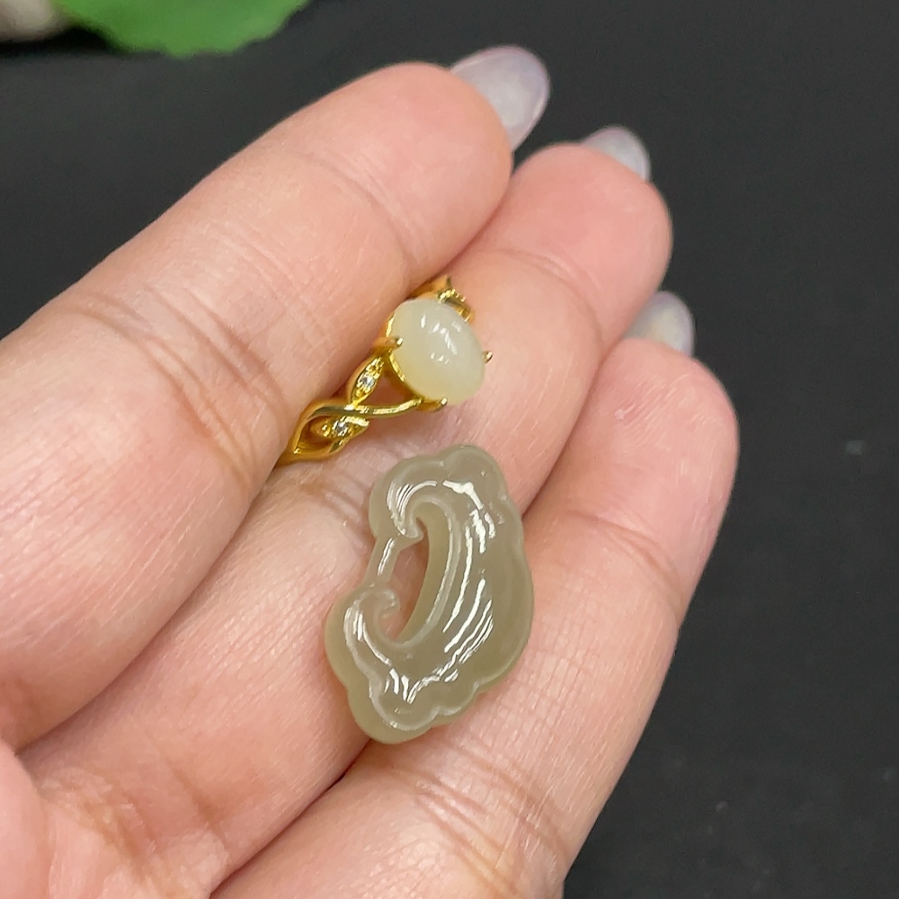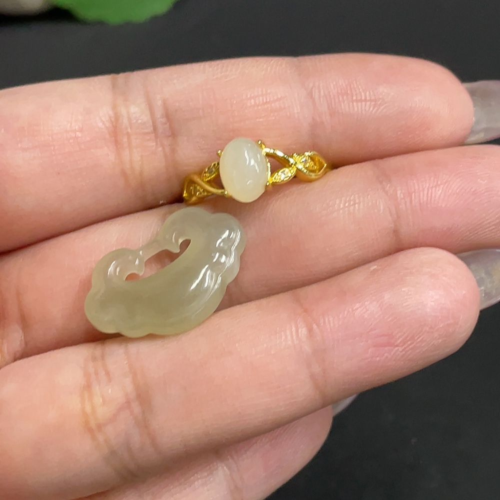 Hetian Jade Pendant Inlaid Adjustable Ring Total Weight About 3.9g Non-Gold