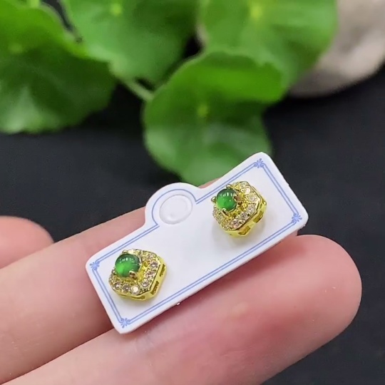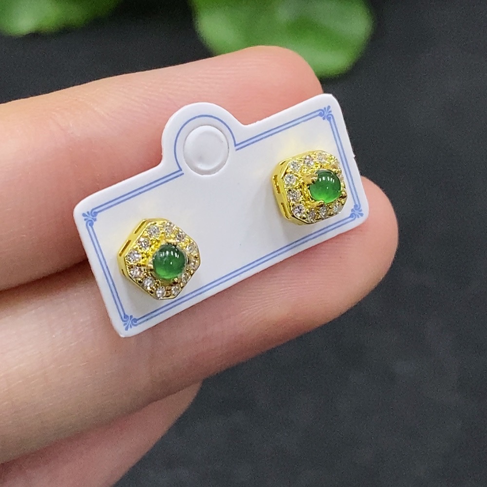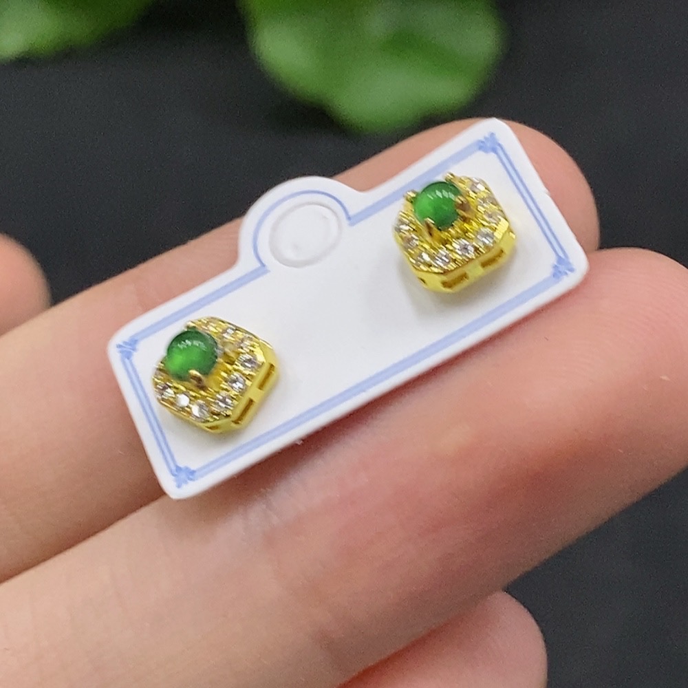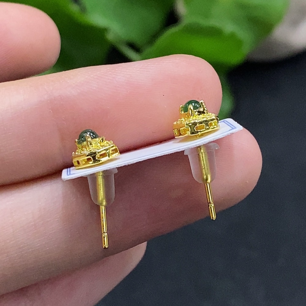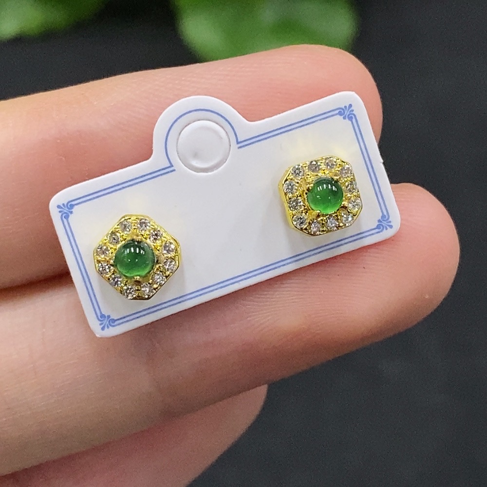 Jadeite Cabochon Stud Earrings Non-Gold Setting Total Weight Approx. 0.93g