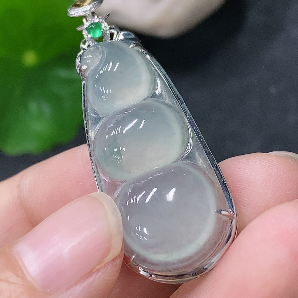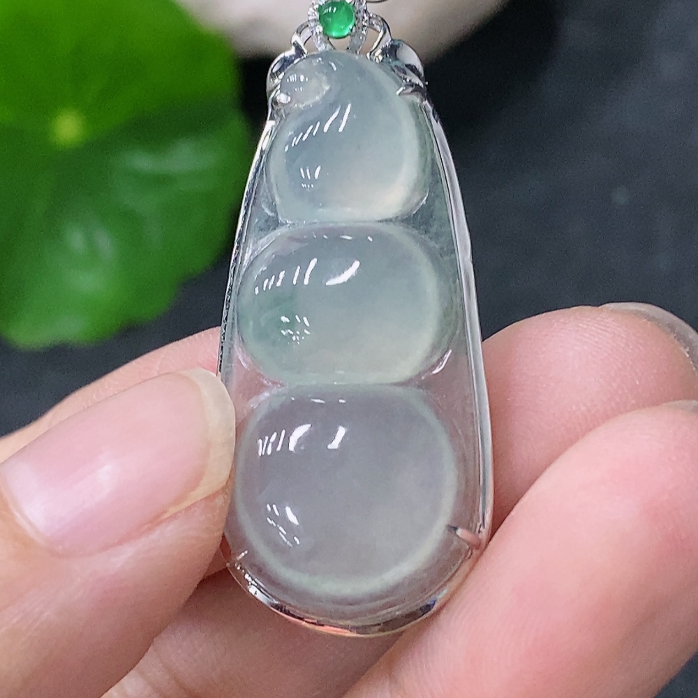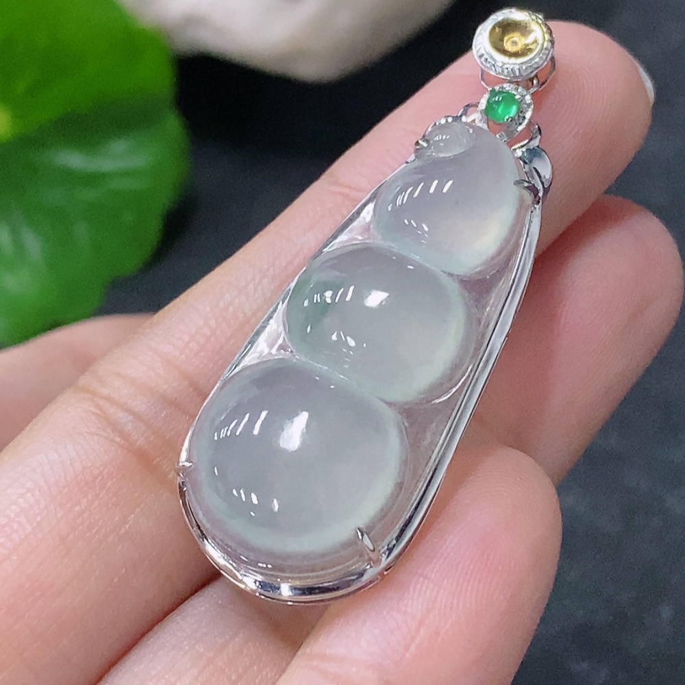 Jadeite Blessed Bean Pendant, 18K Gold Setting, Non-Diamond Product Total Weight Approx. 4.23g